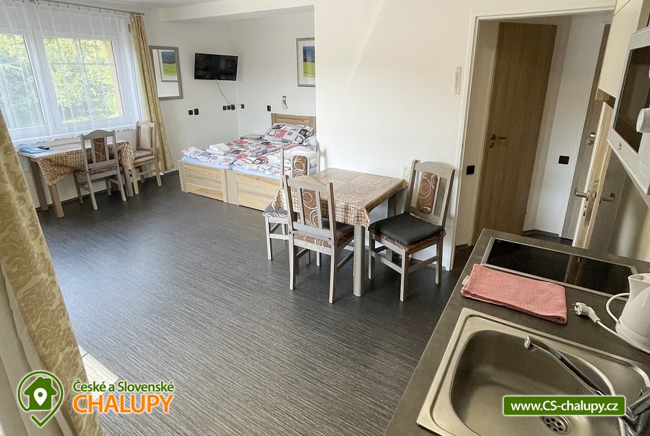 „Chata s vnitřním bazénem a finskou saunou - 10x apartmán - hrad Trosky“