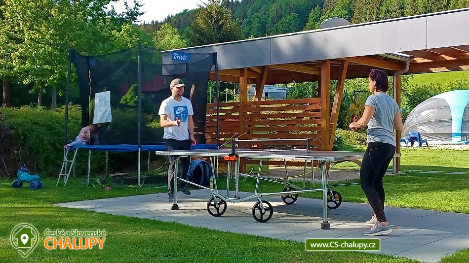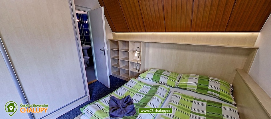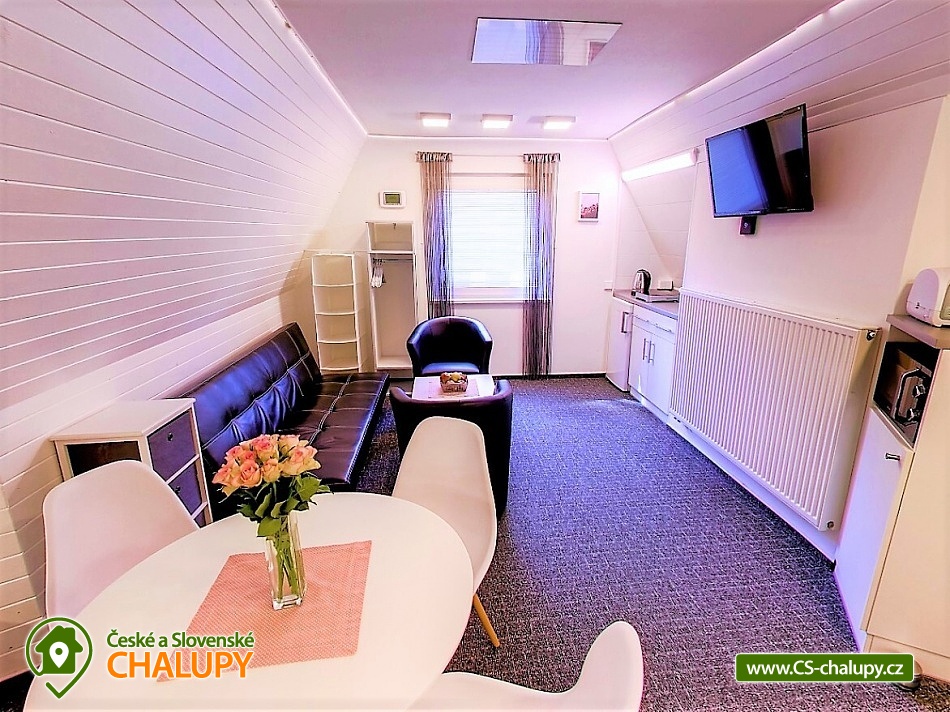 Chata s wellness a vyhřívaným bazénem v CHKO Beskydy. V nabídce naleznete 3 samostatné apartmány, které je možno pronajmout zvlášť i jako celek. Celková kapacita chaty je až 17 osob a skládá se z apartmánu Elegance (až 8 osob), apartmá Standard (až 5 osob) a podkrovního apartmá Standard (až 4 osoby). Společným prostorem pro všechny apartmány je pouze vstup do budovy, recepce, schodiště a velmi prostorná zahrada s přímým přístupem do okolních lesů. Jinak jsou od sebe apartmány pevně odděleny, což zaručuje maximální soukromí pro jednotlivé hosty. Apartmán Elegance je komfortně zařízeným bytem 4+kk o velikosti cca 80 metrů čtverečních, který je vhodný i pro početnější skupinu nebo dvě rodiny s dětmi. Nachází se v 1. patře a má atypický, nově zařízený interiér, moderně vybavenou kuchyň s jídelním koutem, obývací pokoj, dva dětské pokoje a ložnici. Z přilehlé terasy se zahradním posezením je překrásný výhled do přírody a na náš rybník. Nejoblíbenější je apartmá Standard - kvůli houpačce, kterou mají všechny děti v oblibě. Jedná se o čtyřlůžkový prostorný apartmán s možností jedné přistýlky o velikosti cca 70 metrů čtverečních ve 2. patře chaty. V apartmánu je i plně vybavená kuchyně s jídelnou, která je součástí obývacího pokoje. Ložnice – manželské dvoulůžko je oddělené závěsem. K ložnici přilehlý balkón s posezením nabízí překrásný výhled do přírody, v zimě pak na lyžařskou sjezdovku. Moderní koupelna je vybavena sprchovým koutem. Vstup do koupelny je z chodby i z ložnice. Pro ubytování párů nebo rodin s dítětem doporučujeme také apartmán Economy. Jde o nejmenší z apartmánů, přesto nabízí dostatek prostoru a komfortu. Na první pohled zaujme více druhů osvětlení a interiér laděný do skandinávské bílé barvy. Ke spaní je manželské dvoulůžko a jedno samostatné lůžko. V případě pobytu čtyřčlenné rodiny je možné využít přistýlku rozložením pohodlného gauče nebo pro miminka připravíme dětskou postýlku s povlečením. Součástí apartmánu je plně vybavený kuchyňský kout s jídelnou. Schodiště do apartmánu je bezpečné a má nerezové zábradlí. Samozřejmostí ve všech apartmánech je free WiFi internet a LED TV s internetovým vysíláním. V období od 1. 5. do 30. 9. je k dispozici vyhřívaný bazén s protiproudem (tepla vody 28 až 31°C) - krytý kopulí, proto lze využívat i v méně příznivém počasí. Dále máme v nabídce vířivku pro rodiny s dětmi (2 + 2), nebo max. 3 dospělé osoby a jedno dítě do 12 let. Teplota vody je v rozmezí od 35 do 38°C, dle přání se dá nastavit na požadovanou teplotu. Infrasauna je určena pro dvě osoby. Teplota se dá také nastavit dle přání, max. však na 65°C. Je vyrobena z kvalitního dřeva kanadského jedlovce a obsahuje karbonová topidla, která lidské tělo dokážou rovnoměrněji prohřát. Pro děti máme kromě bazénu a vířivky k dispozici zejména dětské hřiště s trampolínou, pískoviště, skluzavky, lanovou dráhu nebo třeba stolní tenis. Dospělí mohou trávit čas v krytém posezení se zahradní kuchyní s možností promítání nebo u rybníku s ohništěm. V zimních měsících zajišťujeme v případě příznivých sněhových podmínek provoz lyžařského vleku o délce 80m (v ceně ubytování), který je vhodný pro výuku lyžování.