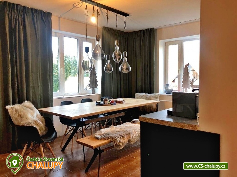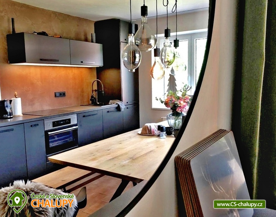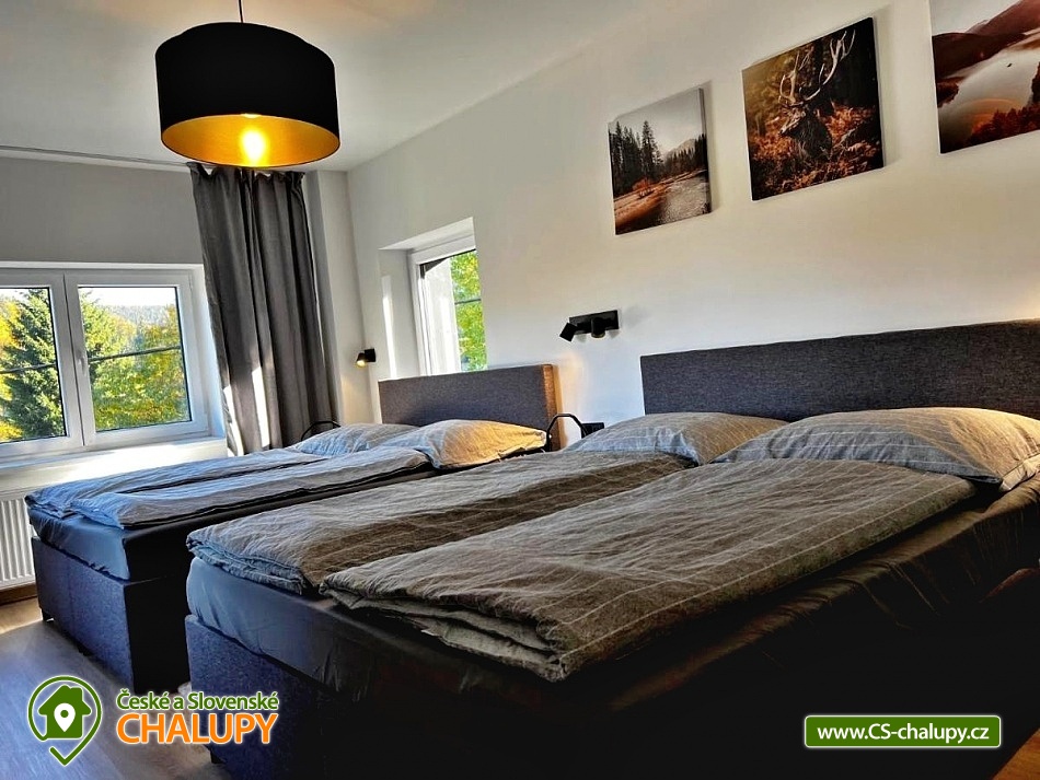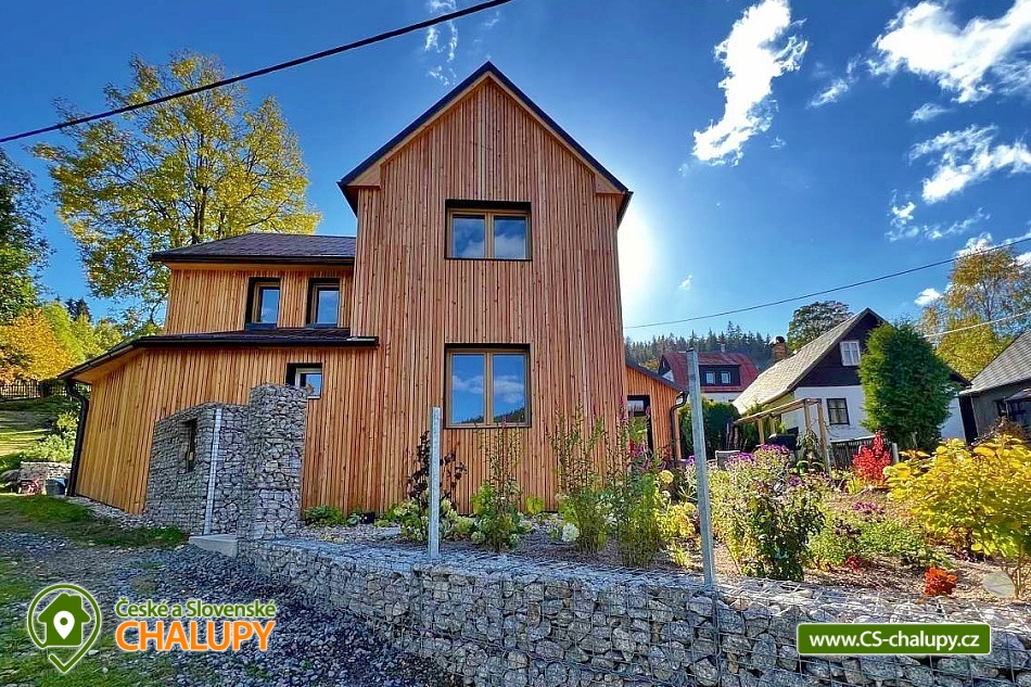 Chata s wellness (wellness místnost s vířivou vanou a výhledem do zahrady) se nachází u přírodní rezervace Jedlový důl v obci Josefův Důl. Chata se nachází v ráji Jizerských hor, s výhledem na novogotický kostel a krásnou hornatou krajinu protkanou turistickými a běžkařskými tratěmi světově známé Jizerské 50. Chata je umístěná ve svahu, přesto je velmi dobře přístupná. Těšit se můžete na relaxování ve vířivce s výhledem do zahrady. Moderně vybavená chata nabízí ubytování pro až 8 osob ve čtyřlůžkových ložnicích, ve kterých je k dispozici 2x dvoulůžková postel. Po domluvě možnost dalších dvou přistýlek v zimní zahradě, kde je k dispozici 1x dvoulůžko řešené Queen size pohovkou. K zapůjčení je dětská postýlka. Společné chvíle lze trávit v obývacím pokoji s TV a s moderním rohovým krbem zajišťujícím příjemné posezení a velmi atraktivní atmosféru. Dále je možné pobývat v zimní zahradě nebo u jídelní stolu v plně vybavené kuchyni (varná deska, trouba, rychlovarná konvice, mikrovlnná trouba, lednička, myčka nádobí a topinkovač). Sociální zařízení zahrnuje dvě designové koupelny se sprchovým koutem a dvěma toaletami a wellness zónu s vířivou vanou. K dispozici je pračka. Vytápění je řešeno plynovým kotlem a krbovými kamny v obývacím pokoji. V celém objektu je k dispozici WIFI připojení na internet. Po celý pobyt jsou k dispozici osušky, ložní prádlo, start balíček s kávou (Nespresso), utěrky, tabletky do myčky a dřevo na zátop. Chata je obklopená rozkvetlou zahradou, kde je připravené posezení nejen u stolu, ale také v pohodlném lounge stylu. K dispozici je plynový gril a posezení u ohniště. Děti mají k dispozici skluzavku. Parkovat lze přímo u objektu. V okolí možnost turistiky, cykloturistiky, koupání, houbaření, běžkování a lyžování. V blízkosti je také jízdárna a bikepark Tanvaldský Špičák. Mezi možnosti koupání patří např: přírodní koupaliště Josefův Důl, koupaliště Lučany nad Nisou, přehrada Mšeno, koupaliště Tanvald, koupaliště Dolina, přehrada Bedřichov, Lesní koupaliště Liberec, přehrada Harcov, koupaliště Hejnice, koupaliště Zlatá Olešnice, plavecký bazén Liberec, atd. V zimním období jsou k dispozici blízká lyžařská střediska: Tanvaldský Špičák, Bukovka - Josefův Důl, Lucifer - Josefův Důl, Selský dvůr - Albrechtice, Severák, U Tomáše - Albrechtice, U PILY - Lučany nad Nisou, Světlý vrch, Detoa - Albrechtice v Jizerských horách, Bedřichov - U Vodárny, Filip - Smržovka a další. K výletům v okolí lákají vodopády Jedlový důl, Mariánskohorské boudy, přehrada Josefův Důl, Protržená přehrada Bílá Desná, Kristiánov, rozhledny Bramberk, Královka, Slovanka a Tanvaldský Špičák, rašeliniště Na čihadle, Muzeum Na cestě - Lučany nad Nisou, Muzeum skla a bižuterie - Jablonec nad Nisou nebo ZOO Liberec. Těšíme se na Vás u nás.