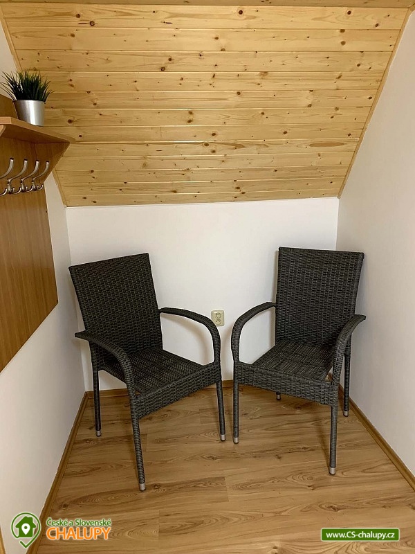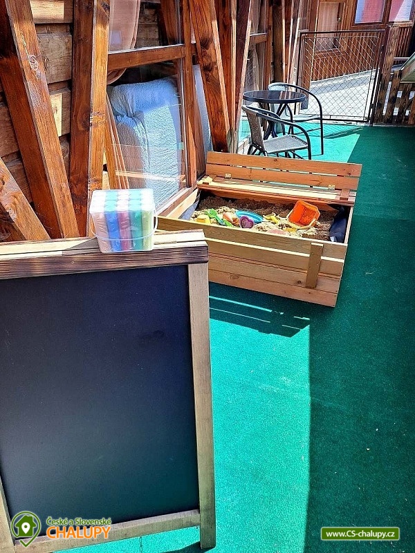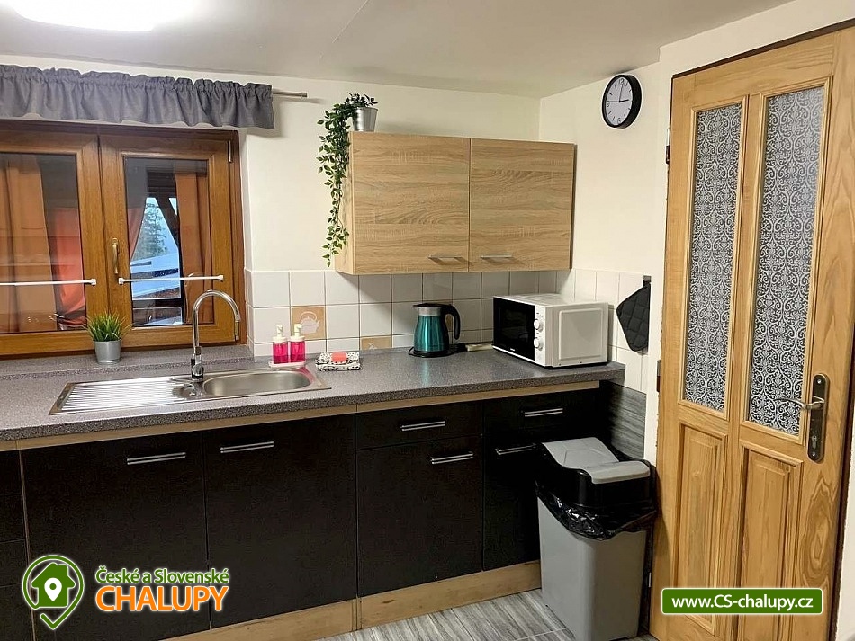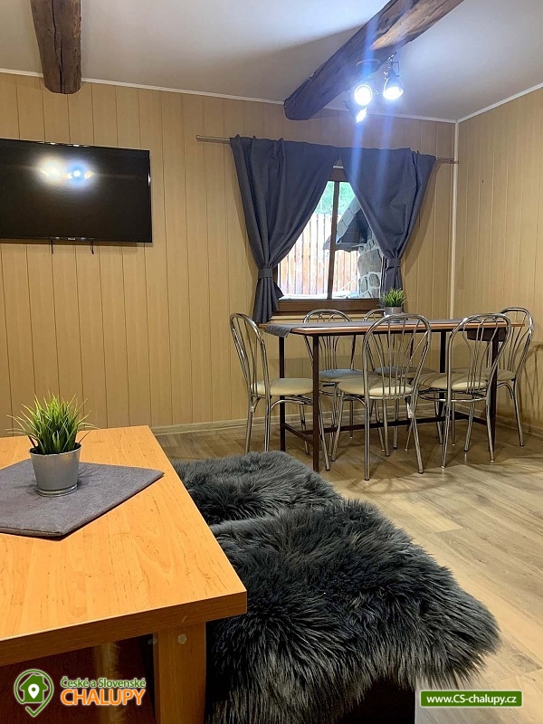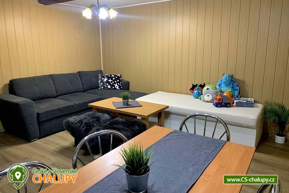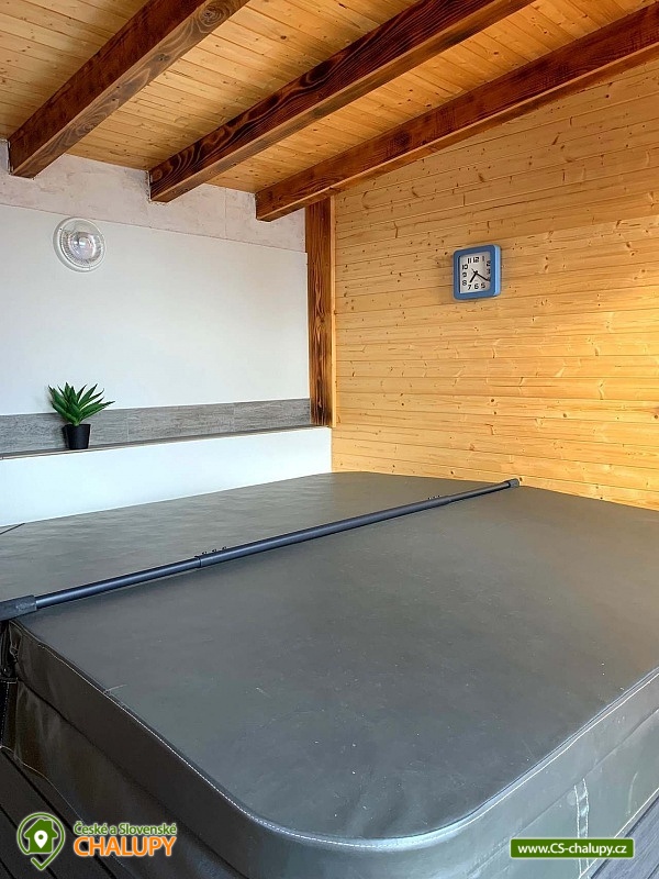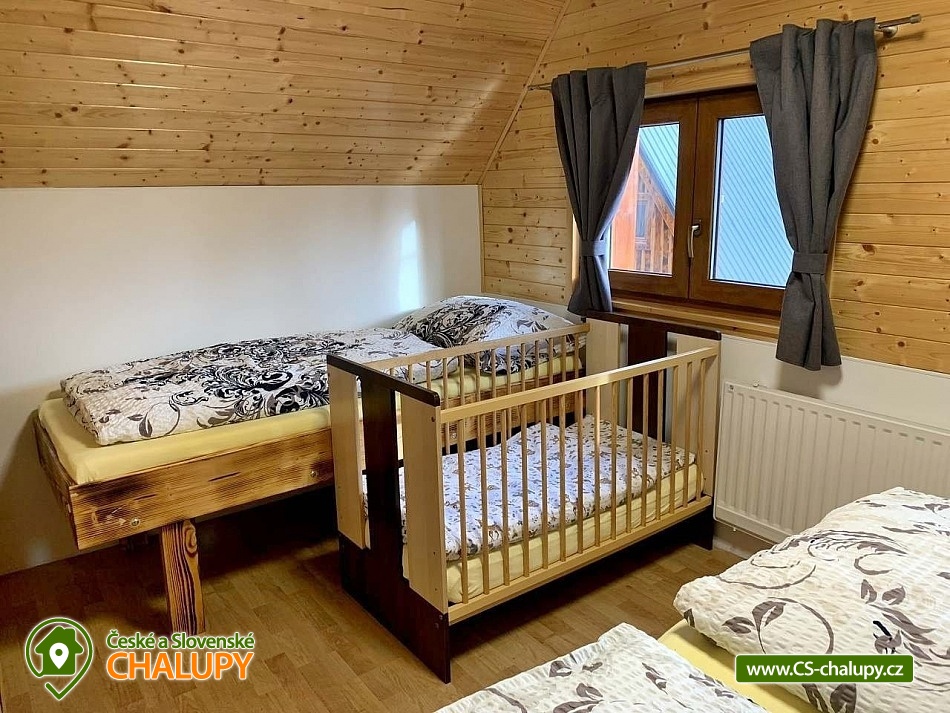 Chata s wellness se nachází v krásné zalesněné přírodě CHKO Beskydy u obce Horní Bečva, pod horským sedlem Pustevny. Těšit se můžete na klid, soukromí, relax ve vířivce a krásné výhledy do okolní horské krajiny. Chata nabízí ubytování pro 12 osob v 5 ložnicích. V patře jsou umístěné 3 ložnice - 1x třílůžková (manželská postel, jednolůžko a dětská postýlka) a 2x dvoulůžková ložnice (dvě jednolůžka). Ve sníženém podkroví (140 cm) je k dispozici ložnice se 4 přistýlkami (jednolůžkové matrace) a jako další ložnici lze využít v přízemí zimní zahradu s jednolůžkem. Pouze domluvě lze zajistit přistýlku na rozkládací pohovce. V patře ve velké ložnici je k dispozici skříň a noční stolek, lampička a v každé z dvou menších ložnic je součástí komoda a lampička. V přízemí chaty se nachází zádveří, zimní zahrada, předsíňka, kuchyň, obývací pokoj, dvě koupelny a WC. Součástí obývacího pokoje jsou krbová kamna, TV 43", sedací souprava rozšířená o postel, konferenční stolek, 2x taburet a jídelní stůl s 6 židlemi. Na pokoj navazuje plně vybavená kuchyň (čtyř - plotýnkový elektrický sporák s troubou, rychlovarná konvice, mikrovlnná trouba a pračka).K dispozici jsou 2 kuchyňské utěrky, houbička, jar na nádobí a toro čistič, odpadkový koš se sáčkem a základní kuchyňské vybavení pro 12 osob (talíře, sklínky, hrnky, vínové sklenice, pivní sklenice, panáky, příbory, pánev, hrnce, mísy, tácy, prkénka, nože, otvíráky, vařečky, škrabky, naběračky, cedítko apod.). Ke společným chvílím slouží také zimní zahrada s rozkládací sedačkou se stolkem, jednolůžkovou postelí, stolem s 3 židlemi a menší TV. Pro děti je v chatě dětský koutek s hračkami. V předsíni je umístěný věšák na oblečení, botník na sezení, druhý botník, 2 věšáky na prádlo a velká lednice s mrazákem. K zapůjčení je 2x kbelík, smetáček s lopatkou, mop na vytírání, velký smeták, mopový hadr, klasický hadr, kartáč na gril, sekera a pilka na dřevo. Sociální zařízení zahrnuje 3x sprchový kout, 3x WC a 3x umyvadlo. V chatě je k dispozici 1x koupelna se sprchovým koutem a WC s umyvadlem, 1x koupelna se sprchovým koutem s umyvadlovou skříňkou a 1x samostatné WC s umyvadlem. Dále je součástí wellness místnosti s vířivkou je další koupelna koupelna se sprchovým koutem a WC s umyvadlem. V každé koupelně je ručník na ruce, tekuté mýdlo na ruce, kelímek na kartáčky a podložka před sprchový kout. Na WC je k dispozici 1 toaletní role papíru. Součástí samostatného WC je ručník na ruce, tekuté mýdlo na ruce, koš se sáčkem, dětský nočník, dětská podložka na WC a dětská stolička. Ručníky na tělo a další potřeby do koupelny je nutné mít vlastní. Vytápění je řešeno krbovými kamny a elektrickým podlahovým topením. Pro pohodlí hostů jsou okna chaty vybavena sítěmi proti hmyzu. V celém objektu je k dispozici WIFI připojení na internet. U chaty se nachází plně oplocené posezení na venkovní terase s grilem a 15l kotlinkou na guláš. Připravené je také dětské hřiště (pískoviště a křídové tabule). Vedle chaty slouží k relaxu wellness místnost s vířivkou s ozonátorem pro 4 osoby, posezením a koupelnou s WC a umyvadlem. Pod chatou (150m) lze po domluvě a za příplatek využívat tenisový kurt. Parkovat lze přímo u objektu. K dispozici jsou 4 parkovací místa. K chatě vede udržovaná asfaltová cesta, dobře přístupná i v zimním období. V okolí chaty možnost turistiky, cykloturistiky, koupání, houbaření, rybaření, in -line bruslení, bruslení na ledě, lyžování, snowboarding a běžkování. V blízkosti jsou tenisové kurty, bowling, golfové hřiště, minigolf a jízdárna. Mezi možnosti koupání patří např.: koupací biotop - Prostřední Bečva, přehrada - Horní Bečva, koupaliště Hutisko - Solanec, koupaliště Vigantice, koupaliště Rožnov pod Radhoštěm, koupaliště Velké Karlovice, bazén Frenštát pod Radhoštěm, bazén Velké Karlovice, krytý bazén Rožnov pod Radhoštěm, aquapark Frenštát pod Radhoštěm, koupaliště Balaton atd. K dispozici jsou blízká lyžařská střediska: U Sachovy studánky - Horní Bečva, Rališka - Horní Bečva, Bílá, Kociánka, Solisko, Pod Soláněm a další. K výletům v okolí lákají Pustevny, Radhošť, Socha Radegasta, Přírodní rezervace Kněhyně - Čertův mlýn, Zábavní centrum pro děti - Gibon park, Valašské muzeum v přírodě - Rožnov pod Radhoštěm, Jurkovičova rozhledna nebo Automobilové muzeum Tatra - Kopřivnice. Těšíme se na Vás u nás.