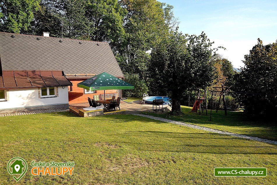 Chata s celoročním wellness nedaleko areálu Dolní Morava (Stezka v oblacích + Sky Bridge 721 Dolní Morava) avšak na klidném a tichém místě malé vesničky Horní Lipka. V přilehlé budově je k dispozic wellness s vířivkou a finskou saunou, na zahradě pak v létě bazén. Chata k pronájmu poskytuje ubytování pro až 9 osob ve 3 ložnicích. POPIS: V patře chaty se nachází 3x třílůžkový pokoj. Kuchyň je plně vybavená - nádobí, lednice, mikrovlnná trouba, rychlovarná konvice, varná indukční deska, myčka a elektrická trouba. Obývací místnost s TV a jídelním koutem, dále kulečník. V přízemí samostatná koupelna se sprchovým koutem a umyvadlem, samostatné WC. Vytápění chaty je řešeno krbem s teplovodním výměníkem nebo elektrokotlem . K chatě vede asfaltová zpevněná příjezdová komunikace, parkování je možné přímo u chaty a v zimních měsících při větším množství sněhu 50m od chaty. U chaty dále je venkovní posezení se slunečníkem, kruhový bazén, ohniště s posezením, venkovní gril a na terase možnost postavení stolního tenisu. V okolí Dolní Moravy pod Králickým Sněžníkem se Vám bude líbit v zimě i v létě. Na jaře a v létě je okolí Králického Sněžníku ideálním místem pro horskou turistiku, horskou cyklistiku a adrenalinové aktivity. V resortu Dolní Morava naleznete lanovou dráhu, bobovou dráhu, lanový park s dobrodružnou věží, půjčovnu vozítek Segway, půjčovnu elektrokol, Disc golf Park, Dětský park a mnohem více. V zimě patří ski areál Dolní Morava mezi TOP lyžařská střediska v ČR. Toto nové moderní lyžařské středisko pod vrcholem Králického Sněžníku nabízí vynikající podmínky pro lyžování spolu s veškerým komfortem. V areálu se nachází celkem 5 sjezdovek, 2 nové moderní čtyřsedačkové lanovky, 2 lyžařské vleky, dětský pojízdný koberec a mnoho dalšího.