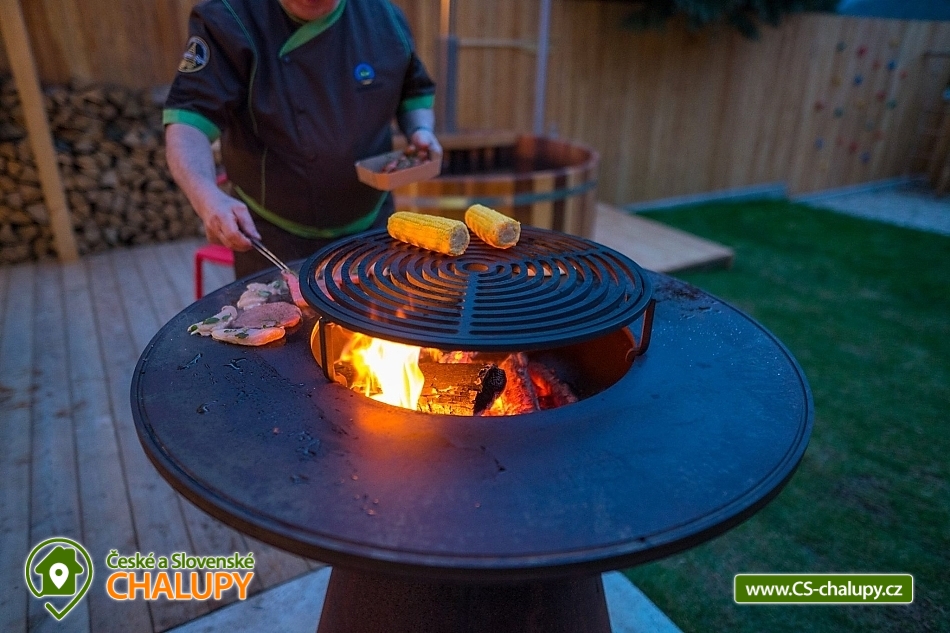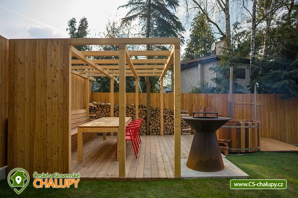 Chata Sázava se saunou a koupacím sudem se nachází v klidné osadě Pyskočely uprostřed Sázavských lesů, 20 minut od Prahy. Krátkou procházkou se dostanete k řece Sázavě. Třípatrová chata je ideální jak pro pár, tak pro rodinu s dětmi. Počet lůžek 4 – 1x manželská postel, 2x jednolůžko. Na rozlehlé zahradě si své užijí malí i velcí. Najdete zde dětské hřiště s malou horolezeckou stěnou a houpačkami. Dospělí si zase mohou vychutnat relax ve venkovní houpací síti Hastens a posezení u parádního grilu Taranis. Čeká Vás relax v úžasně voňavé cedrové prosklené sauně, která je pro vás připravená v suterénu chaty. Nebo raději venku v cedrové kádi? Cedr je velmi kvalitní dřevina, která má vedle báječné vůně také ozdravné účinky. Máte náladu spíše na masáž? Stačí se domluvit s naší masérkou a nechat se hýčkat, vypnout a na nic nemyslet. Při takovém odpočívání jednomu pořádně vyhládne. Vedle snídaně, kterou vám doneseme čerstvě připravenou až za dveře, jsme si pro vás nachystali ještě jednu specialitu. Domluvte se s naším šéfkuchařem, alespoň den předem a on vám na zahradě na grilu Taranis nachystá královskou večeři. Vařením, pečením a především grilováním doslova žije, a tak bude váš zážitek skutečně nezapomenutelný. Vydejte se prozkoumat okolní zajímavosti: Klášter sv. Prokopa v Sázavě, Čertovu brázdu, románský kostelík v Rovných nebo vyhlášenou vorařskou hospodu na Marjánce. Dále doporučujeme navštívit: Sázava - klášter, Český Šternberk - hrad, Pirkštejn - hrad, Konopiště - zámek a muzeum motocyklů. Těšíme se na Vás u nás.