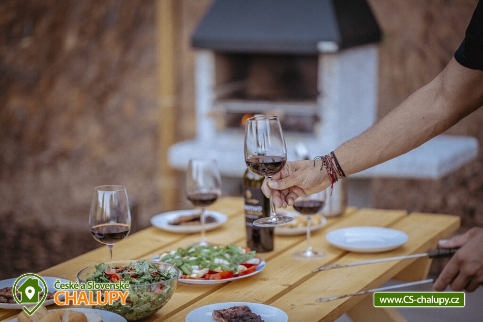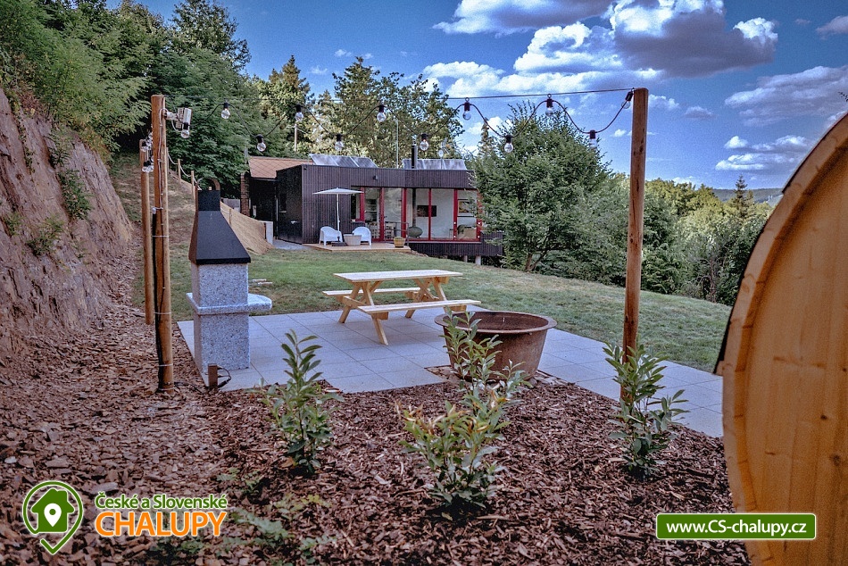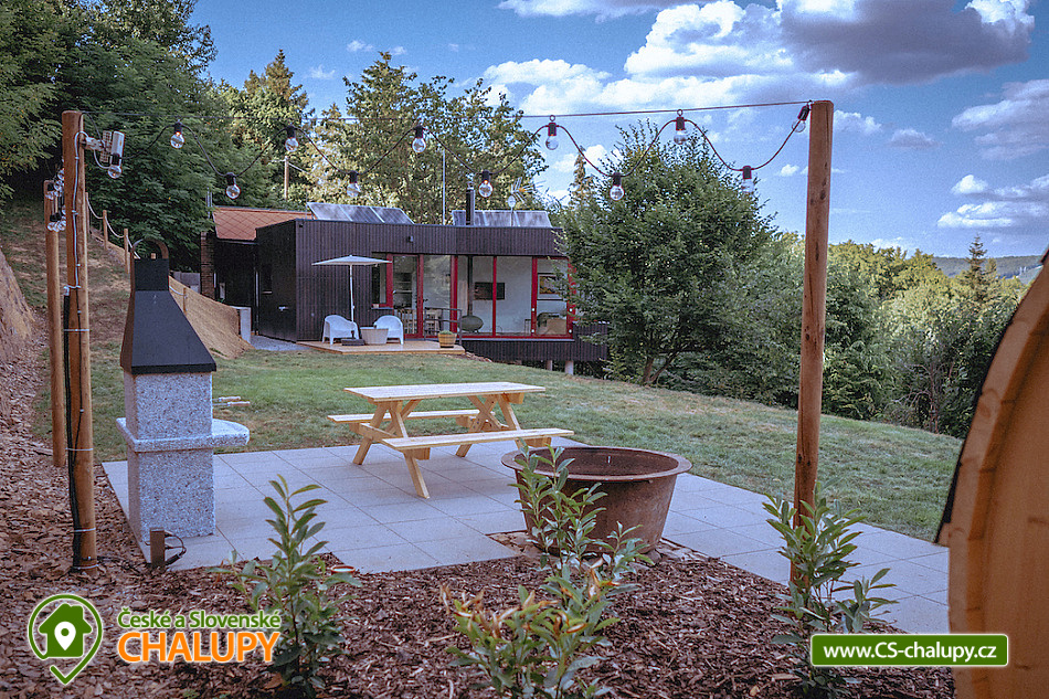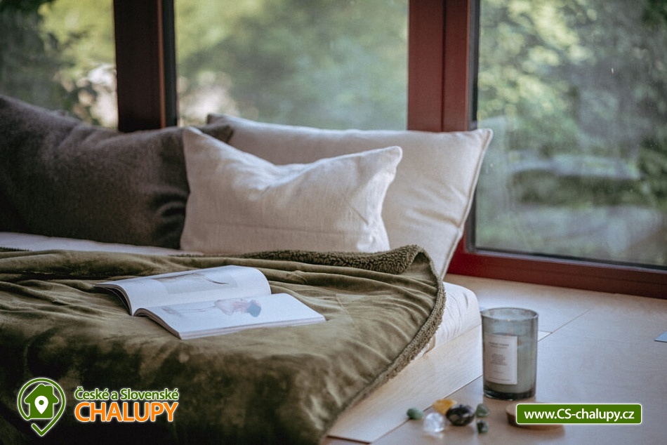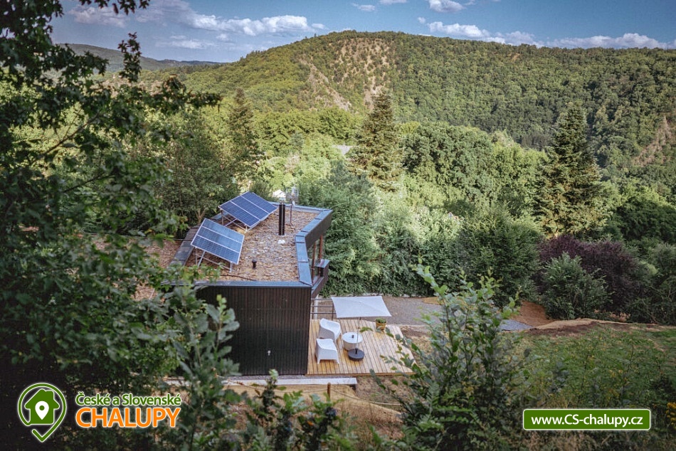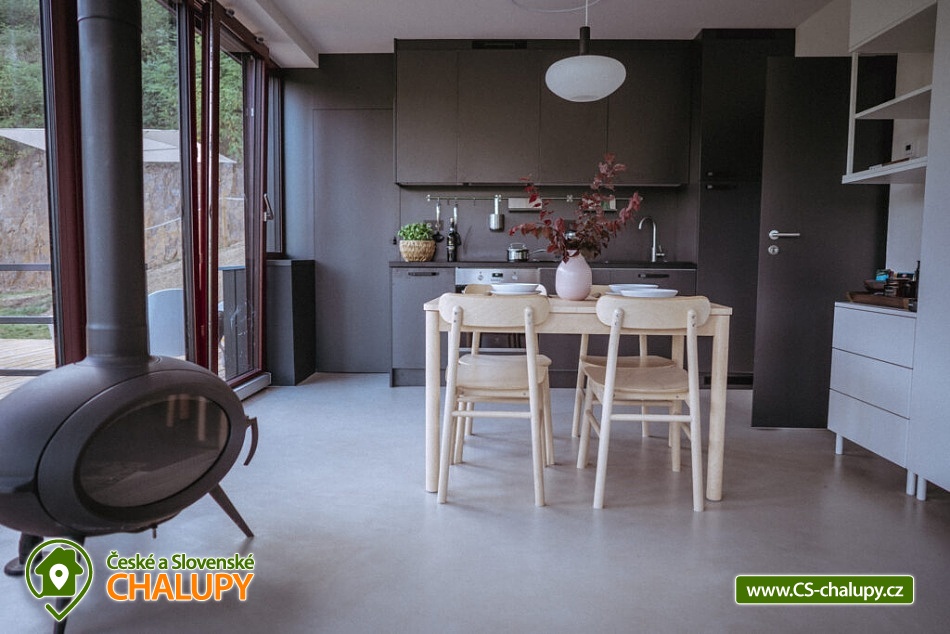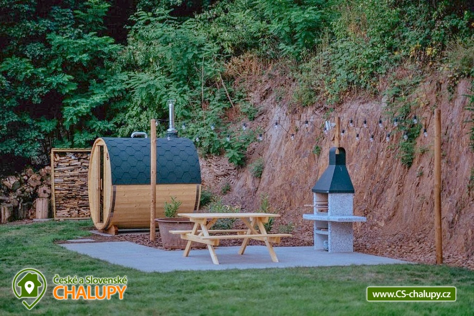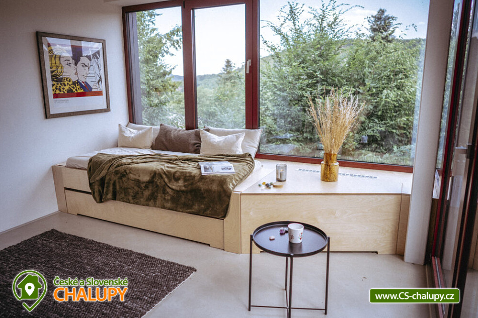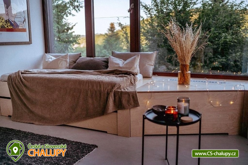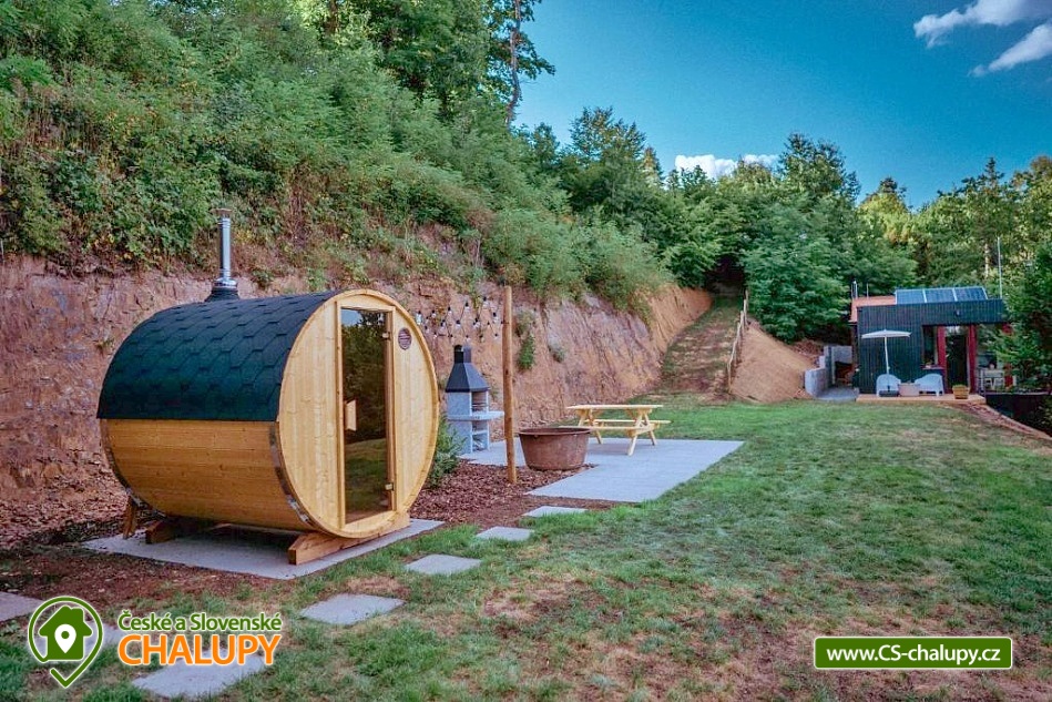 Luxusní Chata se saunou se nachází v přírodě Povltaví nedaleko Prahy a vodní nádrže Slapy. Těšit se můžete na teplo krbových kamen, na kontakt s přírodou přes panoramatická okna, obrovskou zahradu zaručující naprosté soukromí a na prostorné terasy, venkovní saunu a na ničím nerušené výhledy do údolí k řece. Chata nabízí ubytování pro až 4 osoby, k dispozici je jedna dvoulůžková ložnice s manželskou postelí a rozkládací dvoulůžko řešené jako pódium u prosklené stěny s krásnými výhledy do okolí ve společenské místnosti. Po domluvě možné zajistit přistýlku pro dítě na rozkládací pohovce v ložnici. Součástí ložnice jsou krbová kamna a TV. Příjemné chvíle lze trávit ve společenské místnosti s panoramatickými okny, krbovými kamny, posezením, jídelním stolem, TV, JBL reproduktorem a plně vybavenou kuchyní (varná indukční deska, elektrická trouba, lednice s mrazákem, varná konvice, mixér či kávovar Nespresso). Dále jsou k dispozici základní potraviny jako sůl, cukr, olej, ocet, koření, káva nebo čaj a úklidové prostředky vč. jaru na nádobí. Hosté mohou také využít „Honesty Bar“ – minibar s vínem, pivem a nealkem. V celém objektu je k dispozici WIFI připojení na internet. Sociální zařízení zahrnuje prostornou koupelnu se sprchovým koutem a WC. K dispozici je EKO mýdlo na ruce, šampon a sprchový gel. Využívat lze pračku, sušičku, žehličku a vysavač. Chata má kombinované vytápění řešené podlahovým elektrickým topením a dvěma krbovými kamny ve společenské místnosti a v ložnici. Volné chvíle si lze užívat na rozlehlé zahradě s terasou, letním posezením s venkovním krbem, saunou a tábořištěm a dalšími dvěma malými přírodními teráskami pro posezení s knihou či ranní protažení. K dispozici je dostatek dřeva, nářadí a samostatně stojící garáž pro uložení kol a sportovního vybavení. Parkovat lze přímo u objektu. V okolí chaty možnost cykloturistiky, koupání, houbaření a rybaření. V blízkosti jsou tenisové kurty. Mezi možnosti koupání patří např.: Slapská přehrada, vodní nádrž Štěchovice, Jez Žampach, koupaliště Jílové u Prahy, vodní nádrž Vrané, biotop Radotín, rybník Papež, Kunratický rybník Šeberák, biotop Lhotka, aquapark Barrandov, atd. K výletům v okolí láká nejstarší značená cesta povltavská Ztracenka, Posázavské stezka, Vyhlídka Máj, Výlet turistickým parníkem Štěchovice – Slapy, Trailpark Slapy, Soutok Vltavy a Sázavy u městysu Davle, Zámek Konopiště nebo Zámek Mníšek pod Brdy. Těšíme se na Vás u nás.