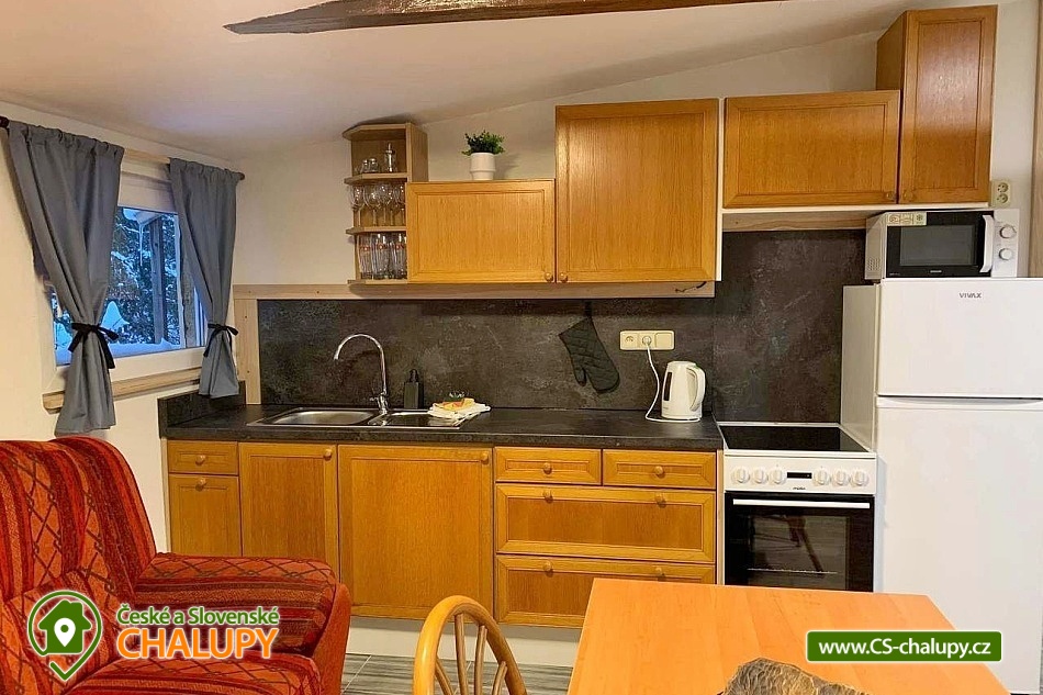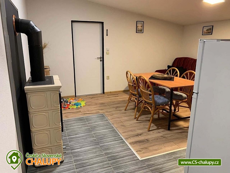 | Vybavení objektu - vnitřní: | společenská místnost, dětská postýlka, dětská stolička, dětský kout (hračky), krb / krbová kamna, internet - wifi, vybavená kuchyně, rychlovarná konvice, varná deska, lednička, mrazák, mikrovlnná trouba, koupelna s wc společné, koupelna se sprchovým koutem, wellness, sauna, TV |