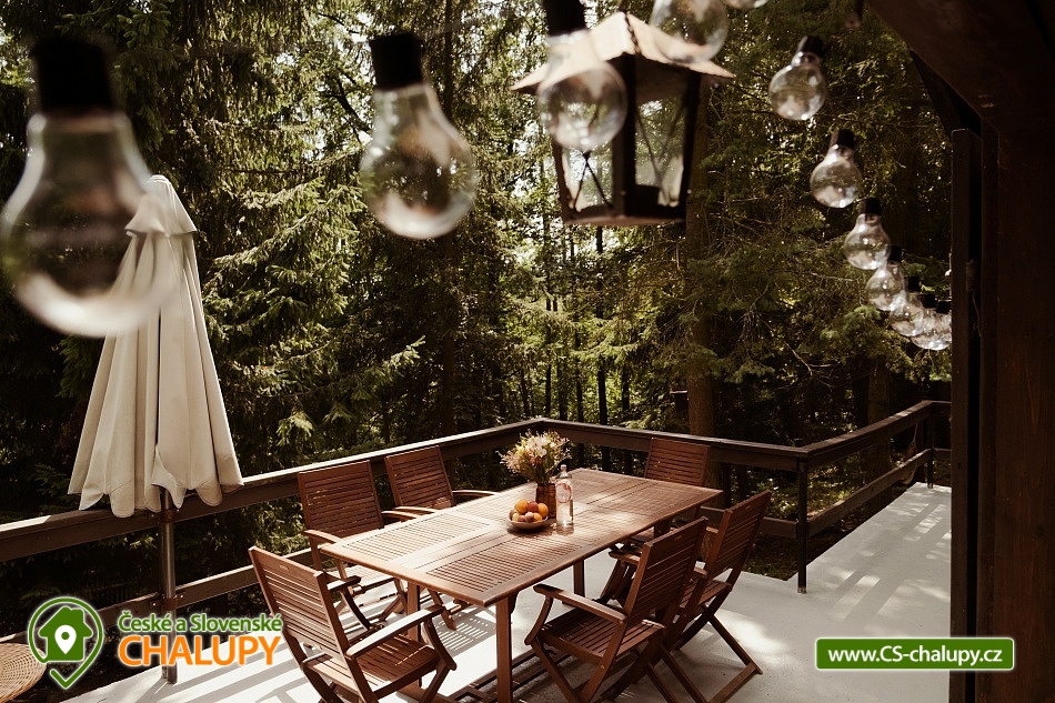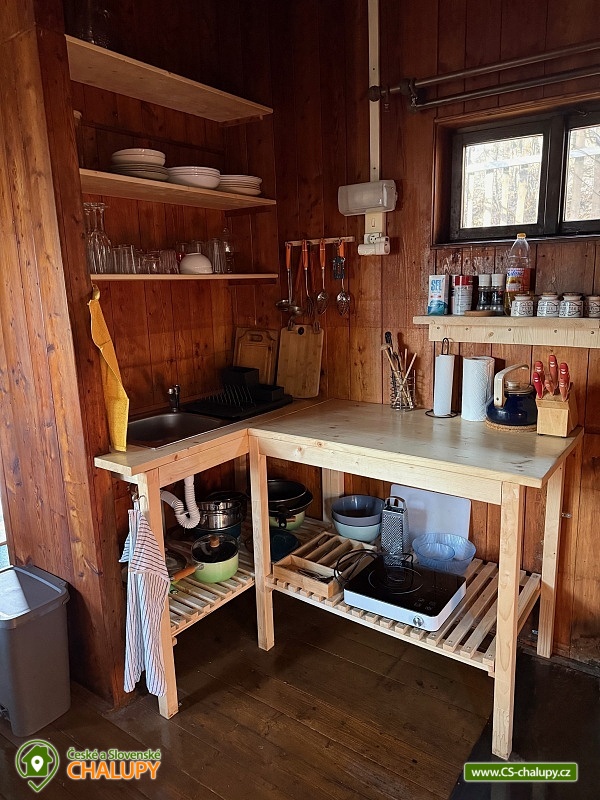 Objevte kouzlo naší malé chaloupky uprostřed lesů na Slapech, ideální pro ty, kdo touží po klidu a tichu přírody. Chaloupka je jako stvořená pro pohodové víkendy nebo týdenní odpočinek, kreativní home office, cyklistické výlety či prosté načerpání nové energie. Uvnitř vás čeká útulný interiér s dřevěnými prvky, obývací prostor se spaním, plně vybavená kuchyň s krbovými kamny a prostorná druhá ložnice na půdě. Venku můžete relaxovat na terase s výhledem do lesa. Naše chaloupka je oázou klidu💚 Prostor **OBÝVACÍ POKOJ S LOŽNICÍ** V hlavní místnosti se nachází originální patrová postel pro dvě osoby, která nabízí výborné pohodlí. K dispozici je také dostatek úložného prostoru pro osobní věci a zavazadla hostů, aby si mohli pohodlně uspořádat své věci a užít si pobyt bez nepořádku. Z místnosti je vstup na terasu přes dvoukřídlé dveře a také po schodech na půdu do druhé ložnice. **KUCHYNĚ** Kuchyně nabízí dostatek úložného místa, lednici s mrazákem, kamna, indukční vařič a veškeré potřebné nádobí a náčiní. Hosté si zde mohou připravit chutné pokrmy a vychutnat si je v útulném prostředí. U jídelního stolu se pohodlně posadí 4 hosté. **PŮDA** Na půdě mohou spát další dva lidé na matracích. Přes den je zde teplo, ale večer je podkroví velmi příjemné a útulné. Ideální prostor pro ty, kdo chtějí zažít trochu dobrodružství a užít si klidný spánek pod střechou. **KOUPELNA** Koupelna je vybavena sprchovým koutem, který poskytuje osvěžující sprchu po dni stráveném venku. WC není napojené na studnu, takže hosté musí splachovat dešťovou vodou. Věříme, že tato drobnost vám pobyt neznepříjemní a že oceníte šetrný přístup k přírodním zdrojům. **VODA VE STUDNI** Na pozemku se nachází studna, avšak s vodou je nutné šetřit. Voda ze studny je určena k běžnému užívání, avšak prosíme hosty, aby jí používali s rozvahou a ohleduplně. Voda z kohoutku není pitná, proto doporučujeme hostům, aby si dovezli balenou vodu. Při příchodu na vás bude pro jistotu jedna čekat. **TERASA** Na terase najdete velký stůl pro šest osob, ideální pro venkovní stolování. Slunečník poskytuje příjemný stín během horkých dnů a rohová sedačka je perfektním místem pro odpočinek a relaxaci po celý den. **ZAHRADA** Na zahradě můžete využívat čerstvé bylinky, které jsou volně k dispozici. Najdete zde také skleník s našimi pokusy o pěstování zeleniny, kterou můžete podle sezóny ochutnat. Na krásném lesním pozemku si můžete odpočinout na hamace a vychutnat si klid a pohodu okolní přírody. **OHNIŠTĚ** Hosté mohou grilovat na ohništi s grilovací deskou, kde je také připraveno sezení pro pohodlné posezení u ohně. Užijte si společné večery pod hvězdami s vůní grilovaných specialit.