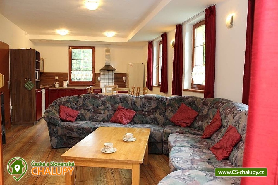 Chalupa se saunou se nachází v rekreačním středisku Kouty nad Desnou - Loučná nad Desnou, poloha na pomezí Šumperska a Jesenicka. Těšit se můžete na krásné výhledy do okolní přírody CHKO Jeseníky. Výhodou je blízkost areálu Kouty, jehož součástí je také bikepark, balanc park nebo půjčovna kol a koloběžek + v zimě skiareál. Chalupa nabízí ubytování pro až 19 osob, celkem je k dispozici 6 ložnic. V přízemí dvoulůžková ložnice (manželská postel), v patře dvoulůžková ložnice (dvě jednolůžka) a v podkroví dvě třílůžkové ložnice (tři jednolůžka), čtyřlůžková ložnice (dvě jednolůžka a jedna patrová postel) a pětilůžková ložnice (manželská postel, patrová postel a jednolůžko). Všechny ložnice jsou vybavené komfortními lůžky z masivu s lamelovým roštem, kvalitními matracemi a lůžkovinami (peřina a polštář). Ručníky, povlečení a prostěradla je nutné mít vlastní nebo lze za poplatek zajistit. Dětská postýlka je k zapůjčení. Do přízemí se vstupuje přes zádveří, dále navazuje společenská místnost s krbovými kamny a posezením, která může sloužit jako herna. V místnosti je umístěný stolní tenis a šipky. Dále je v přízemí k dispozici kuchyňský kout s ledničkou (s výškou 150 cm). Do vyšších pater vede masivní dubové schodiště. V patře lze společné chvíle trávit v obývací místnosti s krbovými kamny, sedací soupravou, TV, jídelním stolem a plně vybavenou kuchyní (varná konvice, 180 cm vysoká lednička s mrazákem, sklokeramická varná deska, trouba, digestoř, mikrovlnná trouba a myčka). V celém objektu je k dispozici WIFI připojení na internet. Sociální zařízení zahrnuje v přízemí jednu koupelnu se sprchovým koutem a WC, v patře jednu koupelnu se sprchovým koutem, saunou pro 5 osob a jedno samostatné WC a v podkroví jednu koupelnu se dvěma sprchovými kouty a samostatné WC. Vytápění je řešeno centrálním topením elektrokotlem s radiátory. K dispozici jsou krbová kamna a přímotopy. Venku lze posedět na vyvýšené zastřešené terase s krásnými výhledy do okolní přírody. K dispozici je také ohniště. Děti ocení venkovní prolézačky s pískovištěm a houpačkou. V letních měsících lze využívat nafukovací bazén. K dispozici je úschovna pro kola a lyže. Parkovat lze přímo u objektu. V okolí chalupy možnost turistiky, cykloturistiky, koupání, houbaření, rybaření, běžkování a lyžování. V blízkosti jsou také tenisové kurty, minigolf, in - line bruslení a bowling. Mezi možnosti koupání patří např.: Velké Losiny - termály, bazén Domašov - Bělá pod Pradědem, termální koupaliště Velké Losiny, koupaliště Rapotín, Bazén Karlova Studánka, koupaliště Jeseník, bazén Jeseník - Priessnitz, přehrada Krásné, bazén Šumperk - Aquacentrum, atd. K dispozici jsou blízká lyžařská střediska: Kouty nad Desnou, Kareš - Kouty nad Desnou, Červenohorské sedlo, OAZA – Loučná nad Desnou, Přemyslov a další. K výletům v okolí láká Přečerpávací vodní elektrárna Dlouhé Stráně, vodopády na Borovém potoce, Praděd, Zámek a Muzeum papíru Velké Losiny... Těšíme se na Vás u nás.