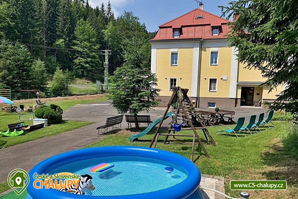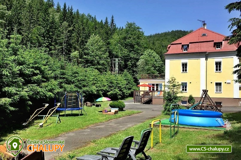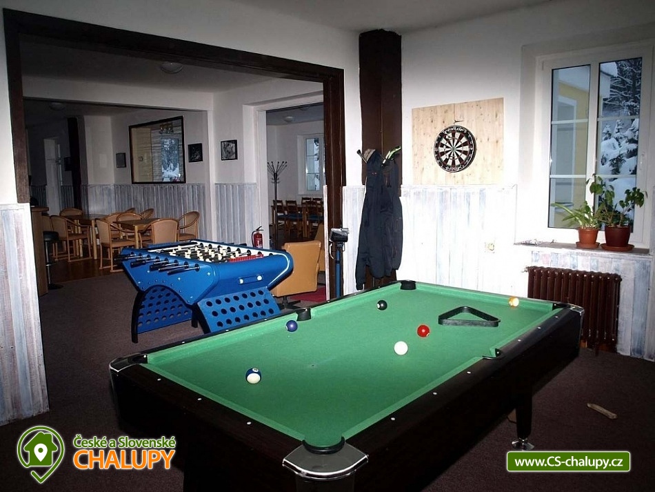 Chata u lesa a Klínoveckého potoka v Krušných horách. Chata pro až 38 osob má k dispozici 12 ložnic a pronajímá se vždy 1 skupině klientů v soukromí. Chata je ideálním místem pro milovníky sportu, turistiky, lyžování i cyklistiky. Nachází se v klidném a krásném údolí pod úpatím Klínovce, nejvyšší horou Krušných hor, s možností celoročního využití. V přízemí se nachází prostorné společenské místnosti, krbová kamna, vybavená kuchyň (myčka nádobí, 4 velké lednice, mrazák, plynový sporák s elektrickou troubou, velký profi plynový sporák. elektrický gril, nádobí, hrnce atd.), bar, rychlovarné konvice a kávovar na překapávanou kávu. Dále je zde herna: biliard, fotbálek, společenské hry a ping - pong stůl. K dispozici lyžárna/kolárna, bar a herna. Ložnice a pokoje - 12 pokojů s 2 až 4 lůžky. V chatě je 4x pokoj s vlastním sociálním zařízením/WC, umyvadlo, sprchový kout. Dále 4x rodinný apartmán /2 pokoje/ se sdíleným sociálním zařízením/WC, umyvadlo, sprchový kout - ideální zejména pro větší rodinu s dětmi. Sociální zařízení: 9x WC, z toho jedno bezbariérové WC v přízemí, 8x sprchový kout. Ústřední topení - zajišťuje správce. Asfaltová příjezdová cesta, udržovaná a sjízdná i v zimním období. Parkování přímo u objektu. Stravování vlastní, možnost vařit si v kompletně vybavené prostorné kuchyni. Chata je svou polohou a vybaveností ideálním místem pro rodiny s dětmi, rodinné oslavy, ozdravné pobyty, pro firemní akce či skupinovou dovolenou. Pouhých 5 min jízdy autem, nebo pěší procházkou jsou dostupné radonové lázně Jáchymov nebo dolní stanice lanovky Skiareálu Klínovec. Pro pěší turisty stejně jako pro milovníky Nordic Walkingu je v okolí mnoho zajímavých míst a spousta ideálních tras. Region dále nabízí možnosti výletů autem nebo vlakem za zajímavostmi Jáchymova i Karlovarského kraje. V okolí našeho objektu naleznete celou řadu příležitostí k lyžování. Přibližně 800 m nad objektem je dolní stanice lanovky vedoucí na vrchol Klínovce. V Jáchymově naleznete 3 vleky vhodné pro začínající lyžaře. V dostupnosti několika kilometrů je celá řada dalších lyžařských areálů včetně německého Fichtelbergu. Jednou z velkých výhod Krušných hor jsou velmi dobré ceny za lyžování a vysoká kvalita sjezdovek. To dělá z chaty ideální místo pro různá lyžařská soustředění i lyžařské výcviky, tak i individuální rodinnou dovolenou pro zkušené i začínající lyžaře.