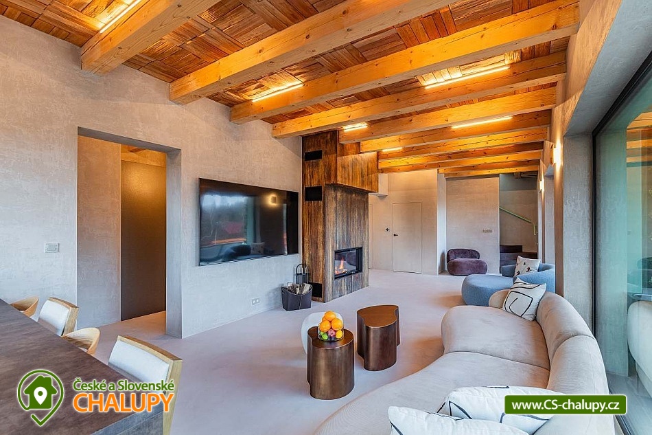 Chata u lesa s vířivkou se nachází v obci Kunčice pod Ondřejníkem v krásné přírodě Beskyd téměř na samotě u lesa. Těšit se můžete na luxusní venkovní vířivku a terasu vybavenou moderním posezením. Chata nabízí ubytování pro 8 osob ve 3 samostatných podkrovních ložnicích. V hlavní ložnici najdete dvoumetrovou manželskou postel a samostatně stojící vanu s krásným výhledem do okolní krajiny. Ve druhé ložnici s výhledem do přírody je k dispozici jedna dvoumetrová manželská postel. Zde je možné v případě potřeby umístit cestovní dětskou postýlku. Třetí ložnice nabízí dvě manželské postele, z nichž jedna je rozměrově menší (160 cm). Ke společným chvílím slouží v přízemí prostorný obývací pokoj s velkými prosklenými okny a výhledem do krajiny. Dominantou této místnosti je krásná sedací souprava, designový konferenční stolek, TV a oboustranný krb. Na obývací pokoj volně navazuje jídelní kout (posezení až pro 8 osob) a plně vybavená kuchyň (lednice, mrazák, myčka, mikrovlnná trouba, rychlovarná konvice, kávovar Delonghi na zrnkovou kávu, indukční deska a nádobí) doplněná o barové posezení. Sociální zařízení zahrnuje 2 koupelny vybavené walk-in sprchovými kouty, 2 samostatné toalety a jednu vanu v jedné z ložnic. Nechybí ani technická místnost vybavená pračkou a sušičkou. V celém objektu je k dispozici Wifi připojení na internet. Vytápění je řešeno krbovými kamny a elektrickým podlahovým vytápěním. Z obývacího pokoje lze vejít přímo na terasu. Pod zastřešenou částí terasy najdete luxusní zahradní nábytek a vířivku, ze které můžete sledovat televizi nebo si užívat výhledy do okolní přírody. Příjemnou atmosféru této terasy dotváří živá zelená stěna porostlá květinami. K dispozici je také venkovní gril nebo ohniště. Parkovat lze přímo u objektu (až 5 parkovacích míst). V okolí chaty možnost turistiky, cykloturistiky, koupání, houbaření, lyžování a běžkování. V blízkosti jsou také dvě golfová hřiště: Ostravice a Čeledná. Mezi možnosti koupání patří např.: bazén Frenštát pod Radhoštěm, aquapark Frenštát pod Radhoštěm, koupaliště Frýdlant nad Ostravicí, koupaliště Ostravice - Sepetná, koupaliště biotop Bečva, přehrada Horní Bečva, atd. K dispozici jsou blízká lyžařská střediska např.: Ski Bílá, Opálená, Pustevny, Radhošť - Pod kaplí, Frenštát pod Radhoštěm, Kocianka a Malenovice. K výletům v okolí lákají Pustevny, socha Radegast, Radhošť, Soláň, Rožnov pod Radhoštěm, Frenštát pod Radhoštěm, Valašské Meziříčí, Frýdek-Místek nebo Kopřivnice. Těšíme se na Vás u nás.