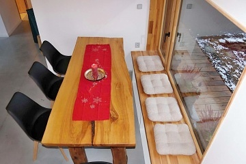 Chata u lesa a říčky Vsetínská Bečva se nachází v krásné přírodě CHKO Beskydy, v obci Velké Karlovice. Leží přímo na cyklo a běžkařských trasách. V těsné blízkosti se nachází golfové hřiště a termální bazén s wellness. Chata nabízí ubytování pro 7 osob ve dvou ložnicích (1x dvoulůžková a 1x čtyřlůžková) a dvě přistýlky na rozkládací pohovce v obývací části. Každá ložnice má vlastní vstup na terasu a moderní koupelnu s umyvadlem, sprchovým koutem a WC. K dispozici ještě další samostatné WC. V obývacím prostoru najdete rozkládací pohovku, TV, jídelní stůl s posezením a plně vybavený kuchyňský kout (nádobí, varná konvice, lednice, mrazák, indukční deska, trouba, kávovar na kapsle Nespresso a myčka). K dispozici Wi-Fi připojení a sušáky na prádlo. Objekt je vytápěn podlahovým topením. Parkování možné pod přístřeškem pro 2 auta. K chatě náleží dvě terasy, jedna je v patře a druhá, prostornější je v přízemí včetně posezení a grilu. V okolí chaty se můžete věnovat turistice, cykloturistice, houbaření, běžkování, lyžování a golfu. Možnosti koupání: hotel Horal - bazén a wellness, aquapark Vodní Svět Velké Karlovice, bazén a koupaliště Velké Karlovice. Tipy na výlety: Karlovské muzeum, Kulíškova naučná stezka, Soláň - Zvonice, Jurkovičova rozhledna, stezka Valaška, zábavní park Gibon, Valašské muzeum v přírodě - Rožnov pod Radhoštěm, Pustevny s vycházkou na Radhošť, Kopřivnice - muzeum Tatrovky, Čeladná - bobová dráha, ZOO Lešná nebo Valašské Meziříčí. Lyžařská střediska: Velké Karlovice - Machůzky, Razula, Velké Karlovice - Bambucha, Synot - Kyčerka, LS zona snow Makov - Kasárne, Soláň - Bzové. Těšíme se na Vás u nás.