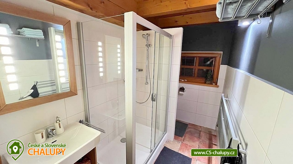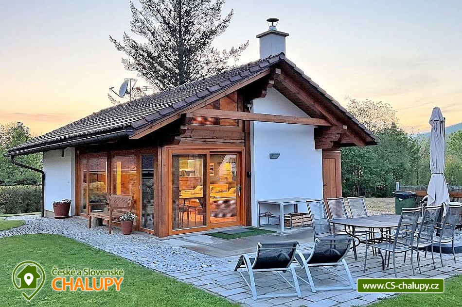 Chata u potoka (zahradou u chaty protéká protéká Vrchovištní potok) se nachází nedaleko Velkého mechového jezírka na Rejvízu - nejkrásnější části CHKO Jeseníky. Poloha v klidné lokalitě Dětřichov, přibližně 2 km od lázeňského města Jeseník (Priessnitzovy lázně). Chata nabízí ubytování pro až 4 osoby. Součástí chaty je hlavní obytná místnost, jejíž součástí jsou dvě dvoulůžkové postele 200x180cm. Dále je v místnosti k dispozici rozkládací pohovka 140x200cm (po domluvě možnost přistýlky), jídelní stůl se židlemi pro 4 osoby, LED Smart TV (satelit, Netflix, YouTube), úložná skříň na oblečení, rádio, krbová kamna a plně vybavená kuchyň - veškeré nádobí a potřeby na vaření, varná deska, digestoř, kombinovaná trouba (elektrická, mikrovlnná, gril), lednice, kávovar na filtrovanou kávu, kávovar Nespresso, varná konvice, toustovač, topinkovač a výčep na pivo. K zapůjčení je dětská postýlka. Část místnosti je tvořena panoramatickými okny s krásným výhledem do zahrady. Sociální zařízení zahrnuje jednu samostatnou koupelnu s umyvadlem, sprchovým koutem, WC a elektrickým žebříkem na ručníky. Vytápění je řešeno vnitřními krbovými kamny a podlahovým vytápěním. V celém objektu je k dispozici WIFI připojení na internet. Přímo z obývací části lze vstoupit na venkovní terasu s posezením a slunečníkem, lehátky, grilem a zahradní sprchou. K dispozici je ohniště. Zajištěno je bezpečné uložení kol, lyží a sportovního vybavení. Parkovat lze přímo u objektu. V okolí chaty možnost turistiky, cykloturistiky, koupání, houbaření, rybaření, lyžování a běžkování. V blízkosti je jízdárna, tenisové kurty a golfové hřiště. Mezi možnosti koupání patří např.: bazén Jeseník - Priessnitz, koupaliště Jeseník, bazén Česká Ves, bazén Domašov - Bělá pod Pradědem, lom Žulová - Brankopy, atd. K dispozici jsou blízká lyžařská střediska: Lyžařský areál Na Smrťáku, Jeseník - Lázně, Lázeňský vrch, Miroslav - Lipová Lázně a další. K dalším výletům v okolí lákají Lipovské stezky, Rychlebské stezky - mekka trailové cyklistiky v ČR, Praděd - nejvyšší hora Jeseníků, Křížový vrch, rozhledna Zlatý Chlum, Čertovy kameny, Přečerpávací vodní elektrárna Dlouhé Stráně, Ruční papírna Velké Losiny, Lesní bar Horní Lipová, Jeskyně Na Pomezí nebo Karlova Studánka. Těšíme se na Vás u nás.