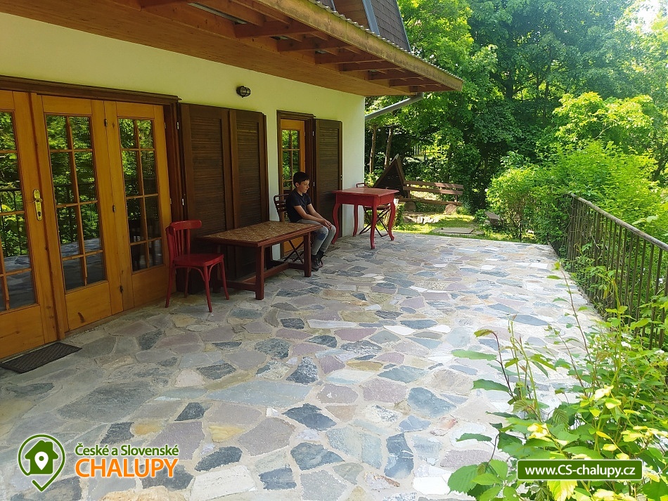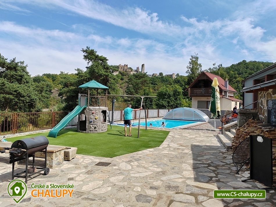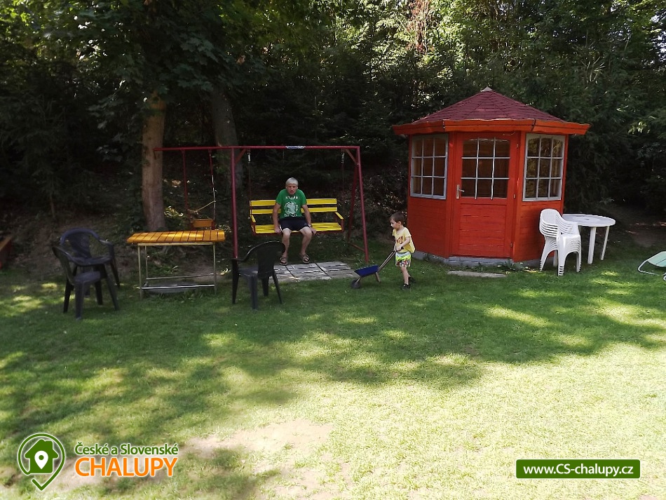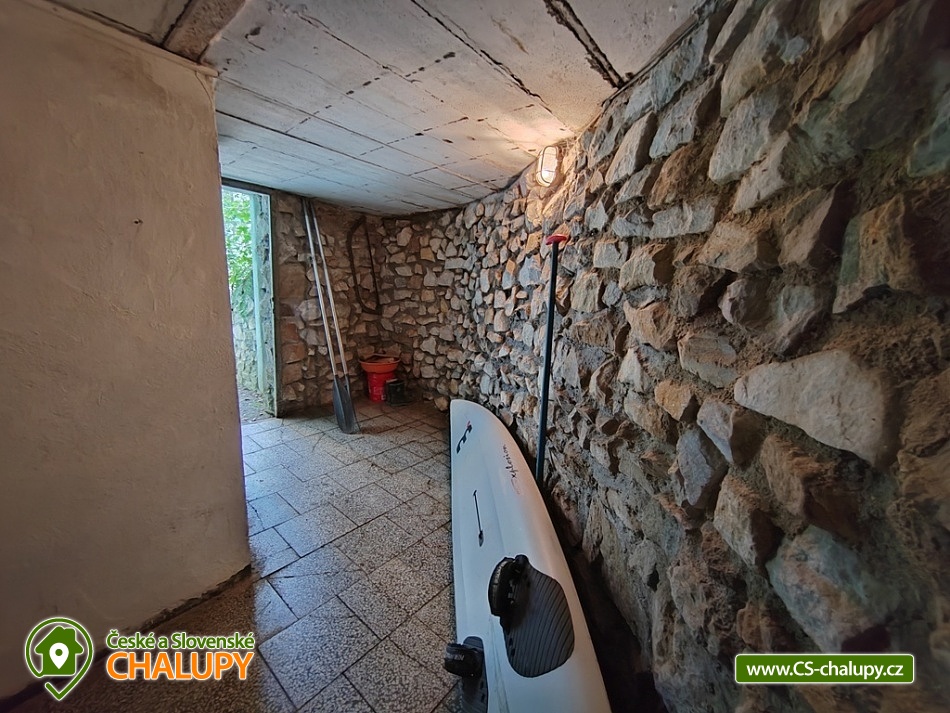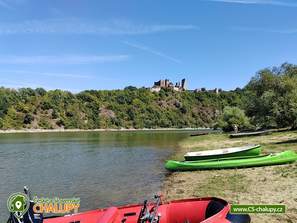 Chata u přehrady Vranov nedaleko hradu Cornštejn a hradu Bítov. Moravský Jadran, tak je nazývána jedna z nejatraktivnějších turistických oblastí naší republiky Vranov a okolí. Množství kulturních památek a akcí, stejně jako sportovní možnosti (turistika, cykloturistika) nabízí zdejší Národní park Podyjí. Kolem chaty je velký soukromý pozemek (1200m2). Každá rodina má proto samostatné posezení a dostatek vlastního soukromí. Parkování pro 3 osobní vozy přímo u chaty pro ubytované zdarma. Výborná dopravní přístupnost. Popis místností: A - PŘÍZEMÍ: obytná místnost, rozkl. patrová postel + postel, kuchyňská linka s nádobím, T+S voda, el. 2 - vařič, rychlovar. konvice, lednice s mrazákem. Dále samostatné WC a koupelna se sprchou pro celou chatu, v chodbě vestavné skříně, dětská postýlky a židlička. B - PATRO: obytná místnost, rozkl. sedačka 4 lůžka, kuchyňská linka s nádobím, el. pečící trouba, plynový varný panel, velká lednice s mrazničkou, mikrovlnná trouba, T+S voda, rychlovar. konvice, umyvadlo, bar. TV (+ SAT - Astra), krbová kamna. C - PODKROVÍ: 1) obytná místnost, rozkl. sedačka, 3 postele, kuchyňská linka s nádobím, kombin. plyn+el, sporák, lednice s mraz. , S voda, rychlovar. konvice, umyvadlo, bar. TV (+ SAT - Astra) 2) ložnice, 4 postele. Dále samostatné WC. Každé patro je zcela samostatné a přístupné ze společného schodiště. Dohromady se v celé chatě nachází 12 pevných lůžek a dalších 5-6 spacích míst na rozkládacích sedačkách v celkem 4 různých pokojích. Voda je pitná. K chatě patří i velký sklep. Wi-fi internet. Soukromé volejbalové hřiště (vhodné na volejbal, nohejbal; míč doporučujeme vzít s sebou) jen pro ubytované, volejbalová síť, stolní tenis + pálky a míčky, ruské kuželky, stolní fotbal, gril s udírnou, ohniště se dřevem, houpačka, zahradní nábytek, venkovní sprcha, sklep, 2 pramice. Chata se nachází v bezprostřední blízkosti přehradní nádrže (100m od písečné pláže), v malebném údolí s výhledem na zříceninu hradu Cornštejn, jedné z nejlákavějších částí Vranovské přehrady. Rozlehlá travnato-písčitá pláž s pozvolným vstupem do vody je ideální pro koupání s dětmi. Na své si zde přijdou i rybáři.