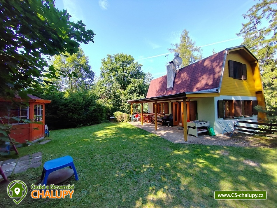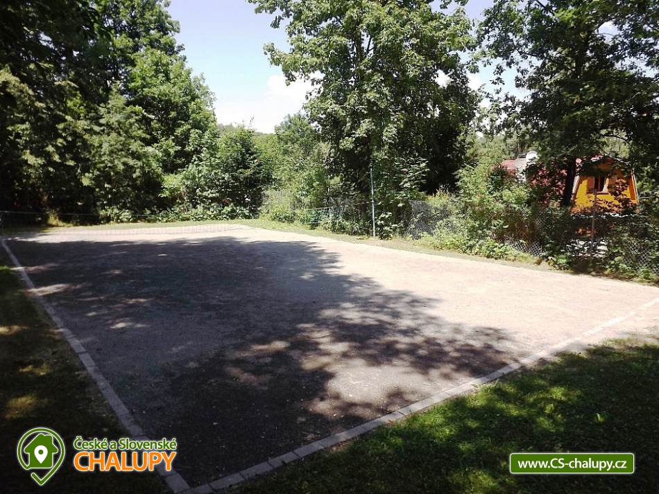 „Chata na Vranovské přehradě s vlastním volejbalovým hřištěm.“