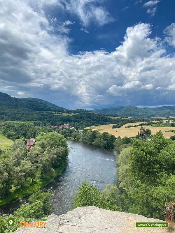 Chata u řeky Ohře - hrad Perštejn - Doupovské hory Krušné hory a České středohoří