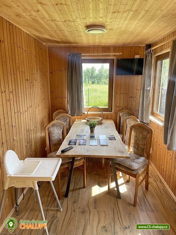 Chata u rybníka se nachází v krásné přírodě NP České Švýcarsko a CHKO Lužické hory, nedaleko hranic s Německem. Milovníky rybaření potěší těsná blízkost dvou rybníků Racek a Tůň zasazených do hezké přírodní krajiny. Útulná chata je postavena v tradičním severském stylu, má dřevěnou fasádu s kamennými prvky a kompletní tepelnou izolaci. Interiér ve všech místnostech kombinuje dřevěné obložení s moderními prvky. Těšit se můžete na venkovní posezení a travnatou zahradu. Chata nabízí ubytování pro až 7 osob, z toho 6 pevných lůžek ve dvou ložnicích a 1 přistýlku řešenou rozkládací pohovkou v obývací části. Obě ložnice jsou umístěné v patře chaty. Celkem je k dispozici 1x čtyřlůžková ložnice s dvěma dvoulůžky, postýlkou, odkládací skříní a TV a 1x dvoulůžková ložnice s jedním dvoulůžkem, komodou na osobní věci a postýlkou pro malé dítě. V přízemí lze příjemné chvíle trávit v obývací místnosti s krbovými kamny, sedací soupravou a TV nebo ve společenské místnosti s prostorným jídelním stolem, TV a vstupem na terasu. K zapůjčení jsou společenské hry. Pro děti je k dispozici dětská jídelní židlička a v patře pro větší bezpečnost dětská zábrana na schody. Součástí chaty je plně vybavená kuchyň (sporák, lednice, mikrovlnná trouba, remoska, sklokeramická varná deska, varná konvice, toustovač, kávovar, veškeré nádobí, hrnce a myčka na nádobí). V celém objektu je k dispozici WIFI připojení na internet. Sociální zařízení zahrnuje v přízemí jednu koupelnu se sprchovým koutem, umyvadlem a WC a jedno samostatné WC. Vytápění je řešeno krbovými kamny na dřevo, která vytopí celý prostor chaty. Přitopit si lze také elektrickým radiátorem. Kolem chaty se rozléhá oplocená, travnatá, udržovaná zahrada ideální pro odpočinek, hry dětí a venkovní aktivity. Posedět lze na terase kryté markýzou. K dispozici je gril a ohniště. Děti ocení houpačky, skluzavku a pískoviště s hračkami. K dispozici je úschovna pro kola a další sportovní vybavení. Po domluvě možnost zapůjčení 2 horských kol a venkovních her - badminton, frisbee a petanque. Před chatou je parkovací stání pro tři auta, z toho jedno je kryté. V okolí objektu možnost turistiky, cykloturistiky, koupání, houbaření, in -line bruslení, bruslení na ledě, lyžování, snowboarding a běžkování. V blízkosti jsou tenisové kurty, bowling a jízdarna. Mezi možnosti koupání patří např.: Plavecký bazén Rumburk, Kyjovská přehrada, Přírodní koupaliště Mikulášovice, Aquapark Děčín, Plavecký bazén Varnsdorf atd. V zimním období je k dispozici vlek Rumburk a lyžařská střediska Horní Podluží, Jedlová nebo Mezičky, které nabízejí sjezdové i běžecké tratě. Přímo ve městě Rumburk se nachází Sloup nejsvětější trojice, Loretánská kaple a Kostel sv. Bartoloměje. V okolí k výletům láká Zámek Šluknov, rozhledna a resort Dymník s fotbagolfem a unikátní kamennou stavbou Strom života, Rozhledna Jedlová hora, zřícenina hradu Tolštejn, Hora Luž, Kyjovské údolí, Chřibské vodopády, Pravčická brána, Soutěsky řeky Kamenice nebo za hranicemi Německa - Skalní most Bastei, Stolová hora Lilienstein, Pevnost Königstein či město Žitava. Těšíme se na Vás u nás.