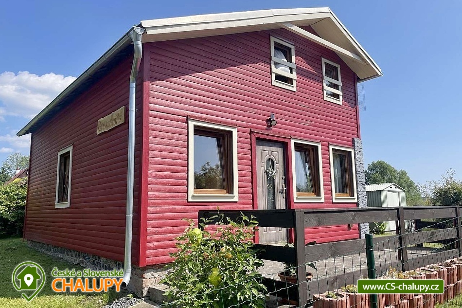 Chata u rybníka se nachází v klidném prostředí v okrajové části města Rumburk v blízkosti krásné přírody NP České Švýcarsko a CHKO Lužické hory, nedaleko hranic s Německem. Milovníky rybaření potěší těsná blízkost dvou rybníků Racek a Tůň zasazených do hezké přírodní krajiny. Útulná chata je postavena v tradičním severském stylu, má dřevěnou fasádu s kamennými prvky a kompletní tepelnou izolaci. Interiér ve všech místnostech kombinuje dřevěné obložení s moderními prvky. Těšit se můžete na venkovní posezení a travnatou zahradu. Chata nabízí ubytování pro 7 osob, z toho 6 pevných lůžek ve dvou ložnicích a 1 přistýlku řešenou rozkládací pohovkou v obývací části. Obě ložnice jsou umístěné v patře chaty. Celkem je k dispozici 1x čtyřlůžková ložnice s dvěma dvoulůžky, postýlkou, odkládací skříní a TV a 1x dvoulůžková ložnice s jedním dvoulůžkem, komodou na osobní věci a postýlkou pro malé dítě. V přízemí lze příjemné chvíle trávit v obývací místnosti s krbovými kamny, sedací soupravou a TV nebo ve společenské místnosti s prostorným jídelním stolem, TV a vstupem na terasu. K zapůjčení jsou společenské hry. Pro děti je k dispozici dětská jídelní židlička a v patře pro větší bezpečnost dětská zábrana na schody. Součástí chaty je plně vybavená kuchyň (sporák, lednice, mikrovlnná trouba, remoska, sklokeramická varná deska, varná konvice, toustovač, kávovar, veškeré nádobí, hrnce a myčka na nádobí). V celém objektu je k dispozici WIFI připojení na internet. Sociální zařízení zahrnuje v přízemí jednu koupelnu se sprchovým koutem, umyvadlem a WC a jedno samostatné WC. Vytápění je řešeno krbovými kamny na dřevo, která vytopí celý prostor chaty. Přitopit si lze také elektrickým radiátorem. Kolem chaty se rozléhá oplocená, travnatá, udržovaná zahrada ideální pro odpočinek, hry dětí a venkovní aktivity. Posedět lze na terase kryté markýzou. K dispozici je gril a ohniště. Děti ocení houpačky, skluzavku a pískoviště s hračkami. K dispozici je úschovna pro kola a další sportovní vybavení. Po domluvě možnost zapůjčení 2 horských kol a venkovních her - badminton, frisbee a petanque. Před chatou je parkovací stání pro tři auta, z toho jedno je kryté. V okolí objektu možnost turistiky, cykloturistiky, koupání, houbaření, in -line bruslení, bruslení na ledě, lyžování, snowboarding a běžkování. V blízkosti jsou tenisové kurty, bowling a jízdarna. Mezi možnosti koupání patří např.: Plavecký bazén Rumburk, Kyjovská přehrada, Přírodní koupaliště Mikulášovice, Aquapark Děčín, Plavecký bazén Varnsdorf atd. V zimním období je k dispozici vlek Rumburk a lyžařská střediska Horní Podluží, Jedlová nebo Mezičky, které nabízejí sjezdové i běžecké tratě. Přímo ve městě Rumburk se nachází Sloup nejsvětější trojice, Loretánská kaple a Kostel sv. Bartoloměje. V okolí k výletům láká Zámek Šluknov, rozhledna a resort Dymník s fotbagolfem a unikátní kamennou stavbou Strom života, Rozhledna Jedlová hora, zřícenina hradu Tolštejn, Hora Luž, Kyjovské údolí, Chřibské vodopády, Pravčická brána, Soutěsky řeky Kamenice nebo za hranicemi Německa - Skalní most Bastei, Stolová hora Lilienstein, Pevnost Königstein či město Žitava. Těšíme se na Vás u nás.