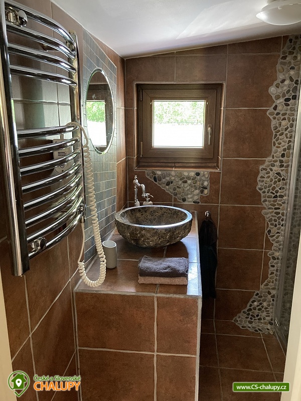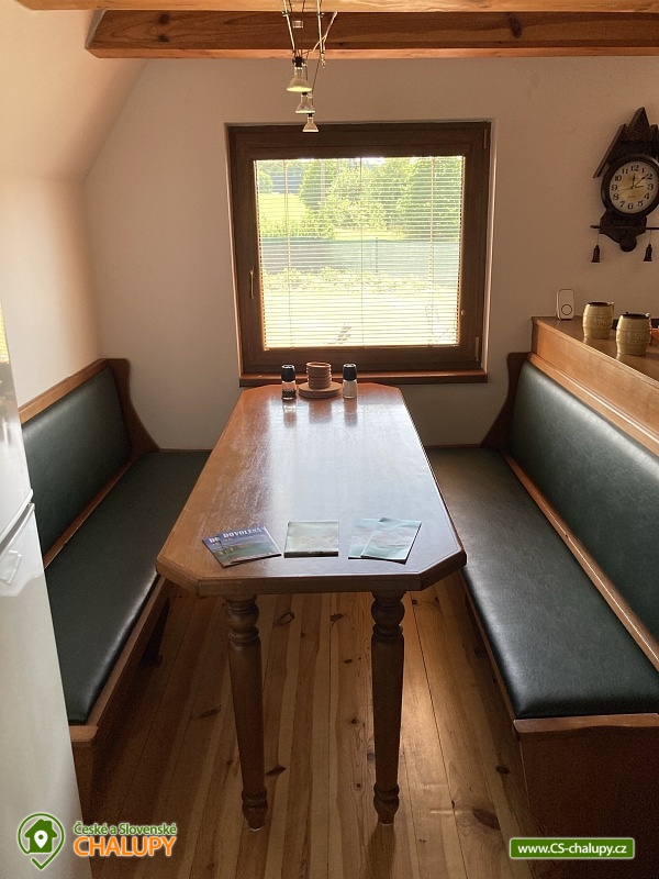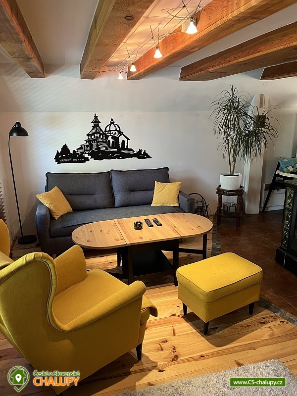 Chata u stezky Valaška nedaleko Pusteven a hory Radhošť - Beskydy. Chata je unikání svou polohou - naprosto klidná lokalita a zároveň skvělá docházková vzdálenost k věhlasnému Valašskému muzeu v přírodě (Skanzen) a dále k turistickým trasám a cyklostezkám - vydejte se na Radhošť či novou stezku Valaška. Chata k pronajmutí poskytuje ubytování pro až 5 osob ve 2 ložnicích. POPIS: 2x pokoj: Pokoj č.1 (manželská postel pro 2 osoby + možnost postýlky pro děti). Pokoj č.2. (2x jednolůžko) + Rozkládací pohovka (až 2 osoby) na každodenní spaní v obývací místnosti. Kuchyň - Lednice, mrazák, pračka, myčka, mikrovlnná trouba, kávovar, indukční deska, digestoř, elektrická trouba, toustovač, varná konvice, dětská židle. Společenská místnost - rozkládací pohovka na každodenní spaní, křeslo ušák, TV a krbová kamna. Sociální zařízení: Sprchový kout, WC, umyvadlo, topení, fén na vlasy, sušák na prádlo. Vytápění: Krbová kamna, elektrické přímotopy. Terasa - slunečník, venkovní posezení, gril na dřevěné uhlí. Zahrada - 2x lehátko, pískoviště pro děti. Pozemek chaty je celý oplocen a zaparkovat svůj vůz můžete na parkovacím stání za elektrickou bránou uvnitř pozemku. V okolí chaty a docházkové vzdálenosti Valašské muzeum v přírodě, napojení na cyklotrasu, zábavní park GIBON, venkovní koupaliště, trampolíny, minigolf, lanové centrum, řeka Bečva, Jurkovičova rozhledna apod. vše do 1km. Možnost přímo z chaty turistikou na Radhošť, Pustevny či nově vybudovanou stezku Valaška. Lanovka na Pustevny z Trojanovic - Ráztoka 12 km. Krytý bazén 3,5 km. Pivní lázně Rožnov pod Radhoštěm 3 km. Těšíme se na Vás u nás.
