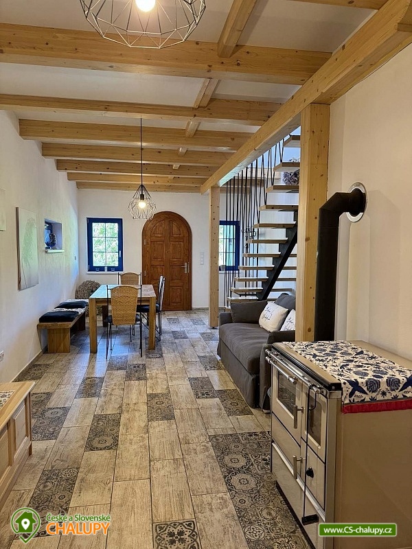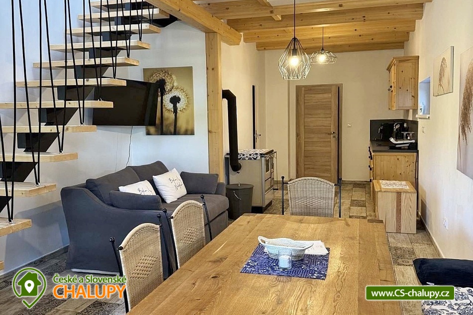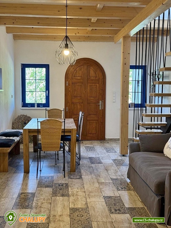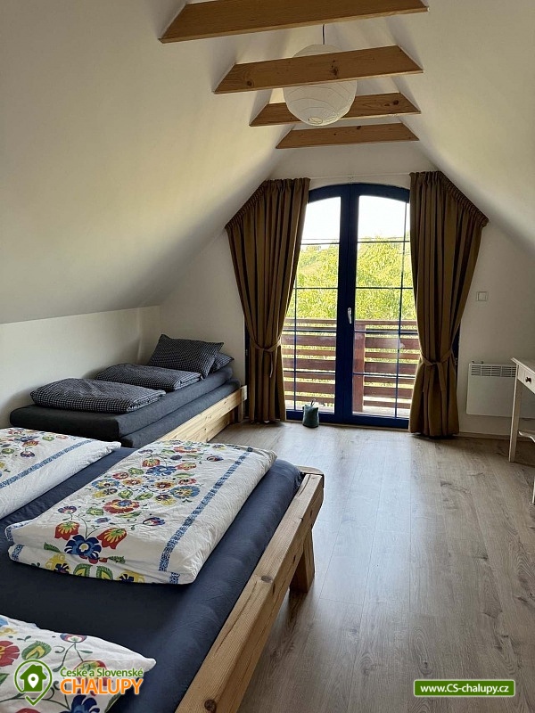 Chata Slovácko s vlastním vinohradem se nachází v malebném prostředí vinných sklípků Pod Dubňanskou horou ve vinařské obci Mutěnice. Blízké okolí je protkané známou vinařskou cyklistickou trasou a nedaleko si lze užívat romantické prostředí Mutěnických rybníků s možností pozorování vodního ptactva. S majiteli chaty lze po domluvě zařídit ochutnávku jejich vlastních vín. Chata nabízí ubytování pro 7 osob, celkem je k dispozici 6 pevných lůžek a 1 přistýlka. V patře se nachází dvě klimatizované ložnice, jedna dvoulůžková (1x manželská postel) a jedna čtyřlůžková (1x dvoulůžko a 1x rozkládací jednolůžko). Dále je k dispozici jedna přistýlka řešená rozkládací pohovkou v obývacím pokoji v přízemí. Součástí obývacího pokoje je krom sedací soupravy také jídelní stůl, TV, společenské hry a plně vybavená kuchyň (lednice, sklokeramická deska, mikrovlnná trouba, rychlovarná konvice a myčka nádobí). V kuchyni a obývacím pokoji zahřejí kamna, která slouží i pro vaření a pečení. Z obývacího pokoje vedou schody do patra s ložnicemi. Sociální zařízení zahrnuje v přízemí jedno samostatné WC s umyvadlem a v patře jednu koupelnu se sprchovým koutem, umyvadlem a WC. K dispozici jsou ručníky, fén, pračka se sušičkou a robotický vysavač. Vytápění je řešeno krbovými kamny na dřevo, podlahovým topením a v ložnicích elektrickým topením. V celém objektu je k dispozici WIFI připojení na internet. Venku lze posedět na slunečné terase výhledem na vinohrad nebo na balkóně. K dispozici je venkovní sprcha a gril. Parkovat lze přímo u objektu. K dispozici jsou 3 parkovací místa přímo před chatou. V okolí objektu možnost turistiky, cykloturistiky, koupání, houbaření, rybaření a lyžování. V blízkém areálu pod Bůdama je fotbalové hřiště, tenisové kurty, volejbal, basketbal. V nedalekých Dubňanech je v letních měsících otevřené koupaliště. Mezi další možnosti koupání patří např.: Bazén Ratíškovice, Rybník Lužice, Bazén Hodonín, Koupaliště Hodonín, Rybník Velký Bílovec, Koupaliště Kyjov, Aquapark Uhřice atd. K dispozici jsou blízká lyžařská střediska: Němčičky, Osvětimany a Stupava. K výletům v okolí láká Muzeum vinařství Mutěnice, Slovácká chalupa v Dolních Bojanovicích, Zámek Čejkovice, starý Větrný mlýn Starý Poddvorov či rodný Domeček T. G. Masaryka, CHKO Pálava, Velké Pavlovice, Hustopeče, vodní nádrž Nové Mlýny nebo Zámek Hodonín. Těšíme se na Vás u nás.
