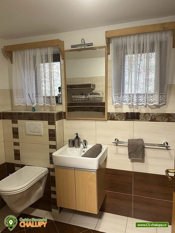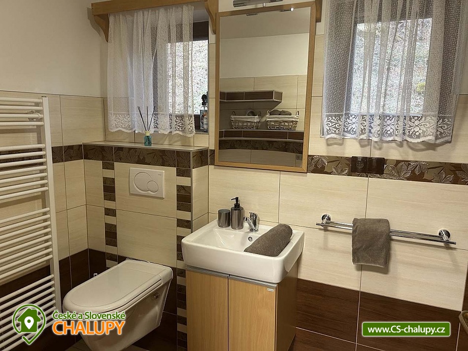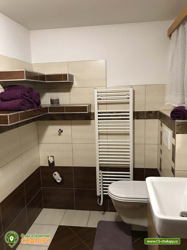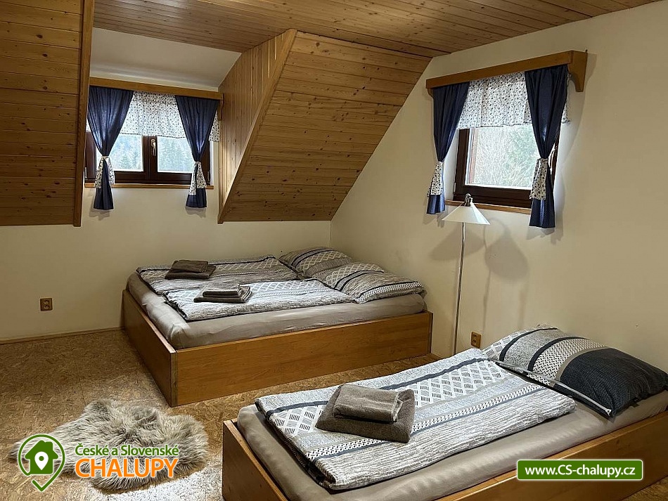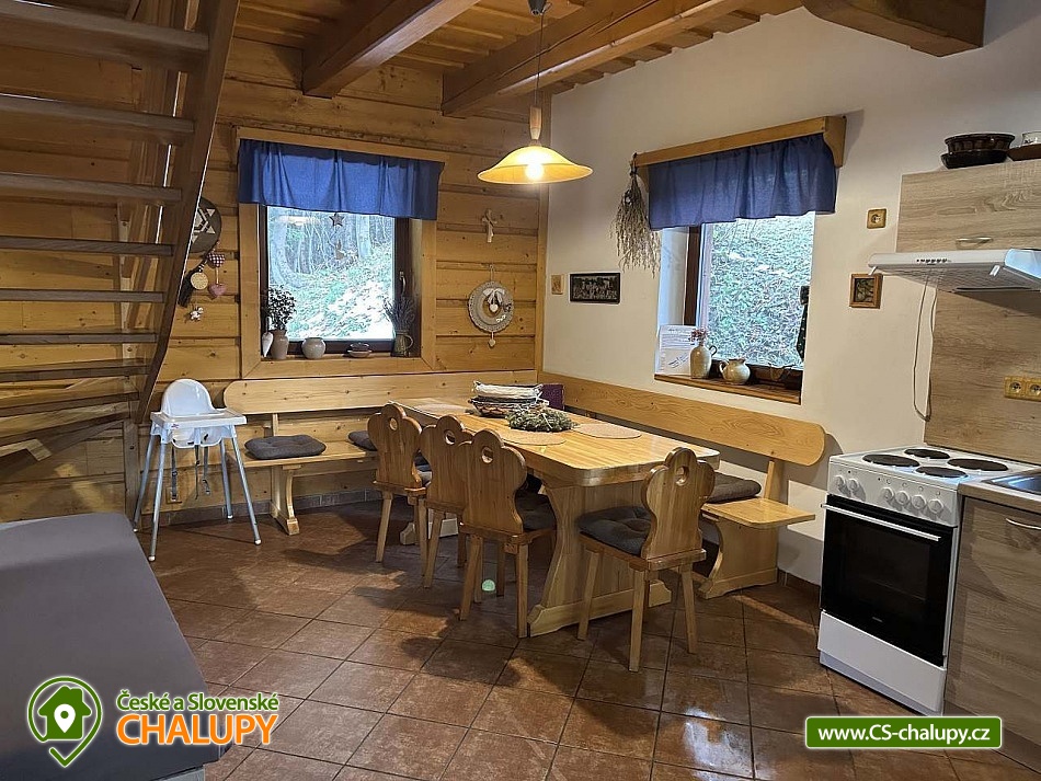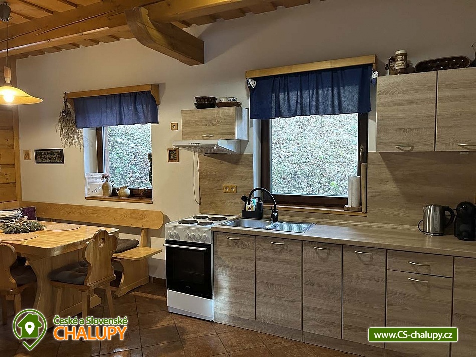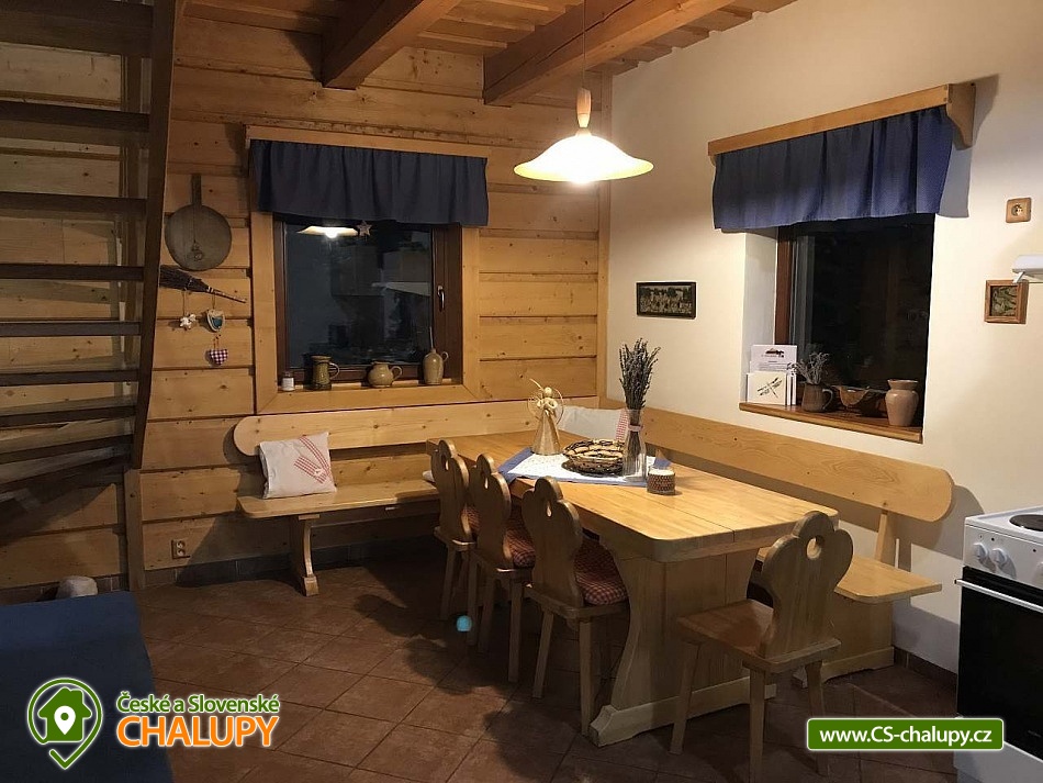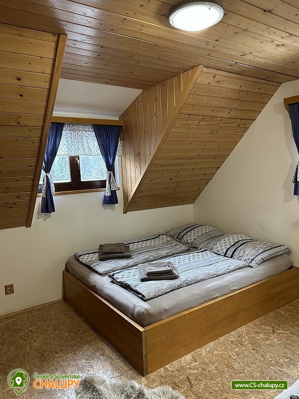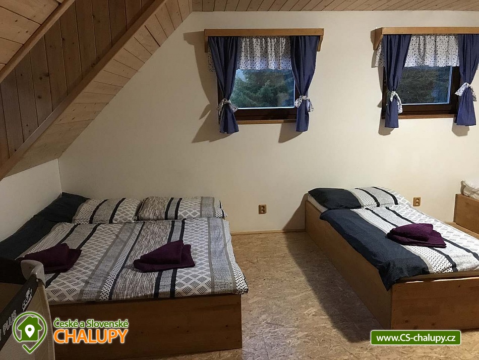 Chata na polosamotě uprostřed krásné přírody je obklopena Javorníky a CHKO Beskydy. Místo je vzdálené 35 km od Vsetína a 25 km od Rožnova pod Radhoštěm. Okolí vás nadchne svou ryzostí a přirozeností. Pod chatou vede cyklostezka Bečva. V okolí můžete navštívit wellness centrum, masáže, sauny, bazény, golfové hřiště a dětské parky. Chalupa k pronájmu poskytuje ubytování pro až 10 osob ve 2 ložnicích. V prvním patře se nacházejí 2 pokoje (větší a menší). Ve větším pokoji je 6 lůžek - dvě manželské postele a dvě samostatná lůžka. V menším pokoji jsou 4 lůžka - dvě manželské postele. Při příjezdu budou pro vás oblečeny a nachystány. Na uložení věcí máme skříň s policemi. Součástí vybavené kuchyně je elektrická trouba, mikrovlnná trouba, lednice s mrazákem, varná konvice, toustovač, kávovar na kapsle Dolce gusto. V ceně ubytování je povlečení, ručníky, toaletní papír. Samozřejmostí jsou utěrky, jar a houbičky. Také máme dětskou jídelní židli, dětskou cestovní postýlku, nočník, sušák na prádlo, televizi. V chalupě se přezouváme, proto doporučujeme vlastní přezůvky. Sociální zařízení: V objektu se nachází 1 koupelna se záchodem a sprchovým koutem. Vytápí se dřevem v krbových kamnech. Topí si každý sám krbovými kamny. V letních měsících je venku houpačka a posezení. V zimních měsících je při vašem příjezdu již zatopeno a teplo. Dostupnost autem je po příjezdové cestě do kopce až k objektu. Parkování před chalupou. V zimě, pokud je hodně sněhu doporučujeme k dojezdu řetězy na auto nebo pohon 4x4. V okolí: Cykloturistika - v blízkosti se nachází cyklostezka Bečva. Koupání v bazénech, masáže, sauny – wellness Horal. Dále Vodní svět Velké Karlovice, Koupaliště venkovní - Velké Karlovice, Koupání v přírodním jezeře Balaton. Nejbližší lyžařské vleky: Razula, Bílá, Horal, Kyčerka, U Bambuchů, Machuzky, Bzové, Soláň, Karolinka, Pod Soláněm, Kasárna, Kohútka, Pustevny atd. Běžecké okruhy různých obtížností. Dále Pustevny (stezka Valašska, socha Radegast a Libušín), skanzen v Rožnově pod Radhoštěm, Radhošť, ZOO Lešná Zlín. Těšíme se na Vás u nás.