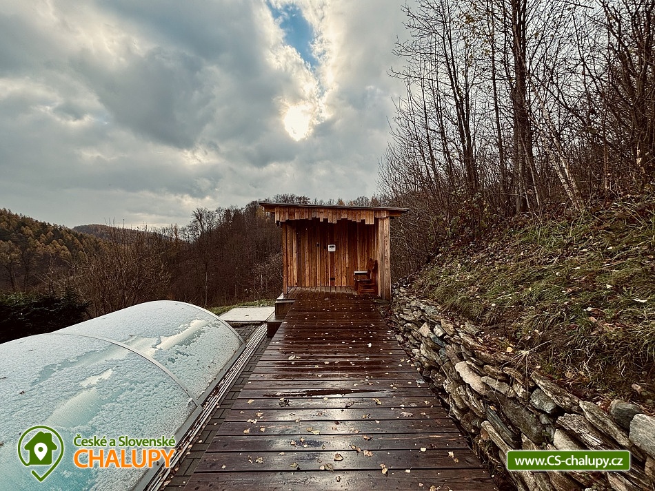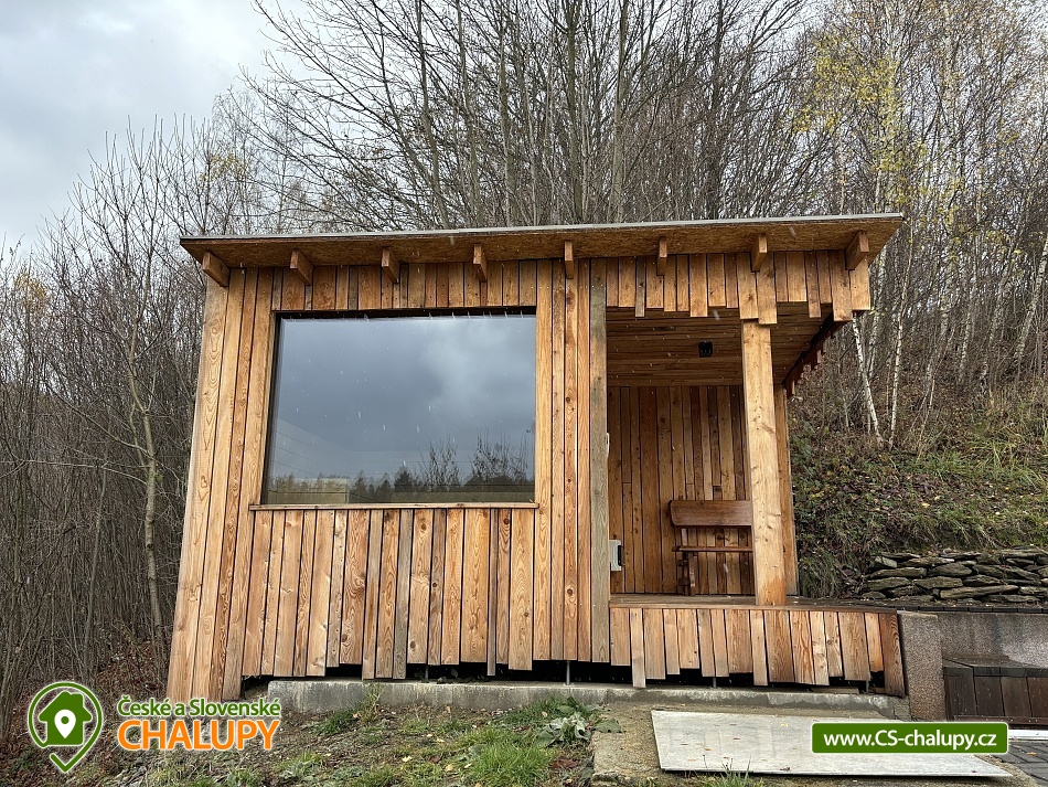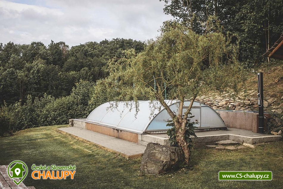 „Wellness chata - venkovní SAUNA, krytý BAZÉN, koupací SUD s vířivkou“