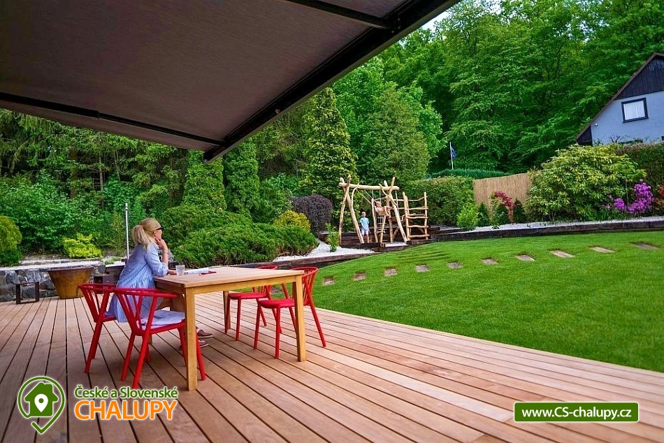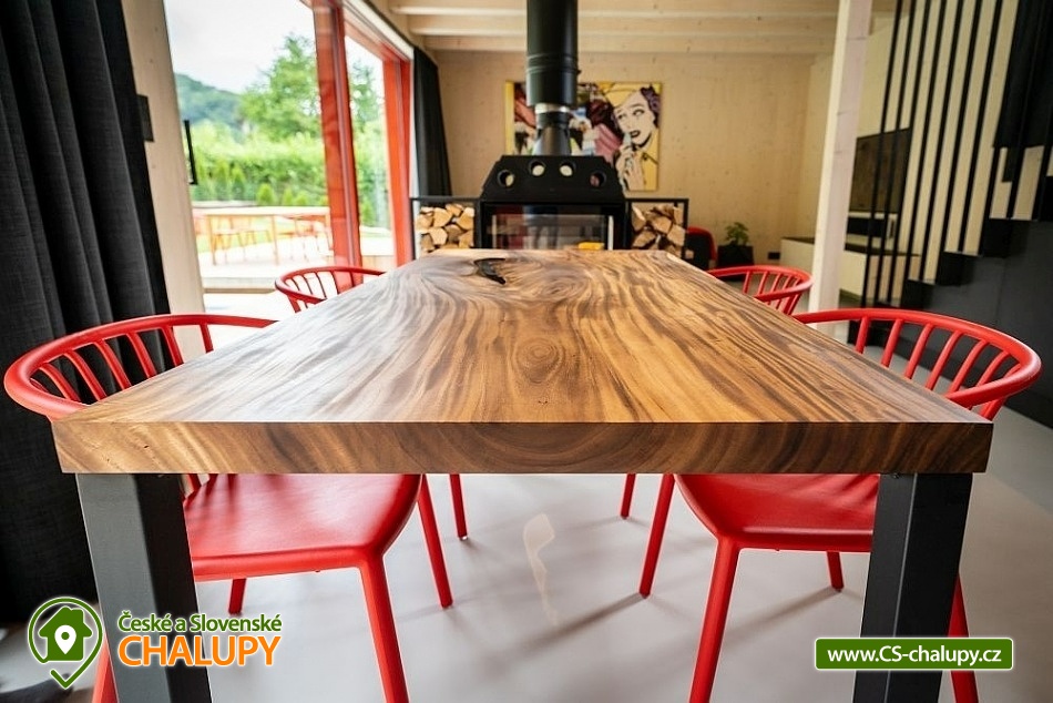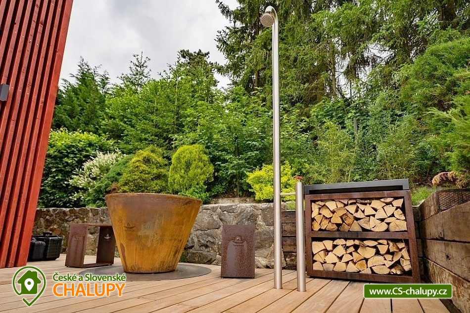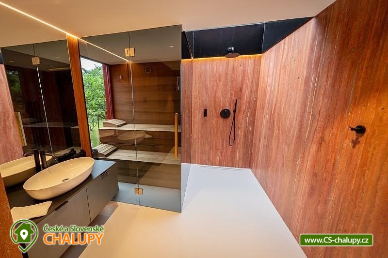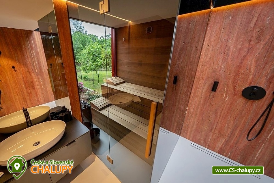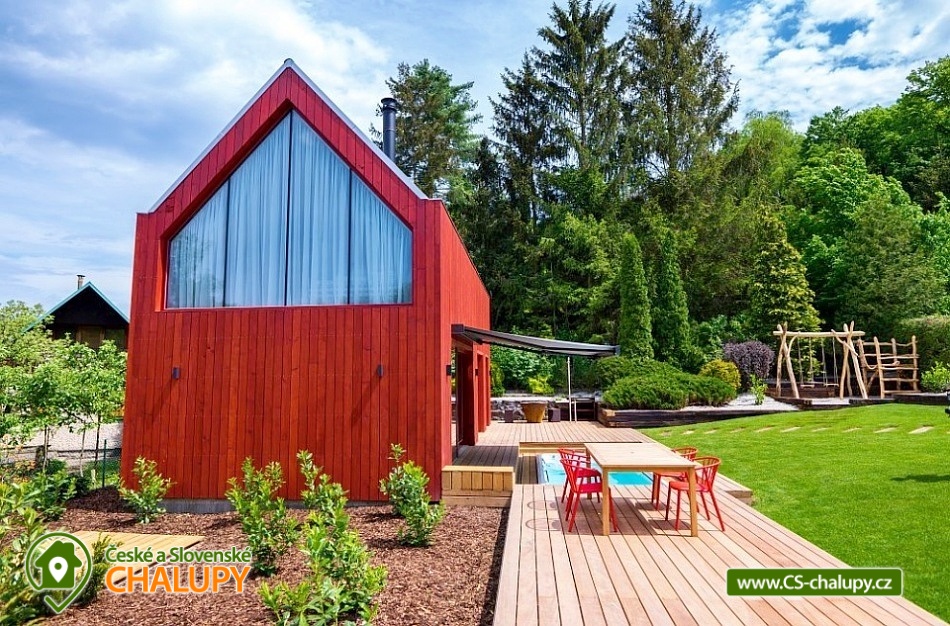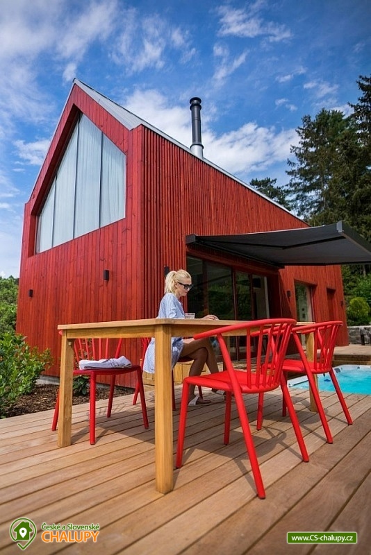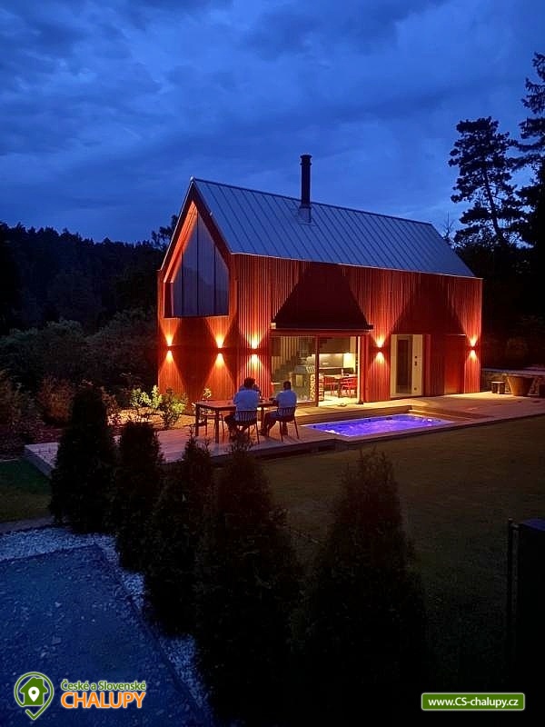 Zážitková Chata s prosklenou saunou, vířivkou a venkovním bazénem s protiproudem se nachází u lesa v obci Pyskočely nedaleko Sázavy. Pro svou lokalitu nabízí spoustu možností pro aktivně strávený čas nebo jen odpočinek. Hned několik sportovních aktivit, jako jsou tenis a badminton na antukovém hřišti, najdete hned vedle chaty. V terénu lákají cyklotoulky v místních Posázavských lesích. Luxusně vybavená Chata poskytuje ubytování pro 4 osoby ve dvou dvoulůžkových ložnicích. Obě prostorné ložnice se nachází v horním patře chaty jsou prosvětlené ateliérovými okny, díky kterým celý prostor působí velmi vzdušně a příjemně. Okouzlí vás designový nábytek v čele s luxusními postelemi Hästens, které vám dodají pocit, že jste opravdu v nebi. V přízemí chaty vás uchvátí obrovská oboustranně prosklená kamna ve společenské místnosti, kde je dále k dispozici stůl z jamajského ořechu, sedací souprava, elegantní Frame TV či ozvučení Bang Olufsen. Součástí chaty je také stylová antracitová plně vybavená kuchyň s kávovarem Nespresso. Příjemné chvíle budete zažívat v nádherné koupelně obložené červeným travertinem a se sprchovým koutem se stropním výhledem směrem do oblak. Na koupelnu navazuje prosklená sauna, obložená voňavým cedrovým dřevem, poskytující krásný výhled do přírody. K dispozici je také jedno samostatné WC. Všude v chatě vás bude hýčkat podlahové topení a klimatizace, kterou oceníte zejména v horkých dnech. V celém objektu je WIFI připojení na internet a k dispozici je Smart Tv a Netflix. Na zahradě je pro rodinu s dětmi k dispozici dětské hřiště a užívat si můžete plavání v luxusní SwimSpa nebo -li vyhřívaným bazénu s teplotou vody min. 30 stupňů a s protiproudem, který lze využít i jako vířivku. Hned po plavání ho můžete ukrýt pod jezdící terasu, která je svou velikostí tak trochu tanečním parketem. Osvěžit se můžete také pod venkovní nerezovou sprchou. K dispozici je gril a ohniště. Parkovat lze přímo u objektu. V okolí chaty možnost turistiky, cykloturistiky, koupání, rybaření a houbaření. V dostupné vzdálenosti cca 500 m se nachází Funpark Pyzúú, který je skvělým místem pro trávení volného času s dětmi. V tomto parku naleznete malé zoo, nafukovací trampolíny, dětské hřiště, k relaxaci můžete využít krásného posezení na příjemné terase nad řekou Sázavou. V místním bistru se můžete osvěžit nealkoholickými, ale i alkoholickými nápoji a také si můžete pochutnat na grilovaném hovězím burgeru, jehož maso pochází z místního skotu. Mezi možnosti koupání v okolí patří např.: rybník Podluží I, Jevanský rybník, Plovárna Senohraby, Štičí rybník, Vyžlovský rybník, koupaliště Uhlířské Janovice, bazén Benešov, koupaliště Benešov atd. K výletům lákají blízká města Stříbrná Skalice a Sázava, dále astronomická observatoř Ondřejov, Ladovy Hrusice (muzeum), Sázavský klášter, Skanzen v Kouřimi, přírodní rezervace Voděradské bučiny nebo Farmapark Soběhrdy. Těšíme se na Vás u nás.