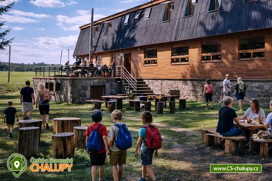 Chata CHKO Železné hory, poloha nedaleko přehrady Seč na Vysočině. Chata je celoročně využívána k rekreačním pobytům, ale i jako školící a vzdělávací aktivity - školy v přírodě, letní tábory, jazykové a tematické kurzy, školení, teambuildingy apod. Chata je také vhodná pro uspořádání rodinné dovolené s dětmi, ubytování turistů a cykloturistů nebo pro soukromé aktivity, jako jsou svatby, rauty, oslavy, přátelská setkání aj. Celková kapacita chaty je až 52 lůžek v 11 pokojích: 1x dvou až čtyřlůžkový pokoj v přízemí chaty vedle jídelny. K dispozici je pohodlná sklápěcí manželská postel + možnost doplnění dvěma samostatnými lůžky. 2x čtyřlůžkový pokoj – menší útulné pokoje v 1. patře chaty. V každém pokoji je dvoupatrová postel a dvě samostatná lůžka, která lze složit v manželskou postel. 7x pětilůžkový pokoj rozdělený na přízemní (3 lůžka) a podkrovní část (2 lůžka). 1x sedmilůžkový pokoj – největší pokoj v patře chaty. K dispozici jsou dvě dvoupatrové postele v přízemní části + samostatné lůžko a dvě samostatná lůžka v podkroví. Ubytování v souladu s přírodou a kvalitní turistické informace. Stravování a občerstvení: Pobyt na chatě lze absolvovat se snídaní, polopenzí nebo plnou penzí. Při školních pobytech je zajištěno stravování 5x denně a pitný režim. Skladba a rozsah jídelníčku se řídí zvyklostmi, požadavky a potřebami jednotlivých skupin klientů. Součástí chaty je i bar s širokou nabídkou nealkoholických a alkoholických nápojů a drobného občerstvení. Na požádání je možné zajistit ochutnávky vín, čepování piva, opékání prasete či grilování. Společenské místnosti: Chata má několik společenských místností, které se dají variabilně využít jak pro výuku, sport či zábavu, tak pro příležitostné spaní. Pro školení lze přímo na středisku zapůjčit dataprojektor, zpětný projektor, promítací plátno, flipcharty aj. Na chatě je zdarma k dispozici internet (ADSL linka + Wi-Fi). Společenská místnost č. 1 (80 m2 , parkety) – multifunkční prostor vhodný pro pracovní jednání, přednášky, sportovní aktivity a nejrůznější společenské akce. Místnost je propojena zasunovacími dveřmi s jídelnou a společenskou místností č. 3. Je zde také k dispozici bar s kvalitní zvukovou aparaturou a 20 relaxačních matrací. Společenská místnost č. 2 (80 m2 , koberec) – podkrovní růžový salónek sloužící jako přednášková místnost s možností využití i jako velká ložnice pro ubytování až 20 osob. Společenská místnost č. 3 (100 m2 ) – jídelna sloužící zároveň jako přednášková místnost. Jsou zde k dispozici magnetické tabule na stěnách vhodné pro výuku, lednice, mikrovlnná trouba a rychlovarná konvice. Jídelna je propojena posuvnými dveřmi se společenskou místností č. 1. Společenská místnost č. 4 (25 m2 ) – prostor vybavený stoly, židlemi, skříňkami, nástěnkami a dalšími kancelářskými potřebami. Na vyžádání je také k dispozici kopírka či skener. Místnost je vhodná především pro školy v přírodě, kurzy či jiné akce. Lze ji rovněž využít i jako obývací pokoj s pohodlnou sklápěcí manželskou postelí s možností rozšíření o další dvě lůžka. Velká zahrada s posezením: U chaty je hostům k dispozici velká zahrada s venkovním posezením, ohništěm a grilem. Posezení se také nabízí na terase, na níž je vstup přímo z jídelny či společenské místnosti č. 1. Na zahradu navazuje rozlehlá louka s lesem. Sportovní možnosti: Součástí střediska je cvičná horolezecká stěna umístěná na zadní straně chaty s možností zapůjčení veškerého horolezeckého vybavení a zajištění certifikovaného instruktora. Pro hosty je dále k dispozici velká trampolína s ochrannou sítí, vybavení na orientační běh, dvě hřiště pro tenis, volejbal, nohejbal, badminton, fotbal, pétanque, softbal a frisbee. Také si zde lze zahrát stolní tenis, stolní fotbal, mini kulečník, elektronické šipky, ruletu aj. V okolí chaty se nacházejí terény vhodné pro sjezdové a běžecké lyžování. Další ubytovací možnosti v areálu: 2x mobilní domek, tee-pee stan a chatičky, celkově je naše ubytovací kapacita přes 100 lůžek: kapacita ubytování hlavní budova – od základní kapacity 50 lůžek v 10ti pokojích až po dalších 10-20 lůžek v Podkrovní společenské místnosti a Teamovně. Spolu 60-70 lůžek. Venkovní chatičky (duben-říjen) 20 - 24 lůžek. Mobilní domky 10-14 lůžek. Tee-pee stan (až 10 lůžek). Radí Vám zpracujeme individuální nabídku ubytování.