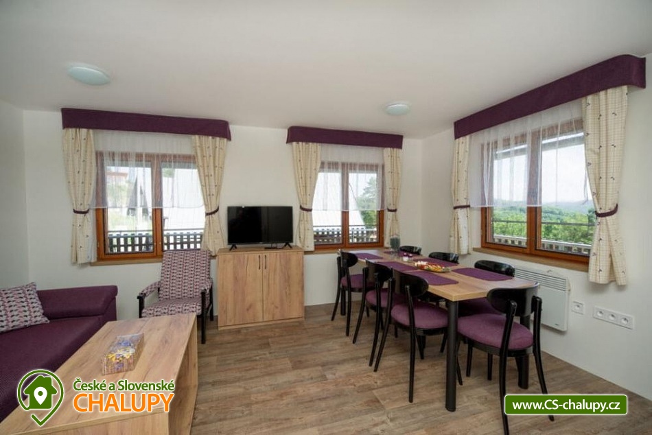 Chaty Hostýnské vrchy nedaleko Slušovické přehrady (3x chata = 8 + 8 + 6 lůžek) - Ubytování v srdci Valašska. Místo obklopené lesy, daleko od ruchu města, vytváří ideální podmínky pro relaxaci, sport i rodinná dobrodružství. Čekají na Vás útulné dřevěné chaty, wellness se saunou, koupací kádí a spousta originálních atrakcí pro děti i dospělé. Srdcem areálu jsou 3 dřevěné chaty = Chata Rokytenka pro 8 osob + Chata Bečva pro 8 osob + Chata Morava pro 6 osob. POPIS: Chata Rokytenka pro 8 osob - 3 ložnice (manželská postel + 2 jednolůžkové postele + 4 jednolůžkové postele). Chata Bečva pro 8 osob - 3 ložnice (manželská postel + 2 jednolůžkové postele + 4 jednolůžkové postele). Chata Morava pro 6 osob - 2 ložnice (obě s manželskými postelemi). Součástí každé chaty je obývací část s pohodlnou pohovkou a televizí. Kuchyně jsou vybaveny moderní indukční varnou deskou, mikrovlnnou troubou, rychlovarnou konvicí, lednicí, mrazákem a nechybí ani praktické jídelní sezení. O klidný spánek se postarají útulné ložnice s pohodlnými lůžky. Na vyžádání Vám rádi připravíme také dětskou postýlku. V chatách je koupelna se sprchovým koutem a umyvadlem doplněna o samostatnou toaletu. Součástí všech koupelen jsou ručníky, fén a základní toaletní výbava. V objektu je zajištěno i WiFi připojení. Areál - dětský svět se skluzavkou, houpačkami, pískovištěm, prolézačkami, hračkami a bezpečným prostorem na hraní. Relax ve wellness sauně nebo v koupací kádi. Na slunečních terasách postele s nebesy a stínící plachty. Oblíbenou součástí areálu jsou také fotopointy - obří židle, dřevěné lavičky, totemový rozcestník či panoramatické terasy, které nabízejí výjimečné výhledy na Hostýnské a Vizovické vrchy. Večerní chvíle Vám zpříjemní terasa s venkovním posezením, gril, ohniště i vnější krb, u kterých si vychutnáte rodinné posezení či společné vaření. K dispozici je také úschovna na kola a parkování pro 8 aut ve vzdálenosti do 20 metrů od areálu. Okolí přeje aktivnímu odpočinku během celého roku. V létě oceníte blízkost Vodní nádrže Všemina, přírodních památek Králky, Bzová, Bezedník či Vela, které jsou skvělé pro nenáročné i delší procházky. Celoročně doporučujeme návštěvu Hradu Lukov a věže Svatojánka. V zimě si užijete výborné podmínky v lyžařských areálech Trnava, Troják nebo Tesák, které jsou dostupné do několika kilometrů. Těšíme se na Vás u nás.