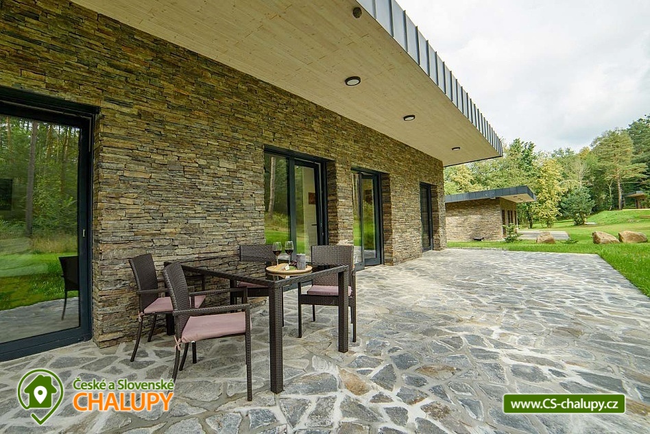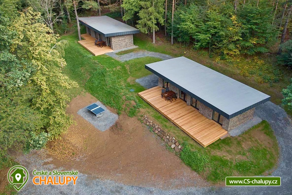 „Chaty u lesa Slapská přehrada (4 x 5 osob) - chaty na samotě“