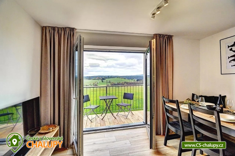 „Apartmán Podkova v Kovářově u Frymburku s výhledem na Lipno.“