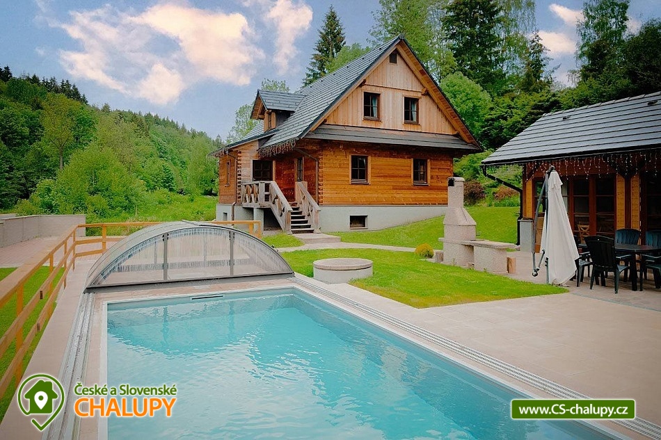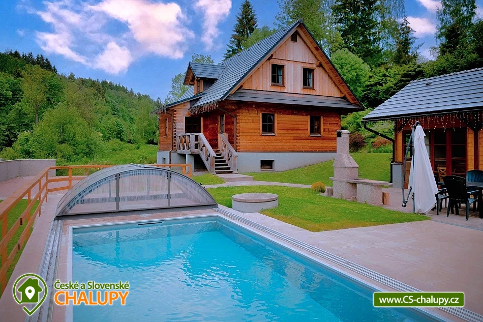 Dvě chalupy s bazénem v lokalitě Králický Sněžník - poloha nedaleko Visutého mostu pro pěší "Stezka v oblacích" (Sky Bridge 721) a Dětských zážitkových parků Dolní Morava. Chalupy jsou vhodné zejména pro pobyt rodin s dětmi, které ocení příjemné prostředí a komfortní ubytování s kapacitou až 26 osob (13 + 13 osob). POPIS: Roubenka I disponuje 6 ložnicemi - v jedné je samostatné lůžko, ve třech jsou manželské postele a ve zbývajících dvou je manželská postel a samostatné lůžko. Roubenka II má 4 ložnice - v jedné je manželská postel, ve druhé manželská postel a samostatné lůžko, zbylé dvě jsou se dvěma manželskými postelemi. Kuchyně je vybaveny veškerým inventářem, ledničkou, myčkou, sporákem se sklokeramickou varnou deskou, varnou konvicí, toustovačem, sendvičovačem a mikrovlnou troubou. Apartmány jsou vybaveny LCD televizory s příjmem satelitní televize. Společenská místnost s dubovým stolem pro 12 osob, sedací soupravu s konferenčním stolkem, velký LCD televizor s příjmem satelitních programů. V suterénu je umístěna vyhřívaná lyžárna pro odložení bot a lyží. V garáži k dispozici stůl na ping - pong a elektronický terč na šipky. Ve všech prostorách chalup je k dispozici bezplatné připojení k internetu formou WiFi. Povlečení, ručníky a osušky jsou zahrnuty v ceně pronájmu. Sociální zařízení: Roubenka 1 (3x koupelna, 4x WC) a Roubenka 2 (3x koupelna, 4x WC). Vytápění centrální - Tepelné čerpadlo a tuhé palivo. Okolí: s dětmi navštivte dětský ráj označovaný jako Dětský park Amálka, dále bobovou dráhu Dolní Morava nebo Mamutí horskou dráhu. Tlak v krvi zvyšuje také návštěva Adrenalin parku. Krásné výhledy nabízí také Stezka v oblacích Dolní Morava. V létě je oblíbená cyklistika, cykloturistika, sběr lesních plodů i výlet k mnoha přírodním atrakcím. Můžete se vydat do Patzeltovy jeskyně nebo Vodopádu na Hlubokém potoku. V zimě je jen pár metrů od nás vzdálen Ski areál Dolní Morava, na jeho svazích můžete lyžovat během celého dne. Těšíme se na Vás u nás.