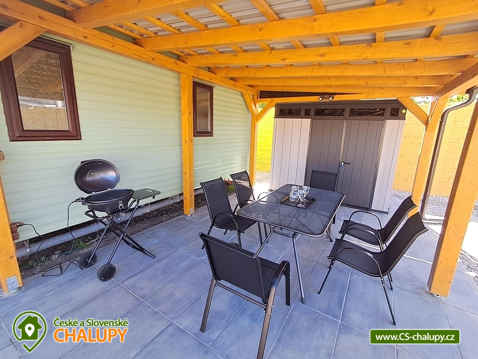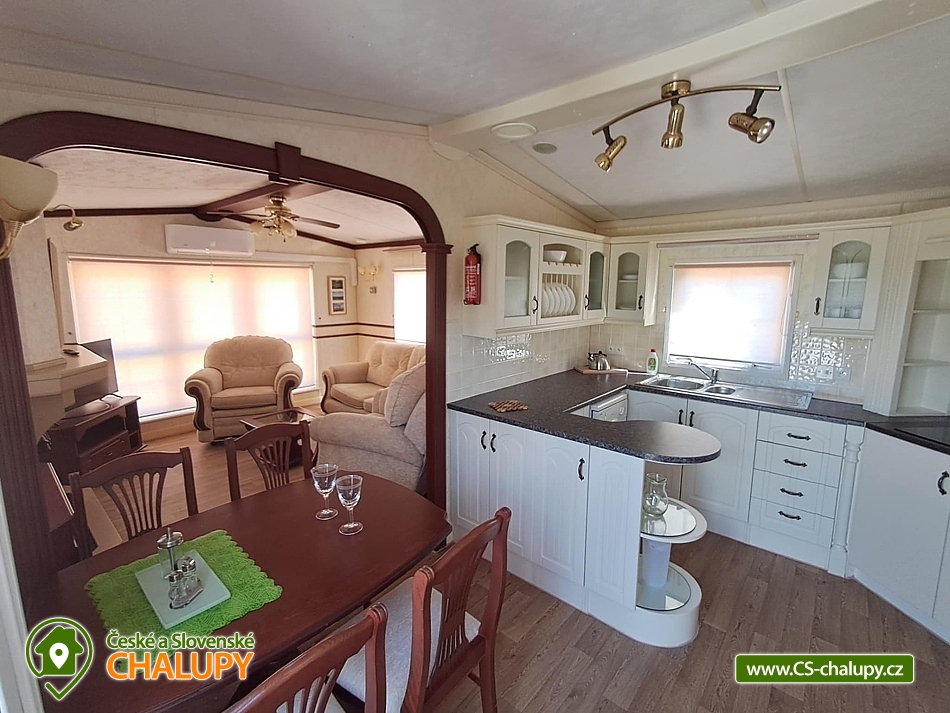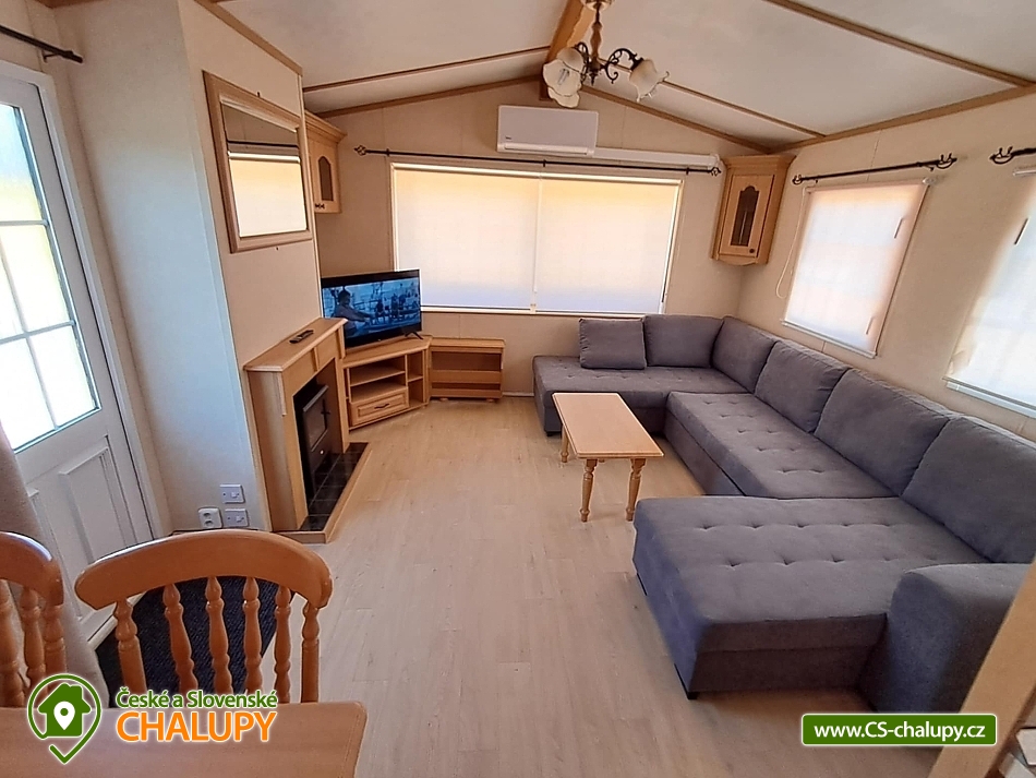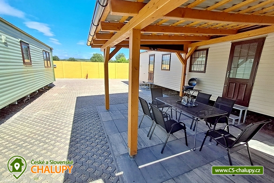 Dvě chaty u Novomlýnské vodní nádrže v CHKO Pálava. Ubytování nabízíme ve 2 mobilních domcích, které lze pronajmout samostatně i dohromady pro 8-12 osob. Každý mobilní dům nabízí ubytování až pro max. 6 osob (1 manželská postel, 2 jednolůžkové postele a v obývací části rozkládací pohovka, kde se pohodlně vyspí 2 osoby). V každém mobilním domu je k dispozici obývací část s krbovými kamny, TV, rozkládací pohovkou, křesly, jídelním stolem s židlemi a plně vybavená kuchyň včetně nádobí (lednice, mrazák, varná konvice, mikrovlnná trouba a varná deska). Sociální zařízení zahrnuje koupelnu s umyvadlem, sprchovým koutem a WC + nově je možnost venkovního sprchování pro každý mobilní dům zvlášť. K dispozici jsou ručníky, ložní prádlo a toaletní potřeby. Prostředí uvnitř je možno temperovat klimatizací, je možno jak k chlazení, tak k vytápění. Ohřev vody je pomocí elektrického bojleru. Parkování je možné přímo u objektu. U každého objektu je k dispozici zastřešená terasa s posezením, grilem a zahradní domek na úschovu kol a jiného vybavení. Nabízíme také možnost pronájmu kempingového stání pro karavany, obytné vozy, stany. Kapacita pozemku jsou dvě místa. V okolí je spoustu možností aktivního vyžití. Zdejší krajina nabízí bohatou síť cyklostezek, které Vás zavedou na všechny krásy v okolí. Tipy na výlety: Oblast malebných vinic dobrého vína, rozhledna Maják, vyhlídkové lety balónem, zámek Lednice, Janův hrad, archeopark Pavlov, zřícenina Dívčí hrady, Apollonův chrám s vyhlídkou, Děvín, naučná stezka Mezi vinicemi a spoustu dalších. Možnosti koupání: koupaliště Hustopeče, rybník Šutrák, Lom Janičův vrch, aqualand Moravia a vodní nádrž Nové Mlýny - pláž Pasohlávky. Těšíme se na Vás u nás.