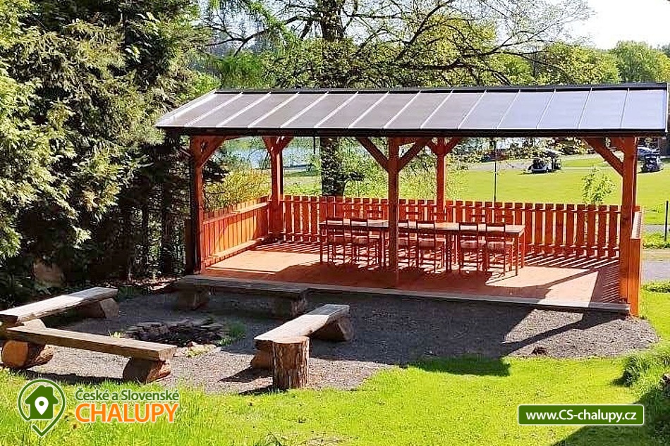 Dvojchata se nachází u pláže rybníka Olšovec, v krásné přírodě Moravského krasu. Leží v obci Jedovnice a také nedaleko měst Vyškov, Blansko a Brno. Jedná se o dvojchatu (dvě samostatné chaty propojené společenskou místností s přilehlou pergolou). Dvojchata je vhodná pro společnou rekreaci rodin, nebo partu přátel a pro různé společenské akce - oslavy, školení, atd. Má výhled na hladinu rybníku Olšovec. Vstup do vody je pozvolný, upravený navezeným pískem, ideální pro děti. Celková ubytovací kapacita je 22 osob v 6 ložnicích (2x dvoulůžková, 2x čtyřlůžková a 2x pětilůžková). Chaty jsou propojené společenskou místností - společenská místnost s jídelními stoly, krbovými kamny, televizí s USB a HDMI. Jedna kuchyň má okénko s barovým pultem a je plně vybavená pro konzumaci alkoholických a nealkoholických nápojů. Pro společenské akce možnost zajištění profi výčepního zařízení. Druhá kuchyň je zařízená na vaření a podávání jídla - varná deska s multifunkční troubou, 2x varná konvice, topinkovač, 3x lednice s mrazákem, 2x mikrovlnná trouba. Sociální zařízení zahrnuje 2 koupelny s umyvadly, sprchovými kouty a WC. Dvojchata je napojená na obecní vodovod a teplá voda je samozřejmostí. K dispozici tekuté mýdlo, utěrky na ruce, toaletní papír, 2x přenosný sušák na prádlo a úklidové prostředky. V každé ložnici jsou k dispozici elektrické přímotopy. Společenská místnost je vytápěna krbovými kamny a dřevo na topení je u chaty. Koupelnu lze vytápět infrazářičem. K dispozici Wi-Fi připojení. Parkování před objektem, snadno dostupné i v zimě. K chatám náleží zastřešená pergola s posezením a k dispozici jsou dva přenosné grily na dřevěné uhlí. V okolí je možnost turistiky, cykloturistiky, koupání, houbaření. V blízkosti také minigolf a pumptrack. Možnosti koupání: rybník Olšovec, koupaliště Křtiny, koupaliště Palava, aquapark Blansko. Tipy na výlety: větrný mlýn v Rudici, jeskyně Balcarka, Macocha, punkevní jeskyně a spoustu dalších jeskyní, zřícenina hradu Blansek, muzeum Blanenska, zámek Rájec nad Vltavou. Těšíme se na Vás u nás.