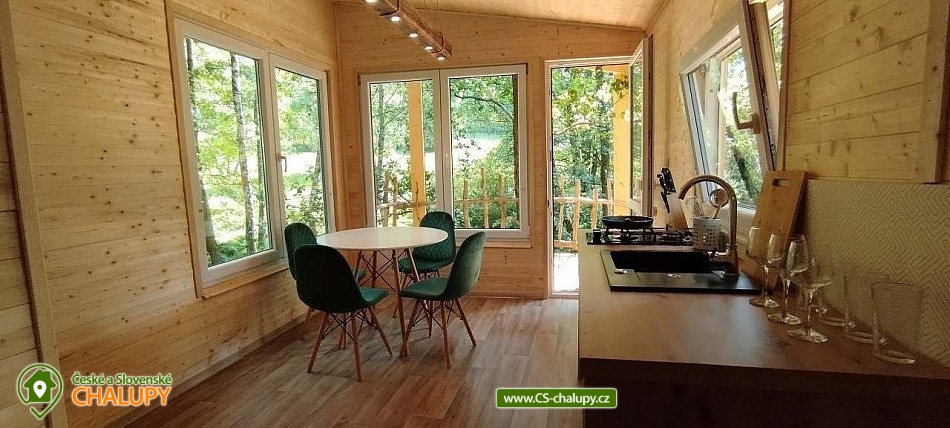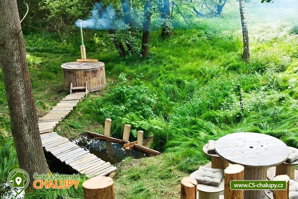 Glamping a koupací sud na samotě - Treehouse České Švýcarsko. Glampingová chata je umístěna v naprostém soukromí na kraji lesa a horského potůčku u obce Mikulášovice. Chata je plně vybavena i pro delší pobyt, k dispozici je koupelna se splachovacím WC, sprchovým koutem a dostatkem horké vody. Kuchyň je plně vybavená a nechybí zde lednička, sporák a veškeré nádobí. V chatě je plynové topení a tak i v chladných dnech je zde útulně. Poloha je ideální k objevování Českosaského Švýcarska, ale i okolní příroda vás nadchne a stojí za prozkoumání. Během pobytu na tomto jedinečném místě tě obklopí zvuky přírody, šumějící potok, zpěv ptáků a pozorování lesní zvěře. Zažijte relax v horkém sudu a načerpejte energii pro objevování okolí. Naprosté soukromí s krásným výhledem. Ubytování je vhodné pro 3 osoby, jedno lůžko je ve vyvýšeném prostoru. V okolí: V Mikulášovicích je přírodní koupaliště a nedaleko nejsevernější rozhledna Čech - Tanečnice s výhledem na České i Saské Švýcarsko. Do 20 km v okolí lze navštívit: 5 rozhleden, skalní hrady, klášter s loretou, podzemní štolu, 2 naučné stezky (Köglerova stezka), park pravěku s dinosaury z betonu, lodičkový převoz mezi skalami, vodopád, daňčí oboru, aquapark Monte mare, projít až 32 km mezi skalami, geologickou mapu, bylinkové vitální lázně, muzeum železničních modelů, 6 skalních hradů a skalní pevnost. Místo obklopuje České Švýcarsko, Lužické hory a Labské pískovce. Těšíme se na Vás u nás.