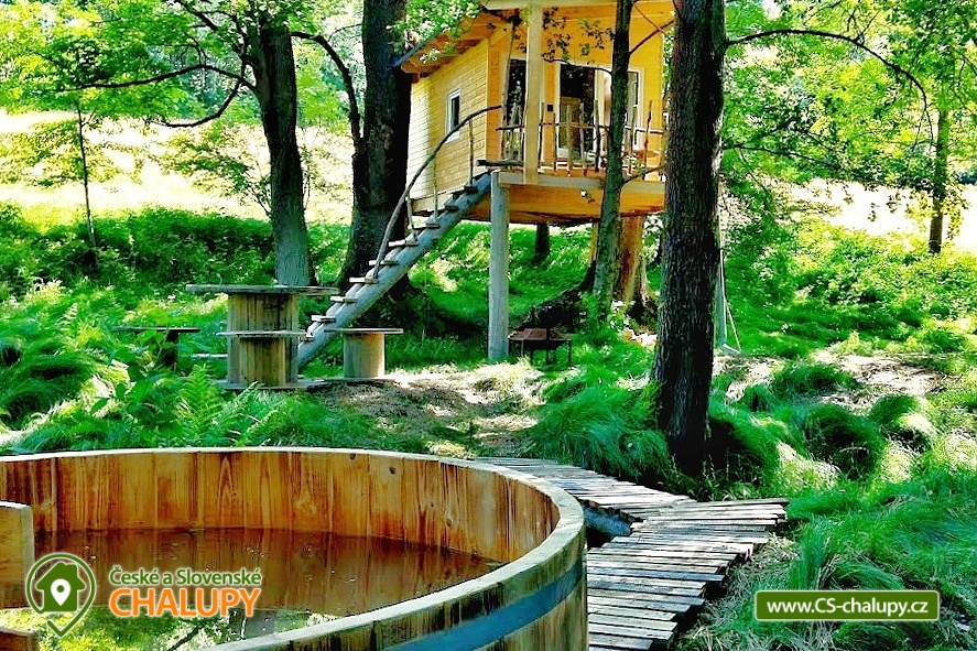 „Glamping a koupací sud na samotě - Treehouse České Švýcarsko“
