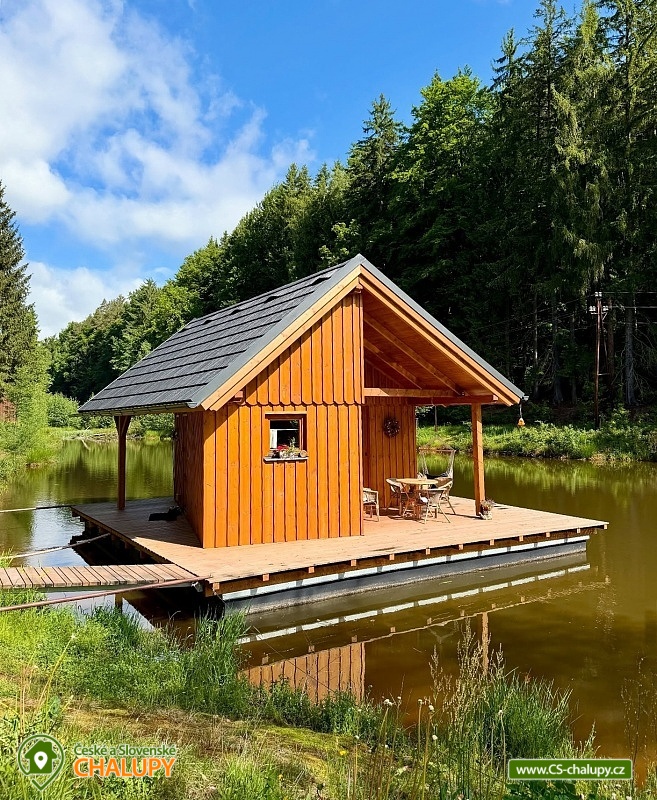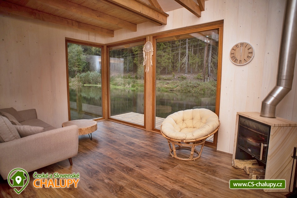 Glamping Český ráj - chata na rybníčku u lesa se nachází nedaleko hradu Pecka, poloha na rozhraní Českého ráje a Podkrkonoší. Chata je součástí areálu, kde jsou umístěné další dvě chaty - Chata 7C-168 a Chata 7C-170. Po celou dobu pobytu je povolený rybolov metodou „Chyť a Pusť“. Chata (28 m²) nabízí komfortní glampingové ubytování pro až 4 osoby, celkem je k dispozici 1x dvoulůžko a 2x přistýlka vhodná svou velikostí pro děti (cca do 160 cm). V přízemní části chaty je obývací pokoj s krbovými kamny, sedací soupravou, jídelním stolem a plně vybavenou kuchyní (lednička, elektrický dvouvařič, mikrovlnka a rychlovarná konvice). Díky panoramatickým oknům si můžete užívat krásný výhled na vodní hladinu a do okolní přírody. Z obývací části vedou schody do podkrovní části, kde je umístěná velká manželská postel a dvě přistýlky pro děti. Ložní prádlo je k dispozici. Sociální zařízení zahrnuje jednu samostatnou koupelnu s WC. Voda přivedená do chatky je pouze užitková. Nutné je mít vlastní ručníky a osušky. Vytápění je řešeno krbovými kamny. Venku lze posedět na terase navazující na chatku. K relaxu je k dispozici závěsné houpací křeslo. K chatce patří také vlastní ohniště. Opékací vidličky jsou připravené k zapůjčení. Parkovat lze přímo v areálu cca 50 m od chaty. V okolí objektu možnost turistiky, cykloturistiky, koupání, houbaření, lyžování a běžkování. V nedalekém okolí se lze projít k Novopackým vodopádům nebo navštívit hrad Pecka. V blízkosti jsou tenisové kurty a bowling. Mezi možnosti koupání patří např.: koupaliště Pecka, rybník Fařina - Nová Paka, lom Rumchalpa - Nová Paka, vodní nádrž Jahodnice, rybník Lužany - Marešák, Lázně Bělohrad - rybník Pardoubek, rybník Hlíza, koupaliště Šárovcova Lhota, atd. K dispozici jsou blízká lyžařská střediska: Máchovka, Pecka nebo Karas - Mezihoří. K výletům v okolí láká Hrad Kumburk, Jičín - město pohádky, Prachovské skály, Vodní nádrž Les Království, Zřícenina hradu Trosky nebo ZOO Dvůr Králové nad Labem. Těšíme se na Vás u nás.