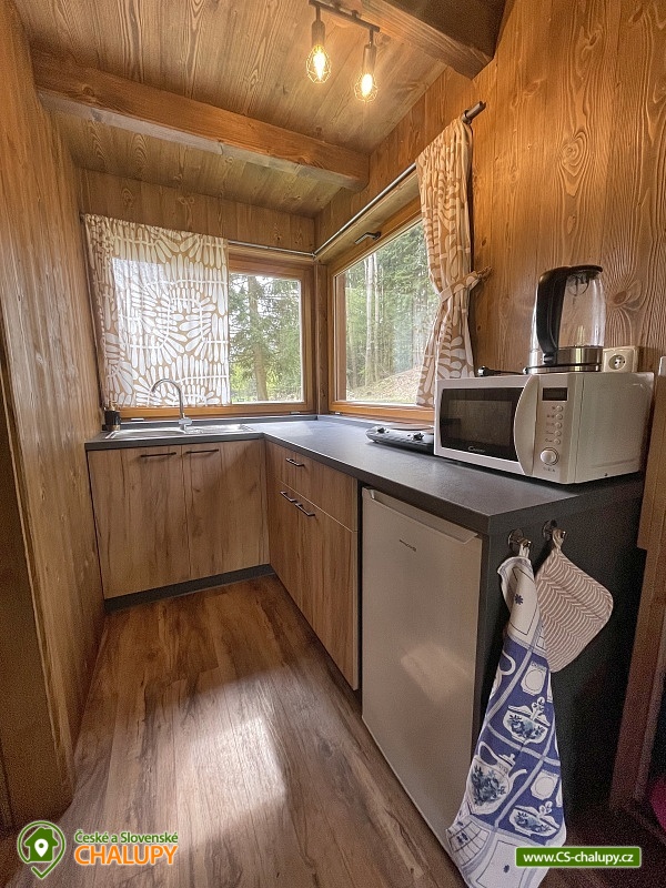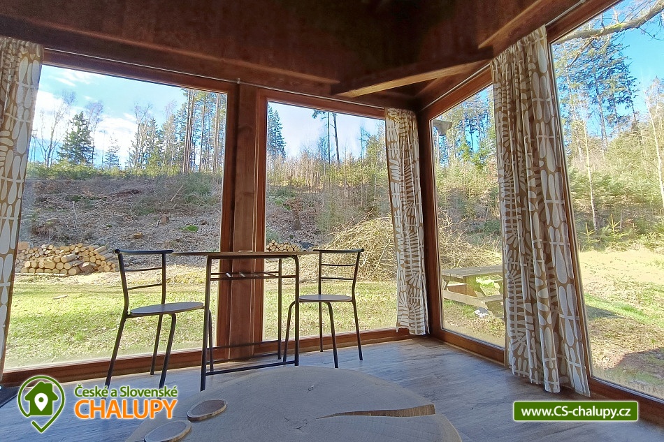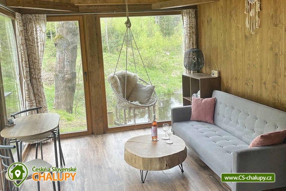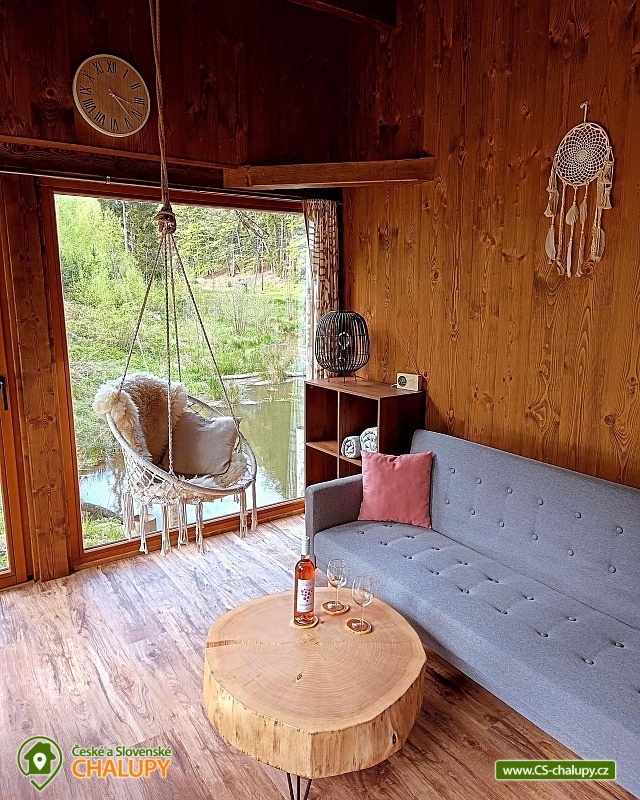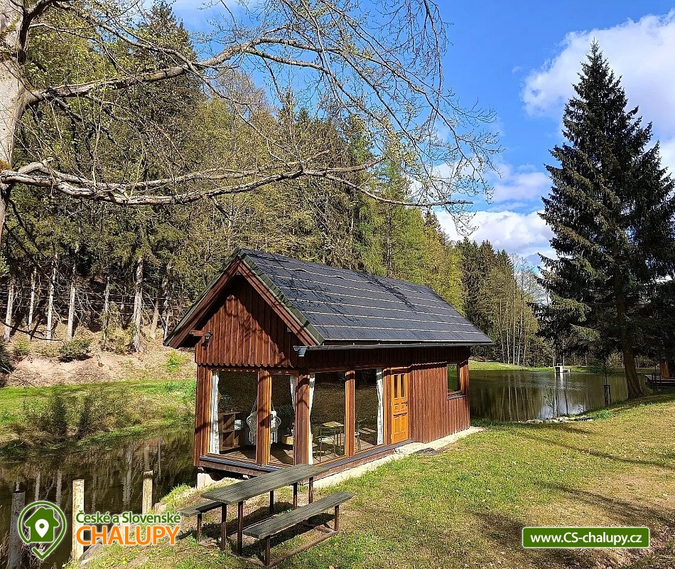 Glamping Český ráj - Chata u lesa na břehu menšího rybníčku nedaleko hradu Pecka, poloha na rozhraní Českého ráje a Podkrkonoší. Chata je součástí areálu, kde jsou umístěné další dvě chaty - Chata 7C-168 a Chata 7C-169. Po celou dobu pobytu je povolený rybolov metodou „Chyť a Pusť“. Chata (28 m²) nabízí komfortní glampingové ubytování pro až 4 osoby, celkem je k dispozici 1x dvoulůžko a 2x přistýlka. V přízemní části chaty je obývací pokoj s krbovými kamny, sedací soupravou, závěsným křeslem, jídelním stolem a plně vybavenou kuchyní (lednička, elektrický dvouvařič, mikrovlnka a rychlovarná konvice). Díky panoramatickým oknům si můžete užívat krásný výhled na vodní hladinu a do okolní přírody. V podkrovní části je umístěná velká manželská postel a dvě přistýlky. Ložní prádlo je k dispozici. Sociální zařízení zahrnuje jednu samostatnou koupelnu s WC. Voda přivedená do chatky je pouze užitková. Nutné je mít vlastní ručníky a osušky. Vytápění je řešeno krbovými kamny. Venku lze posedět na terase navazující na chatku nebo u venkovního dřevěného jídelního stolu. K dispozici jsou dvě lehátka. K chatce také vlastní ohniště. Opékací vidličky jsou připravené k zapůjčení. Parkovat lze přímo v areálu cca 100 m od chaty. V okolí objektu možnost turistiky, cykloturistiky, koupání, houbaření, lyžování a běžkování. V blízkosti jsou tenisové kurty a bowling. V nedalekém okolí se lze projít k Novopackým vodopádům nebo navštívit hrad Pecka. Mezi možnosti koupání patří např.: koupaliště Pecka, rybník Fařina - Nová Paka, lom Rumchalpa - Nová Paka, vodní nádrž Jahodnice, rybník Lužany - Marešák, Lázně Bělohrad - rybník Pardoubek, rybník Hlíza, koupaliště Šárovcova Lhota, atd. K dispozici jsou blízká lyžařská střediska: Máchovka, Pecka nebo Karas - Mezihoří. K výletům v okolí láká Hrad Kumburk, Jičín - město pohádky, Prachovské skály, Vodní nádrž Les Království, Zřícenina hradu Trosky nebo ZOO Dvůr Králové nad Labem. Těšíme se na Vás u nás.