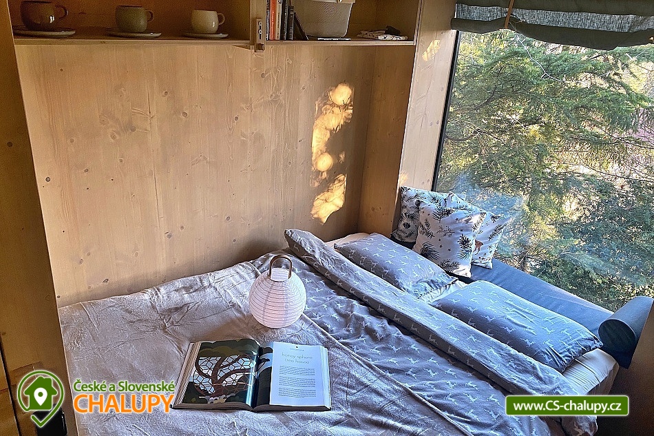 Glamping na kopci nad Vltavou - Posed v Praze. Zážitkové ubytování se nachází na zalesněném kopci nad Vltavou, na soukromém pozemku s domem majitele, v klidné oáze mezi smrčky a borovicemi, kde hluk působí výhradně štěbetající ptactvo. Poloha ve slepé ulici v lese a zároveň 30 minut městskou dopravou od historického centra Prahy. Posed poskytuje ubytování pro až 3 osoby. Komfort i v lese - Pár kroků od posedu je vám k dispozici samostatné útulné zázemí s moderní koupelnou (sprcha, splachovací WC, umyvadlo, žebříkové topení) a plně vybaveným kuchyňským koutkem, kde najdete elektrickou plotýnku, čajovou konvici, moka konvičku, lednici, dřez, kompletní nádobí a potřeby pro jednoduché vaření). V prostoru je kromě elektrického osvětlení i přirozené světlo díky střešnímu oknu s výhledem do větvoví naší nejkrásnější borovice. POPIS - Co vás čeká? Sympaticky minimalistický obytný prostor (2,5 x 3m) se vším, co potřebujete, Velkorysý výhled z lesa do údolí vilové čtvrti, Interiér ze smrkového dřeva, který se přizpůsobí vašim představám (ze stolu je rázem další lůžko a naopak), Přírodní design a s láskou vybrané stylové doplňky, Komorní osvětlení a dvě elektrické zásuvky, kde si nabijete svá mobilní zařízení, Olejové elektrické topení, ideální i pro alergiky, Odpočinkové "chillout" horní patro včetně dvou / tří pohodlných matrací a čtecí lampičky, Větrací okénka s moskytiérou a venkovní lucerna, abyste nezabloudili. Parking v ulici bez poplatku. A co ještě? V posedu najdete barel s pitnou vodou, úložný prostor, knížky, deskové hry, deky a polštářky a další důležité maličkosti. Kdyby vám cokoli chybělo, rádi doplníme. Outdooroví nadšenci jistě ocení upravený plácek s ohništěm, v hezkém počasí jsou k dispozici i lehátka nebo maxi houpací síť. Po dohodě vám rádi zapůjčíme i jízdní kola, abyste si mohli užít nejoblíbenější pražskou cyklotrasu podél Berounky až na Karlštejn. Milovníci vypletených raket si mohou rezervovat náš lesní tenisový kurt. V blízkosti se nachází přírodní biotop, veřejný bazén v Podolí je vzdálen několik stanic tramvají. Do půl hodiny jste v centru Prahy - za 5 minut lesní cestou u tramvaje a odtud vyhlídkovou trasou podél Vltavy až na Staroměstskou. Těšíme se na Vás u nás.