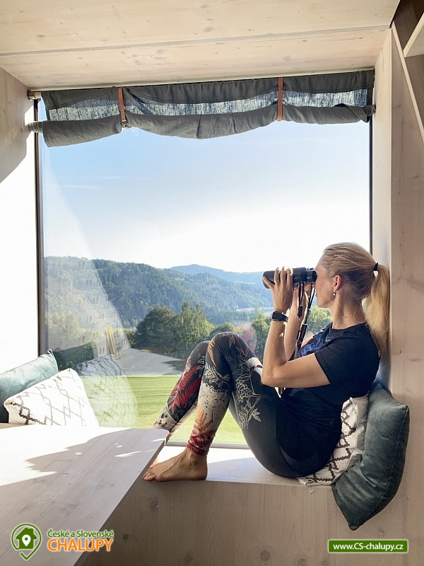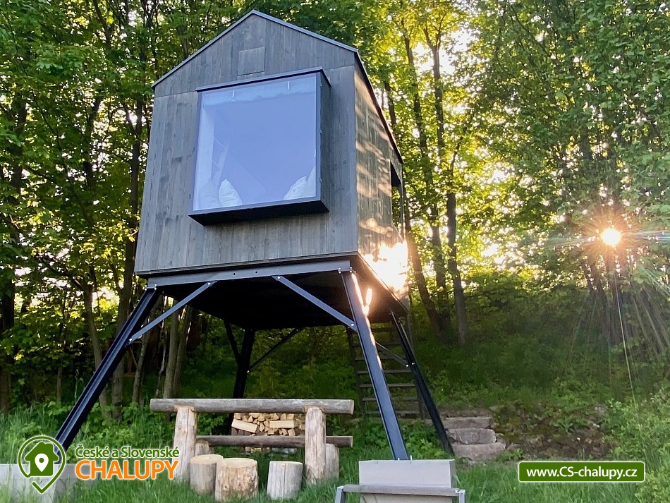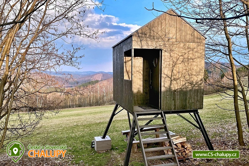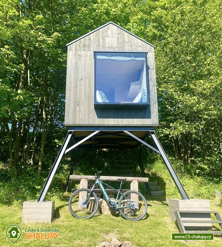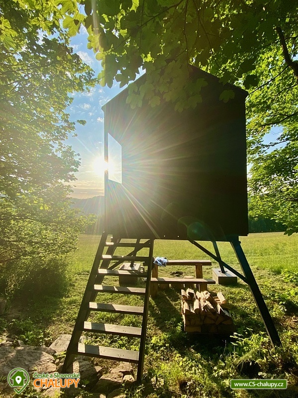 Glamping na Vysočině se nachází na samotě u lesa v krásné přírodě Vysočiny - posed u přehrady Vír nedaleko Bystřice nad Pernštejnem. Přímo z posedu si lze užívat výhledy na Vodní nádrž Vír. Posed je ideálním ubytováním pro všechny, kteří se chtějí odpojit od každodenního shonu a zažít opravdový klid a pohodu v nádherném přírodním prostředí bez elektřiny a wifi. Těšit se můžete na usínání a probouzení za zpěvu ptáků a pozorování zajíců, srnek, muflonů, daňků nebo divokých prasat, kteří se mohou po paloučku procházet. Posed poskytuje ubytování ideálně pro 2 osoby. Na velké matraci ve vyvýšeném patře (vstup po žebříku) se pohodlně vyspí i 2 dospělí a 1 dítě. Na posedu je i vyklápěcí postel (sklopí se stůl a vyklopí se lůžko) pro další 2 osoby. Na posedu se vyspí i 3-4 osoby (možné i pro rodinu 2 dospělí a 3 děti). Peřinu a polštář máme pro 4 osoby a 2x deku. Dovnitř posedu se dostanete po několika schůdkách. Přímo nad postelí je střešní okno s výhledem do nebe a korun stromů. Dominantou spodní části posedu je velké prosklené okno s posezením poskytující úžasné výhledy do okolí. Vedle okna je také umístěn menší jídelní stůl a lavice. K dispozici je také základní nádobí, pitná voda, knížky, hry a dalekohled. Na posedu není klasická elektřina, ale pouze baterie na rychlé nabití mobilu. Vytápění je řešeno přímotopem na plynové kartuše. Malý vařič slouží spíše na ohřátí vody než na vaření. Venku u posedu je připravená voda na umytí rukou či celého těla a stylová kadibudka se suchým WC. K dispozici je ručník a utěrka. Posedět lze přímo pod posedem, kde je k dispozici dřevěný stůl a lavice. Odpočívat můžete také v houpací síti hammock (hamaka). Dále je k dispozici ohniště, dřevo na oheň a opékací hůlky na špekáčky. K posedu se dá dostat jen po polní cestě. V okolí posedu možnost možnost turistiky, cykloturistiky a houbaření. V blízké Bystřici nad Pernštejnem je jízdárna, tenisové kurty, lanový park a bowling. Pěšky lze sejít k Vírské přehradě nebo se projít k Chudobínské borovici. K výletům v okolí láká Bystřice nad Pernštejnem - Centrum Eden, sportovní areál, Skanzen Horácká vesnice, Hrad Pernštejn, Zábavní park Šikland, Zřícenina hradu Zubštejn nebo CHKO Žďárské vrchy. Těšíme se na Vás!