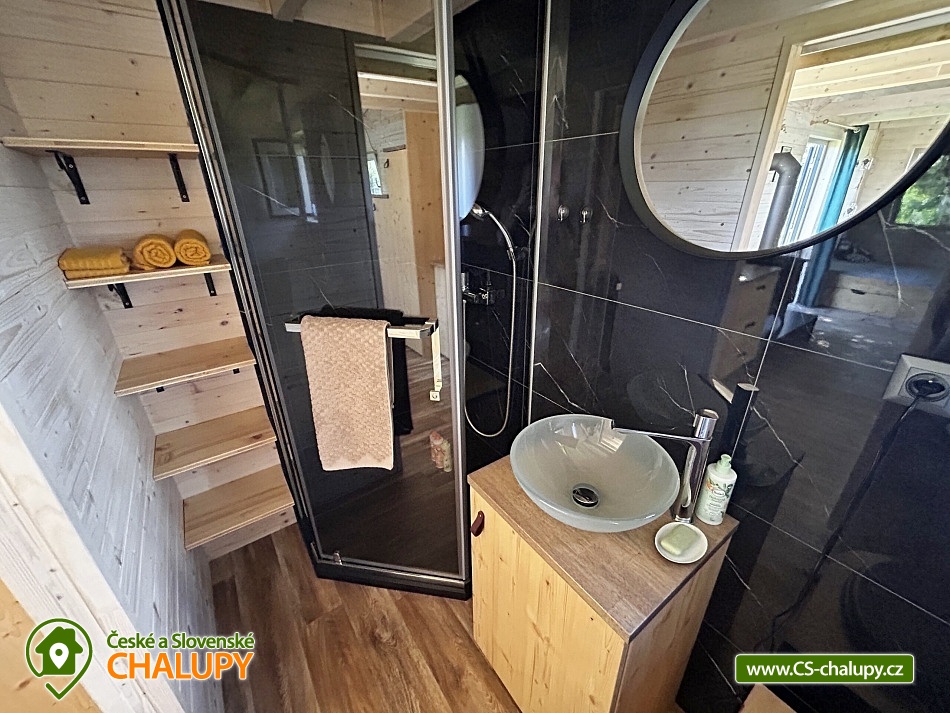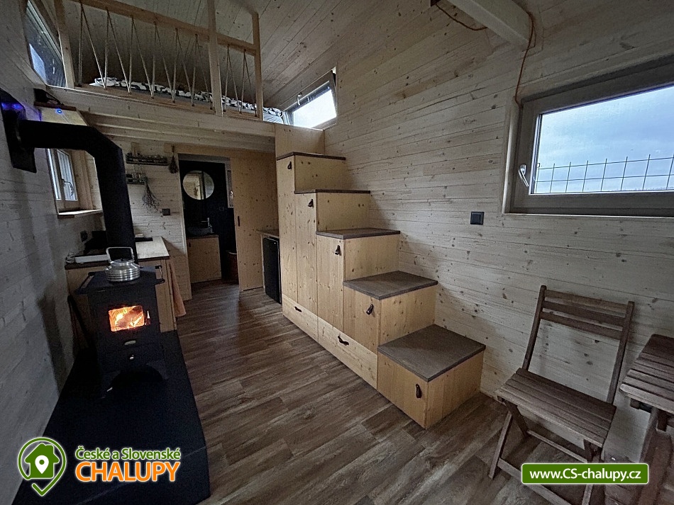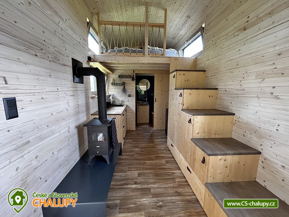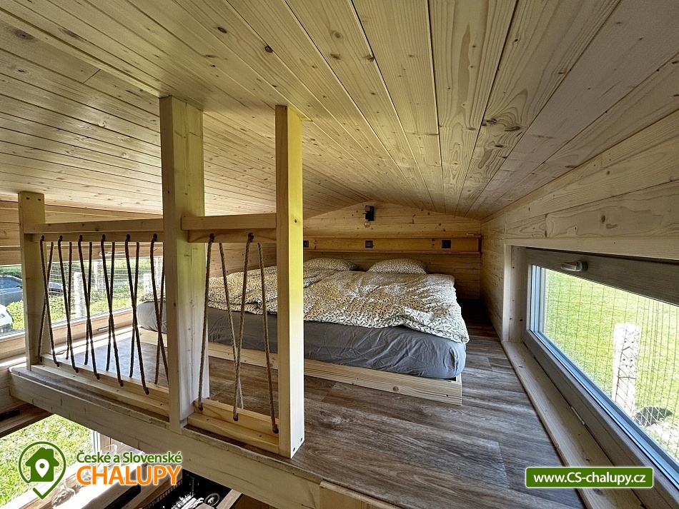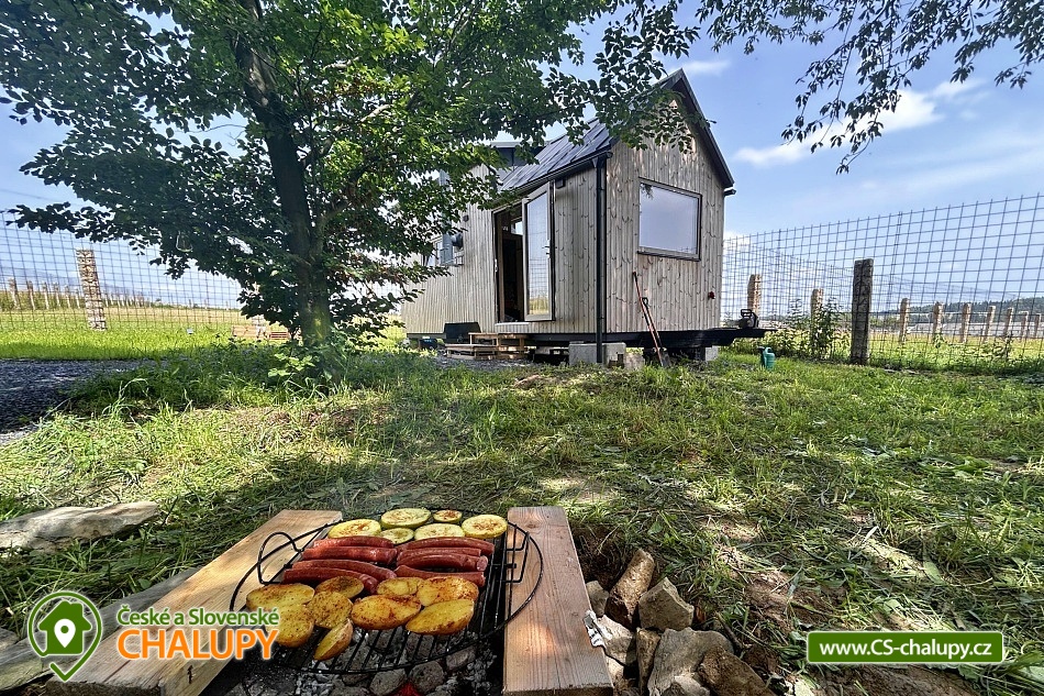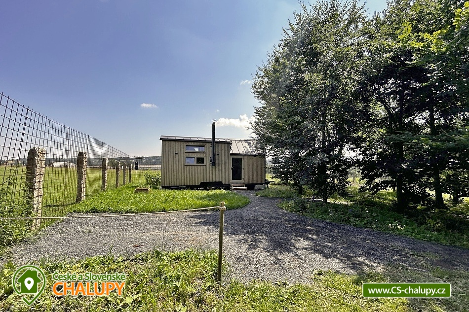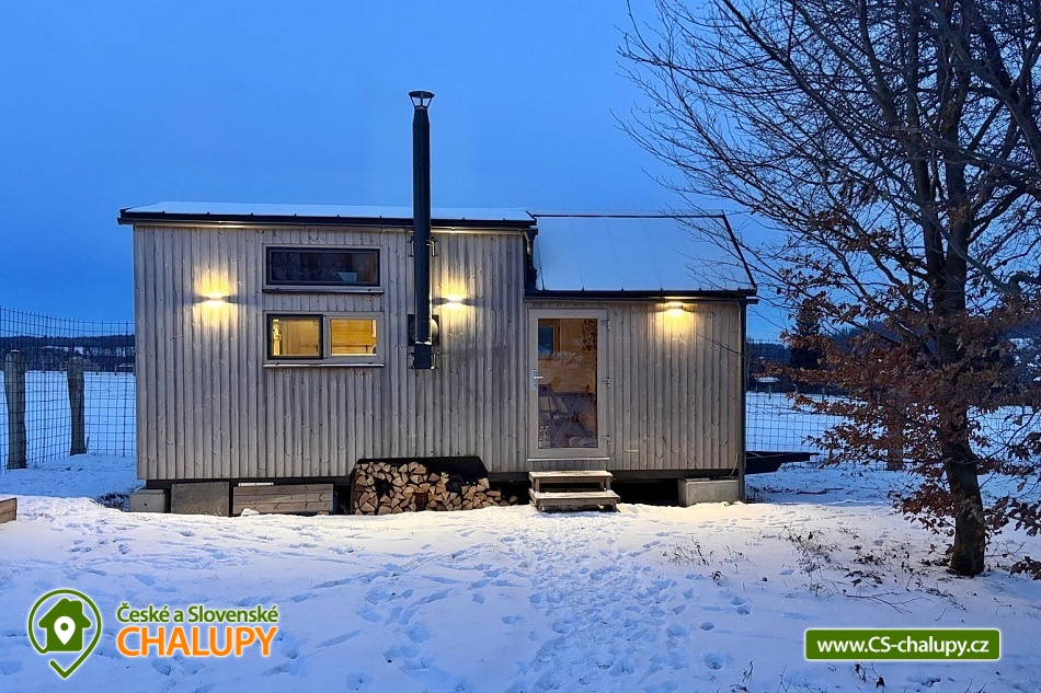 Glamping nedaleko vodní nádrže Slezská Harta ve východní části pohoří Nízký Jeseník. Těšit se můžete na zážitkové ubytování v přírodě v blízkosti volně pasoucí se zvěře. Dřevem provoněný domek Tiny house nabízí ubytování pro až 4 osoby. V jedné hlavní místnosti je k dispozici 1x manželská postel umístěná na vyvýšeném patře se schůdky a 1x prostorná válenda pro dvě osoby. Dále jsou součástí místnosti krbová kamna, kuchyňská linka s dřezem, lednicí, indukční varnou deskou, úložnými prostory a menší stoleček se dvěma židlemi. Sociální zařízení zahrnuje jednu samostatnou koupelnu se sprchovým koutem, umyvadlem a separační toaletou. Dům je obklopen travnatou zahradou se stromy. Posedět lze u ohniště. Parkování je možné přímo u objektu. V okolí tiny housu možnost turistiky, cykloturistiky, koupání, houbaření a rybaření. V blízkosti je také jízdárna a půjčovna lodiček a šlapadel. Mezi možnosti koupání patří např.: vodní nádrž Slezská Harta, lom Svobodné Heřmanice, koupaliště Nový Dvůr - SM, koupaliště Budišov nad Budišovkou, Bruntál - Wellness centrum, vodní nádrž Pocheň, koupaliště Bruntál, atd. K dalším výletům v okolí láká Mlýn v Hlavnicích, zámek Mladecký dvůr, Břidlicové lomy Jakartovice, Městské muzeum Krnov nebo přírodní památka Venušina Sopka. Těšíme se na Vás u nás.