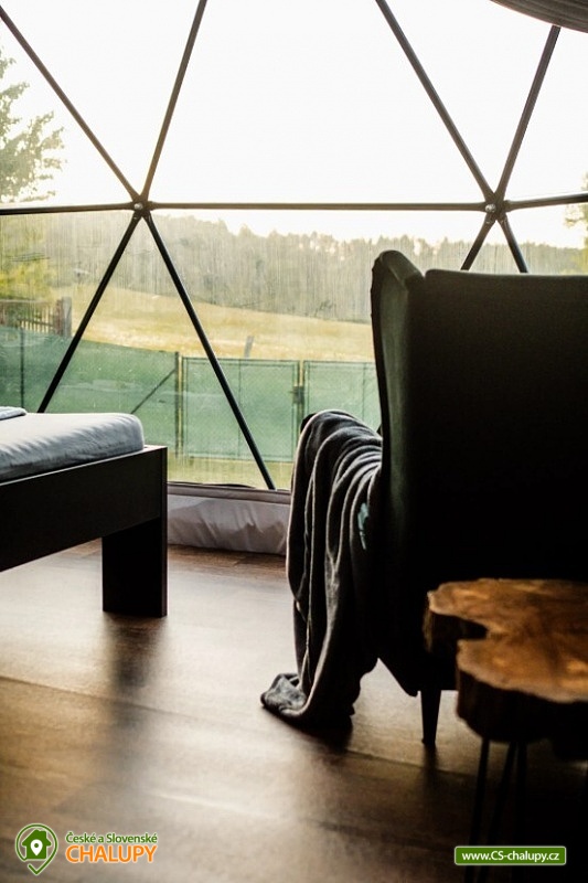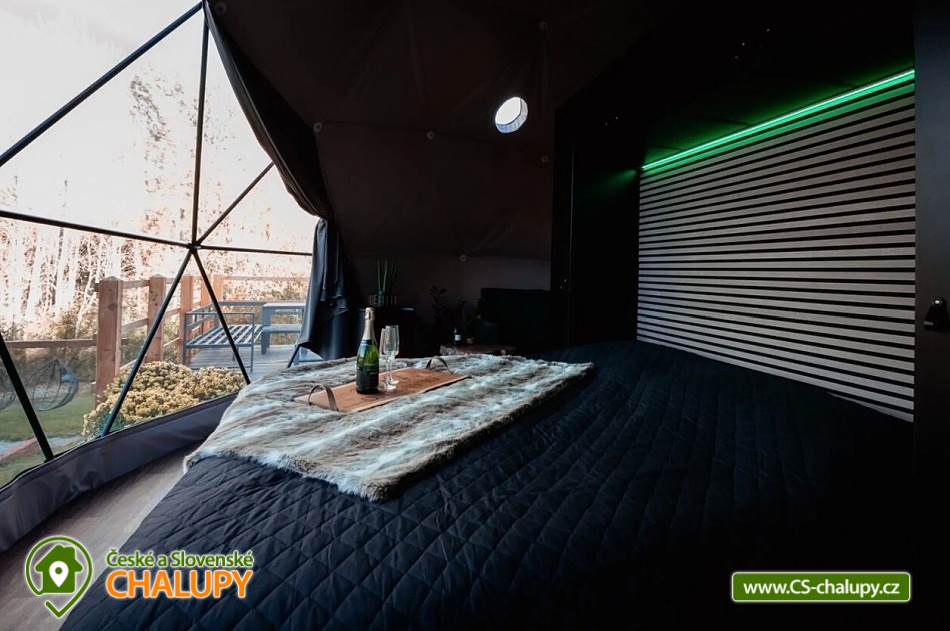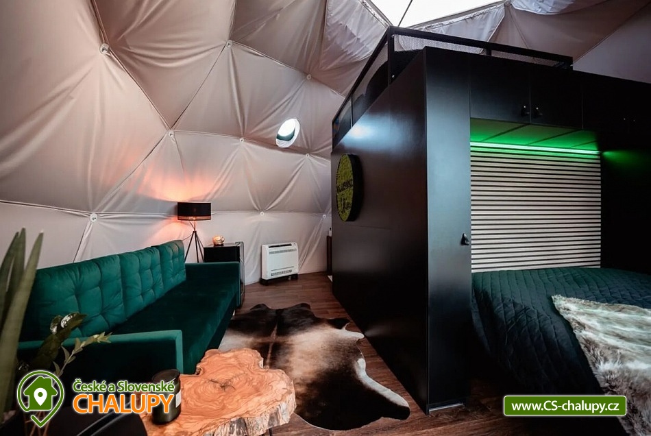 Netradiční moderní glamping s koupacím sudem v srdci Českomoravské vrchoviny na okraji obce Klokočí. Originální ubytování, které spojuje styl a luxus s nezapomenutelnou atmosférou. Místo, kde můžete zpomalit a užít si nerušený relax v elegantně zařízeném, klimatizovaném interiéru. Těšit se můžete jedinečný zážitek v soukromí a komfortu s výhledem do okolní přírody. Ubytování je vhodné pro páry nebo 4-člennou rodinu. Dominantou stanu je luxusní manželská postel doplněná o loftové patro na spaní, nabízející nádherný výhled na hvězdnou oblohu. V otevřeném prostoru se dále nachází vybavený kuchyňský kout (indukční varná deska, lednice, mrazák, rychlovarná konvice, kávovar a nádobí) s jídelním stolem. Po domluvě lze připravit čerstvou snídani. Nechybí zde ani minibar plný regionálních pochoutek a nápojů, TV, gauč a možnost připojení na WiFi internet. Sociální zařízení zahrnuje koupelnu se sprchovým koutem, umyvadlem, toaletou a voňavou kosmetikou. K dispozici jsou župany, ručníky, přezůvky a fén. Vytápění stanu je zajištěno krbovými kamny a klimatizací. Samotný stan obklopuje prostorná dřevěná terasa s posezením a grilem. Využít můžete privátní koupací sud či posezení u ohniště. Celý pozemek je oplocen, což zajišťuje naprosté soukromí. K objektu vede lesní cesta s možností parkování (max. 2 auta). Pro ty nejmenší je k dispozici dětské hřiště s pískovištěm. V okolí objektu možnost turistiky, cykloturistiky, koupání, lyžování, běžkování, rybaření či houbaření. Mezi možnosti koupání patří např.: Aquapark Kuřim. V zimě jsou výhodou blízká lyžařská střediska např.: Skiareál Nutrie, Skiareál Kovářová či Skiareál Klínek. K výletům v okolí láká: hrad Pernštejn, hrad Zubštejn, strašidelný zámek Draxmoor, rozhledny Karasín a Žernovník, zábavní park Šikland nebo Lanový park Domanín. Těšíme se na Vás u nás.