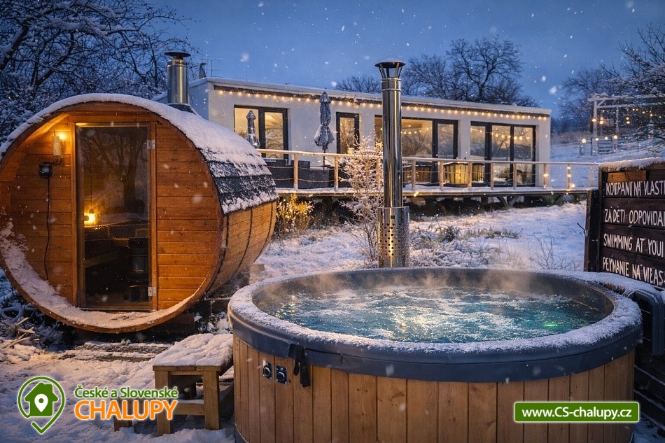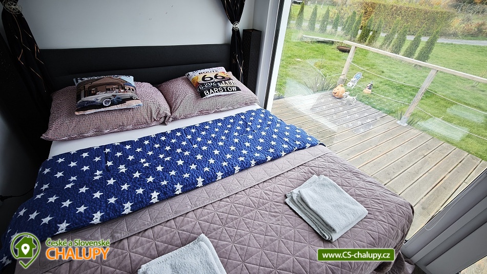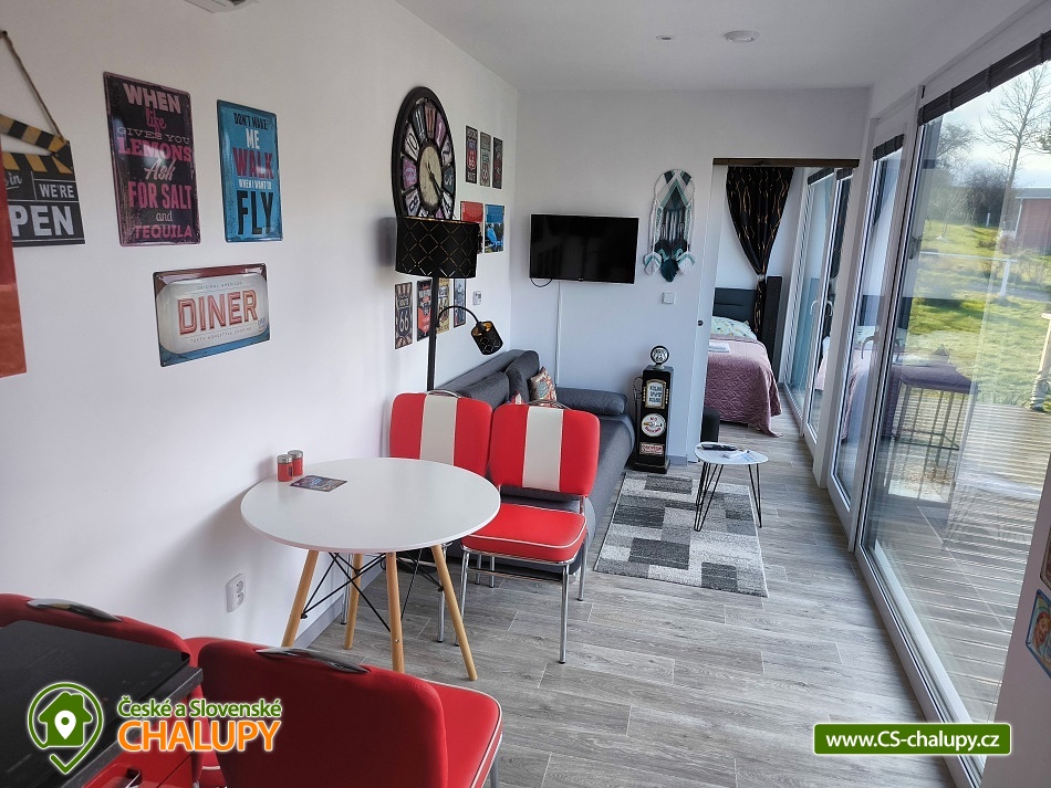 Glamping se saunou a bazénem - Tiny v obci Hostkovice ve stylu Route 66, část obce Tršice u Velkého Týnce a Olomouce. V krásném prostředí v dosahu přírody, koní i města. Je umístěn na velké zahradě, kde je k dispozici bazén se solárním ohřevem. Tiny House nabízí ubytování pro čtyři osoby ve dvoulůžkové ložnici a v obývacím pokoji s rozkládací pohovkou. Objekt má plně vybavenou kuchyň (nádobí, lednice, mikrovlnná trouba, dvou plotýnková varná deska a kávovar), jídelní stůl, TV, Wi-Fi připojení a klimatizaci. Sociální zařízení zahrnuje sprchový kout, umyvadlo a WC. K dispozici jsou ručníky, sprchový gel a fén. O teplou vodu se stará bojler s kapacitou 80l. Vytápění je možné dvěma způsoby. Prvním je topení klimatizací (tepelné čerpadlo), nejúspornější způsob. Další možnost je elektrické podlahové infra topení, s termostatem v každé místnosti. Parkování je možné přímo u objektu na oplocené zahradě. Venku můžete posedět na terase s krásným výhledem do zahrady a přírody. K dispozici je bazén, gril a ohniště. Pěšky či na kole lze vyrazit k památníku obětem první světové války. Dvacet minut pěšky tam a dvacet minut zpět, čtyřkilometrová procházka. Na kole se pak dá pokračovat dále do obce Velký Týnec, či se napojit na trasu Chlum - tato trasa vede z velké části lesem a měří přibližně 9 kilometrů. Je vhodná jak pro cyklisty, tak pro pěší. Navštívit můžete také město Olomouc, kde je velké množství kultury a zábavy. Lze také dohodnout vyjížďky na koni ve zdejší stáji nebo si stáj jen projít a podívat se na různá zvířátka. Stáj je na dohled od ubytování, 3 minuty chůze. Možnost koupání: aquapark Olomouc, přehrada Tršice nebo koupaliště Penčice. V zimě můžete navštívit nedaleký ski areál Hlubočky. Těšíme se na Vás u nás.