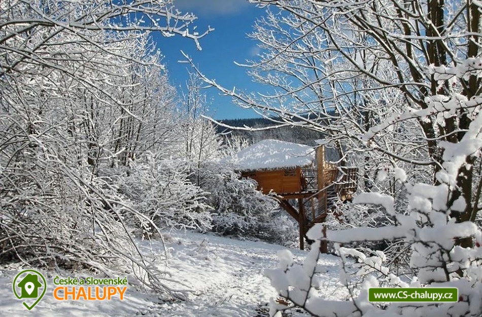 Glamping v korunách stromů - výhled na Ještěd. Z prostorné terasy se vám nabízí jedinečné panoramatické výhledy do okolní přírody s dominantou hory Ještěd. Užívat si můžete také venkovní saunu. Glampingu - Treehouse dominují přírodní materiály, od postele z masivu až po dekorace na stěnách, všude je cítit vůně dřeva a samotného lesa. Treehouse je bez elektrické energie, přesto luxusně vybaven a nabízí maximální komfort tak, abyste byli ze zážitkového ubytování skutečně "na větvi". Je určena především pro milovníky volného prostoru a jedinečných výhledů. Prostor poskytuje příjemné ubytování se snídaní pro až 4 osoby (z toho max. 3 dospělí) – celkem pro 2 osoby na manželském lůžku s výhledem na Ještěd přímo z postele, a 2 osoby na pohodlné přistýlce. Treehouse je vybaven kuchyňským koutem s jednoplotýnkovým vařičem, malou, plnohodnotnou lednicí, kompletní sadou nádobí a jídelním stolkem s lavicí. Po domluvě lze naplnit lednici vyzrálým naloženým masem, grilovací zeleninou nebo marinované sýry na gril s rajčátky. Ráno pro vás může být připravena snídaně (čerstvé pečivo, sýry a uzeniny, poctivý jogurt s cereáliemi nebo míchaná vejce s cibulí a slaninkou a k tomu domácí čaj nebo vynikající káva). Zatopit si můžete ve stylovém litinovém krbu s automatickou funkcí, který večer dokreslí útulnou atmosféru a spolehlivě vyhřeje treehouse v chladnějších nocích. Objekt není napojen na elektřinu ani vodu, přesto si večer lze posvítit led svítidly a opláchnout se v koupelnovém koutku přímo v treehousu. Vykoupat se můžete v přírodní lesní sprše se studenou vodou nedaleko vyhlídkového posedu. Voda do přírodní sprchy je čerpána z pramene přímo na pozemku. Zásoba pitné vody je samozřejmostí. V korunách stromů, se také nachází ekologické WC. Tradiční kadibudka v soukromí lesa se nachází nedaleko. Během ubytování je k dispozici káva, čaj, cukr, sůl, koření, smetana, ručníky, osušky, vymazlené chodící spací pytle (pohodlné posezení na terase i za chladnějších nocí), svíčky, pepo, zapalovače a knihovnička. Wellness v srdci přírody si lze užívat v privátní sudové sauně s kamny na dřevo. Venkovní posezení uprostřed krásné krajiny je doplněno o ohniště a gril. K prozkoumávání okolí poslouží dalekohled, kterým dohlédnete až na vrchol Ještědu. K pozorování si můžete udělat výbornou kávu, kterou si připravíte v moka konvičce. Večer si můžete zpříjemnit s některou ze zábavných stolních her nebo můžete skočit do luxusních spacích pytlů a se sklenkou pozorovat noční Ještěd. Vyzkoušet můžete i svůj balanc na Slackline, nebo svoji pevnou ruku při lukostřelbě. Parkovat lze 900 m od objektu. V okolí Treehousu možnost turistiky, cykloturistiky, koupání, houbaření, rybaření a lyžování. V blízkosti je také jízdárna, golfové hřiště a in -line stezka. Nedaleko Treehousu se nachází Lesopark Horka - volnočasový areál pro celou rodinu. Po domluvě lze zajistit vyhlídkový let anebo jízdu na koloběžkách z Ještědu, kolem treehousu až do Kryštofova údolí. Napojení na turistickou Ještědskou hřebenovku je vzdálené necelých 150m lesní pěšinou. Z ní vedou nepřeberné cesty Ještědským přírodním parkem. Mezi možnosti koupání patří např.: vodní nádrž Hamr na Jezeře, koupaliště Kryštofovo Údolí, aquapark Centrum Babylon - Liberec, plavecký bazén Liberec, Vesecký rybník - Tajch, přehrada Harcov, koupaliště Obří sud - Javorník, vodní nádrž Horka - Stráž pod Ralskem, atd. V zimním období blízká lyžařská střediska: Ještěd, Světlá pod Ještědem, Dolní Pláně, Vesec, Obří sud - Javorník. K výletům láká příroda Jizerských hor, Ještěd, ZOO a Botanická zahrada Liberec, Kryštofovo údolí, Kouzelné Lázně Kundratice, Zámek Nový Děvín či Zámek Nový Falkenburk. Přijeďte si odpočinout od shonu všedního života, nabrat síly a zažít něco nevšedního. Těšíme se na Vás u nás.