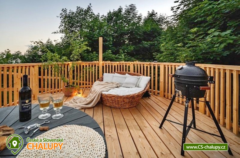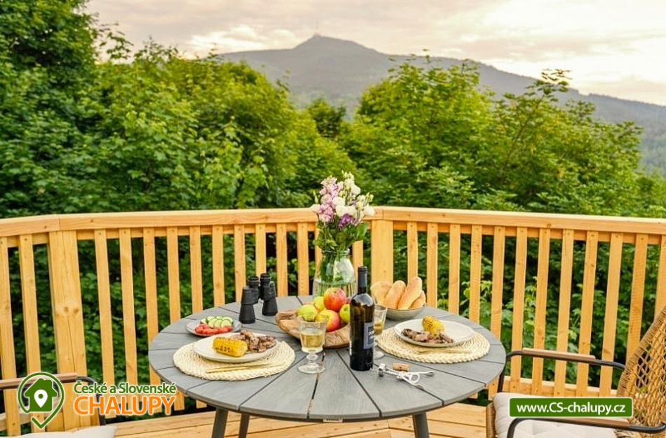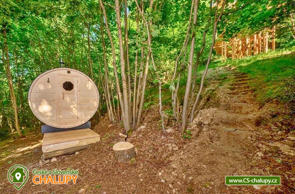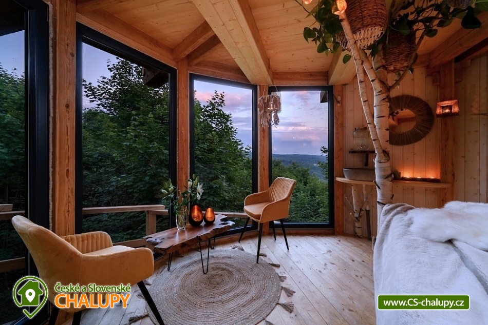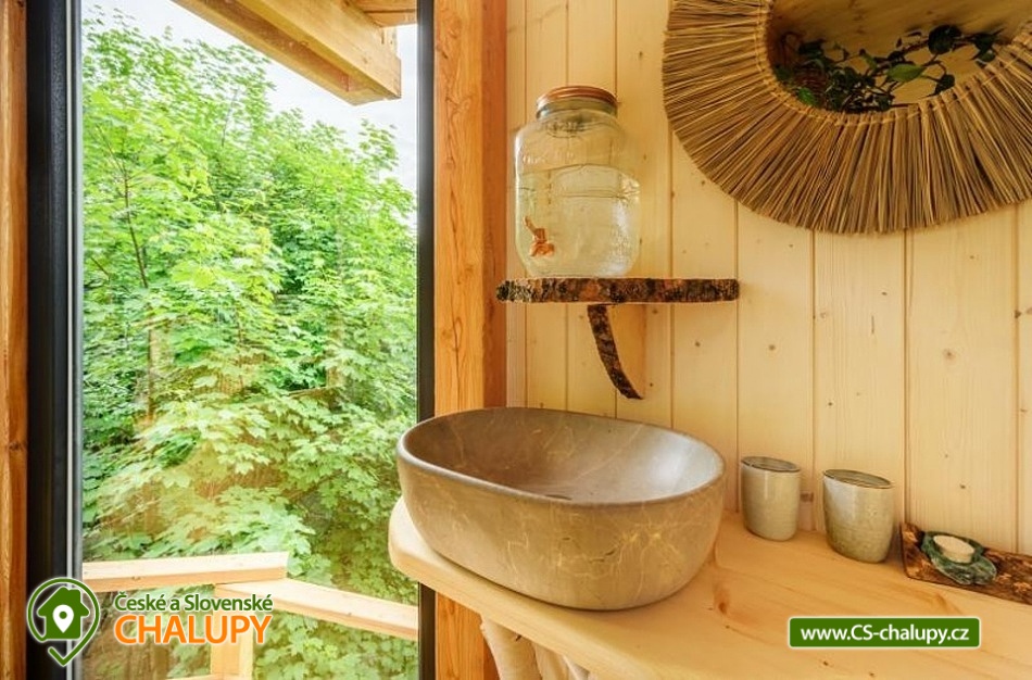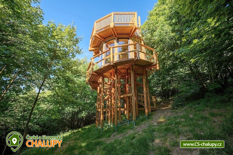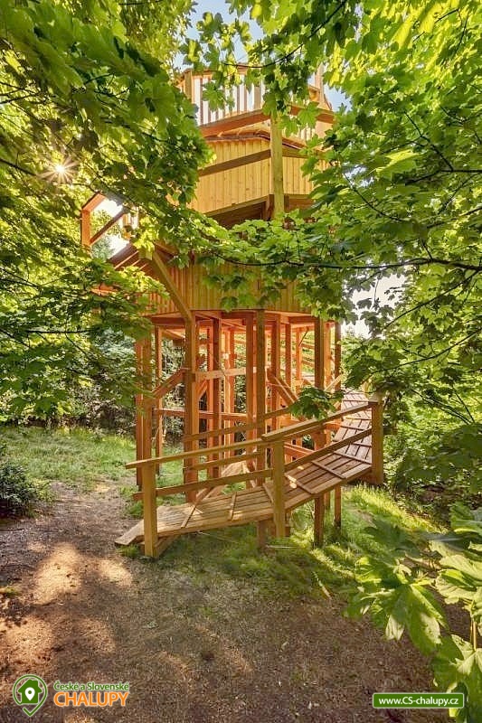 Unikátní glamping s venkovní saunou na samotě v lese. Originální ubytování u vrcholků stromů s obytným patrem a panoramatickou terasou na střeše. Užívat si můžete omamné šumění lesa a uvidíte nádherná panoramata s dominantou hory Ještěd. Glampingu dominují přírodní materiály, od postele z masivu až po dekorace na stěnách, všude je cítit vůně dřeva a samotného lesa. Glamping poskytuje ubytování se snídaní pro 2 dospělé osoby. V prvním patře chaty je připravený útulný obytný prostor, kde je k dispozici malá kuchyňka, posezení, kamínka na vytápění, toaleta, umyvadlo a především velká postel. Druhé patro s terasou slouží pro grilování a nekonečné kochání se místní přírodou. Vybavení zahrnuje střešní terasu, keramický gril, privátní saunu, plnohodnotnou lednici, vařič na kávu a čaj a luxusní chodící spací pytle pro pobyt na střešní terase. Součástí kuchyňského koutku je také káva, čaj, cukr, mléko do kávy a pitná voda. Osprchovat se tu můžete přímo pod korunami stromů ve venkovní sprše (voda ve venkovní teplotě). K dispozici jsou 2 toalety, jedna přímo v ubytování a druhá venku. Obě jsou suché a splachují se unikátně pilinami. Vytápění zajišťuje litinový automatický krb. Objekt nemá k dispozici wifi připojení a elektřinu. Tu pravou atmosféru si lze vytvořit světlem svíček nebo si užívat hvězdy nad hlavou. Na střešní terase nechybí luxusní venkovní postel, protože není nadto se po grilovačce natáhnout a koukat přímo na hvězdy. Na pozorování cvrkotu na Ještědu je připravený dalekohled. Gurmánské zážitky podtrhne portugalský porcelán. Voňavoučké peřiny nejvyšší třídy se značkovým saténovým povlečením Vás zahřejí i v chladnějších dnech. A atmosféru dotváří i živé květiny. Parkovat lze 650 m od objektu. V okolí možnost turistiky, cykloturistiky, koupání, houbaření a lyžování. V blízkosti je také in – line stezka a golfové hřiště. Mezi možnosti koupání patří např.: vodní nádrž Hamr na Jezeře, koupaliště Kryštofovo Údolí, aquapark Centrum Babylon - Liberec, plavecký bazén Liberec, Vesecký rybník - Tajch, přehrada Harcov, koupaliště Obří sud - Javorník, vodní nádrž Horka - Stráž pod Ralskem. V zimním období blízká lyžařská střediska patří: Ještěd, Světlá pod Ještědem, Dolní Pláně, Vesec a Obří sud - Javorník. K výletům láká příroda Jizerských hor, Ještěd, ZOO a Botanická zahrada Liberec, Kryštofovo údolí, Kouzelné Lázně Kundratice, Zámek Nový Děvín či Zámek Nový Falkenburk. Těšíme se na Vás u nás.