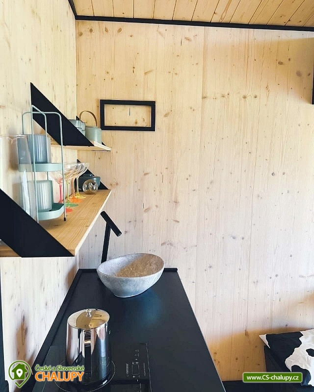 Glamping Žďárské vrchy - Tiny house Borovnice se nachází v obci Lačnov na hranici dvou krajů, Pardubického a Vysočiny, v blízkosti panenské přírody CHKO Žďárské vrchy. Jedná se o designový glampingový domeček umístěný na kopci a schovaný v lesním remízku, nabízející krásné výhledy na pastvinu a okolní kopcovitou krajinu. Domeček poskytuje ubytování pro 2 osoby a je ideální pro romantické pobyty, daleko od veškerého ruchu a shonu. K dispozici jsou dvě lůžka na vyvýšeném patře. Kapacitu lze však po domluvě navýšit druhým letištěm pro další 2 osoby. Součástí stylově vybaveného domku je posezení, židle, umyvadlo a vybavená kuchyňka s varnou deskou a konvicí. Do Tiny domku je zavedena voda i elektřina. Vytápění je v domku řešeno přímotopem. Na oploceném pozemku kolem domku je k dispozici chemické WC a solární sprcha. Také lze využít gril nebo posedět u venkovního ohniště. Parkovat lze pod kopcem na parkovišti vedle restaurace. Okolí tohoto romantického kraje kamení a jeřabin, nabízí spoustu možností pro turistiku, cykloturistiku, koupání, houbaření, rybaření, lyžování a běžkování. Údolí kolem řeky Svratky je protkané hustou sítí turistických značek, cílů delších či kratších výletů s možností koupání v nedalekých rybnících na Milovech, Medlově či Sykovci anebo v krytém bazénu v nedaleké Poličce. V zimním období blízká lyžařská střediska: Polička, Sedliště, Telecí, atd. Běžkaři mohou využít strojově upravovanou trať poblíž nedalekého Nového Města na Moravě. K výletům láká nedaleké město Polička, rodiště Bohuslava Martinů s rodnou světničkou ve věži kostela a město pyšnící se zachovalou a udržovanou středověkou hradbou. Dále skalní útvary Vysočiny - Devět skal, Čtyři palice, Dráteníčky, Perníčky, Černá a Bílá skála a Toulovcovy maštale. Navštívit lze také Hrad Svojanov, město Litomyšl, Poutní kostel Jana Nepomuckého na Zelené hoře ve Žďáru nad Sázavou nebo Zámek Nové Hrady. Těšíme se na Vás u nás.