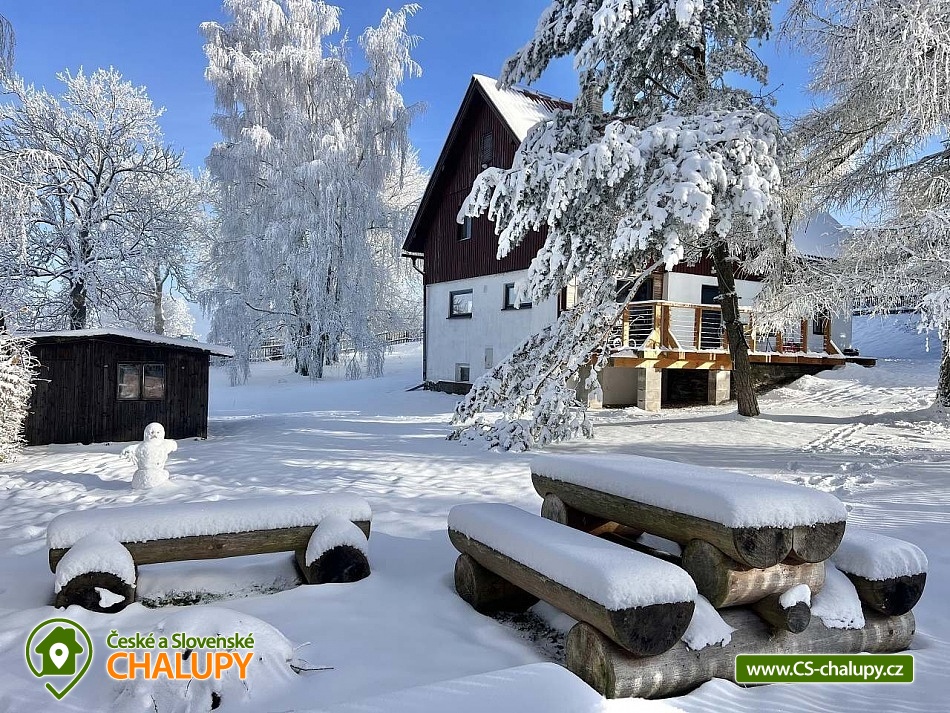 Horská chalupa Králický Sněžník u střediska Dolní Morava. Nachází se v nadmořské výšce 750 m na okraji malé horské vesničky Dolní Hedeč. Chalupa k pronájmu poskytuje ubytování pro až 17 osob v 5 ložnicích. V objektu jsou dvě koupelny a tři WC. Uvařit něco dobrého si můžete v plně vybavené kuchyni a společné večery trávit u krbu s výhledem do přírody. Přízemí: 1x dvoulůžkový pokoj - manželská postel. Patro: 1x dvoulůžkový pokoj - manželská postel, 1x čtyřlůžkový pokoj - 2x manželská postel (možno postele rozdělit), 1x šestilůžkový pokoj - 2x patrová postel 2+1,1x třílůžkový pokoj - 1x patrová postel + 1x samostatná postel. Vlastní stravování - plně vybavená kuchyň (indukční deska, horkovzdušná trouba, mikrovlnka, 2x rychlovarná konvice, toustovač, myčka nádobí, lednice, automatický kapslový kávovar Krups). Vytápění: elektrokotel - radiátory ve všech místnostech. Krbová kamna - společenská místnost a kuchyň. Parkování před chatou na štěrkovém parkovišti. K dispozici 6 parkovacích míst. V zimním období je silnice prohrnována až k parkovišti před objektem. Zároveň je 100 m od základny zastávka autobusu. V objektu je dostupné Wi - Fi připojení. Ve společenské místnosti je umístěna TV s 55 programy. V celém objektu je přísně zakázáno kouření. Pobyt s domácími mazlíčky je možný po domluvě za příplatek. Ideální místo pro milovníky turistiky, cyklistiky a lyžování. Na hranici pozemku začínají i běžkařské tratě směr Severomoravská chata. Kousek od chalupy je i rozhledna, klášter Hory Matky Boží a Mariánský pramen. Do lyžařských středisek Dolní Morava, Bukovka a Větrný vrch je to od nás pouhých 10 minut autem. Zima: lyžování v nedalekých areálech Dolní Morava, Větrný vrch, Buková hora - Čenkovice. Běžkařské tratě začínají přímo na hranici pozemku. Poutní místo Hora matky Boží - prohlídky i v noci. Volně přístupná rozhledna Val u Králík. Léto: cyklotrasy a turistické trasy v okolí - Jeřáb, Suchý vrch, Králický Sněžník. Pevnostní turistika - Vojenské muzeum Králíky, prohlídky pěchotních srubů. Poutní místo Hora matky Boží - prohlídky i v noci. Koupaliště Králíky. Přehrada Pastviny. Volně přístupná rozhledna Val u Králík. Rozhledna Křížový vrch, Suchý vrch.