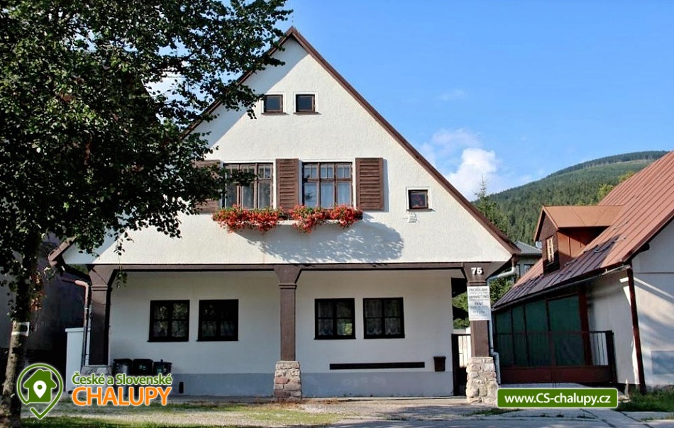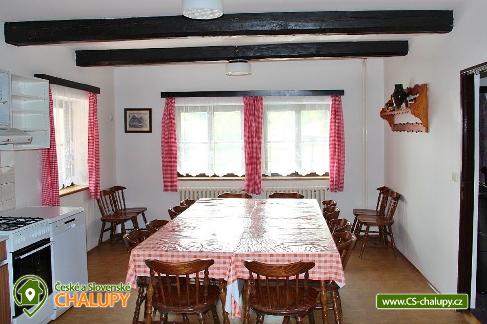 Horská chalupa Krkonoše se nachází nedaleko oblíbené Stezky korunami stromů v Janských Lázních nebo Aquacentra Vrchlabí, poloha v centru střediska Černý Důl v překrásném prostředí Východních Krkonoš u SkiResortu Černá Hora - Pec. Horská chalupa nabízí ubytování pro až 26 osob v 7 ložnicích. Celkem je k dispozici 2x čtyřlůžková ložnice s přistýlkou, 3x čtyřlůžková a 2x dvoulůžková ložnice. Dvě ložnice jsou umístěné v přízemí, tři ložnice jsou v patře a dvě ložnice jsou podkroví. Společné chvíle lze trávit v přízemí ve společenské místnosti pro 12 osob s TV se satelitním přijímačem a rádiem nebo v patře ve společenském koutě pro 6 osob. Posedět lze také ve velké vybavené kuchyni (lednička, myčka, varná deska, trouba, varná konvice a mikrovlnná trouba) s jídelnou pro 16 osob. V celém objektu je k dispozici WIFI připojení na internet. Sociální zařízení zahrnuje v přízemí dvě koupelny se sprchovým koutem, dvěma umyvadly a WC a jedno samostatné WC s dvěma umyvadly v patře. Vytápění je řešené ústředním topením na plyn. K dispozici je místnost pro úschovu lyží a kol. Venku u chalupy lze trávit čas na prostorné zahradě (1000 m2) s možností grilování nebo táboráku u ohniště. V podloubí domu a na dlážděné terase za domem je v létě příjemné posezení. Parkovat lze přímo u objektu na náměstí před chalupou. V blízkosti domu je prodejna potravin a drogerie, pošta, telefonní automat, půjčovny lyží a turistické informační centrum. V okolí objektu možnost turistiky, cykloturistiky, koupání, houbaření, lyžování a běžkování. V blízkosti je také jízdárna, tenisové kurty, golfové hřiště a bowling. Mezi možnosti koupání patří např.: aquacentrum Vrchlabí, koupaliště Čistá, aquacentrum Jánské Lázně, rybník Vejsplachy, koupaliště Retro park Sejfy, koupaliště Dolní Kalná, koupaliště Valteřice, Trutnov - Pekelský rybník, rybník U Mlejna, koupaliště Jilemnice, rybník Dolce, přehrada Labská, bazén Jilemnice, atd. V zimním období blízká lyžařská střediska: Černá hora - Černý Důl, Horní Lánov, Černá hora - Jánské Lázně, Ski Family - Dolní Dvůr, Košťálka, Svoboda nad Úpou, Dolní Dvůr - Luisino údolí, Vrchlabí - Kněžický vrch, Strážné, Pec pod Sněžkou, Herlíkovice - Bubákov a další. K výletům v okolí láká Černohorské rašeliniště, Krkonošský národní park, Špindlerův Mlýn, Zoologická zahrada Dvůr Králové nad Labem, zámek Kuks, Harrachov – sklářské muzeum s možností návštěvy hutě, Mumlavský vodopád, Jilemnice a nejvyšší vrchol ČR Sněžka. Těšíme se na Vás u nás.
