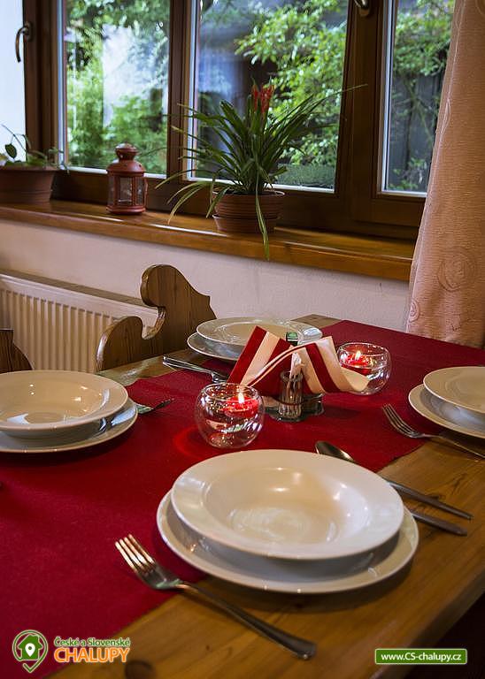 Vybavení objektu - vnitřní:společenská místnost, internet - wifi, vybavená kuchyně, rychlovarná konvice, varná deska, lednička, mrazák, mikrovlnná trouba, myčka, kávovar, TV, SAT
