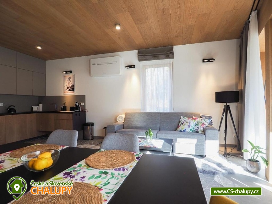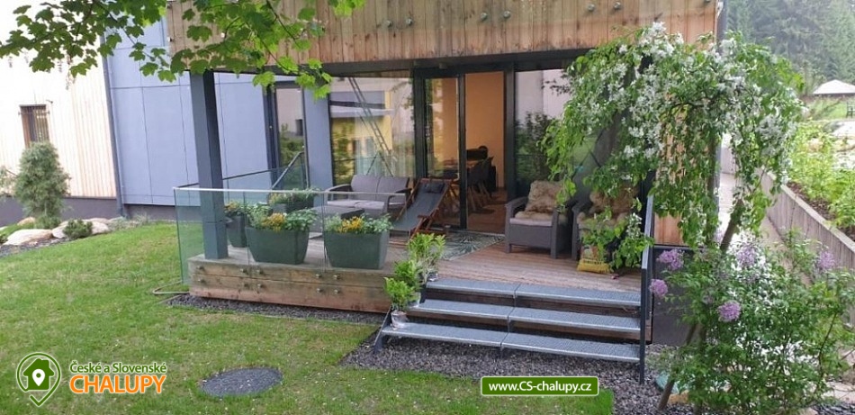 Horská chata pod Čertovou horou v Krkonoších, poloha nedaleko Mumlavských vodopádů. V chatě jsou k dispozici 3 samostatné apartmány spojené jedním schodištěm, jednotlivé apartmány se pronajímá samostatně, možnost pronájmu i celého objektu. Dvě bytové jednotky jsou koncipovány jako byty se samostatnou ložnicí s luxusní kontinentální manželskou postelí šíře 180 cm. Kvalitní odpočinek a spaní je prioritou. V těchto dvou bytech je dále možnost spaní na rozkládací posteli, která přes den tvoří sedačku v obytné místnosti. Dvoulůžko má šíři 160 cm. Třetí byt je menší, má jednu obytnou místnost se stejnou luxusní kontinentální manželskou postelí šíře 180 cm jako ostatní dva byty, přistýlka je však v téže místnosti. Byt působí velmi útulně, je slunný s krásným výhledem na Čertovu horu. V každém apartmánu je plně vybavená kuchyňka - lednice, mikrovlnná trouba, indukční deska, topinkovač, kávovar, myčka na nádobí. Parkovací plocha zdarma se nachází přímo u ubytovacího zařízení. Nabízíme možnost velmi pohodlného a bezkontaktního checkinu i checkoutu. V Chatě má každý byt vlastní sociální zařízení se sprchovým koutem. Topným žebříčkem se místnost jak vytopí, tak dobře poslouží k sušení vlhkého oblečení. Ve standardní výbavě každé koupelny je fén pro rychlé vysušení vlasů. Vytápění je centrální podlahové, velmi příjemné. Pro nenadálé změny počasí lze s přehledem využít tichou klimatizační jednotku v obytné místnosti, která umí nejen chladit, ale i vytopit místnost během pár minut. A pro ty, kteří si chtějí v chladném večeru navodit opravdu romantickou atmosféru, je k dispozici prosklený krb s dostatečnou zásobou suchých dřevěných polen. Chytrá televize nabízí možnost satelitního programu, ale i možnost sledování filmů pomocí služby Netflix. Každý byt má venkovní terasu s posezením a různými výhledy. Spodní byt pak nabízí zastřešenou terasu s přímým vstupem do zahrady. Udržovaná zahrada je společná a slouží k relaxaci, lze si na ní i rozložit lehátko a opalovat se v teplých dnech. Večer je možné posedět u ohniště a opéct si vuřty v příjemném zákoutí pod korunou stromu. Poloha objektu je velmi žádaná. Nalézá se přímo v srdci města Harrachova, avšak zároveň v jeho klidné části. Všude kousek - do obchodu, do kaváren, pekárny, na běžky i sjezdovky. Harrachov je známá rekreační destinace - v létě golf, tenis, koupaliště, horská kola, turistika a v zimě sjezdové lyže, běžky, snowboard. Pro milovníky informací jsou k dispozici muzea - lyží, skla, hornické. Kdo má rád historii, může si zajistit prohlídku v jedné z nejstarších ručních skláren na světě. Harrachov nabízí i atrakce typu celoroční bobová dráha, lanovka na Čertovu horu, procházka k Mumlavským vodopádům. Jednodenní výlety pěšky jsou ideální k prameni Labe, na Voseckou boudu, na Dvoračky. Na kole pak na nedaleké polské Orle, osadu Jizerka, do bikeparku Rokytnice nebo rozhlednu Štěpánka v Kořenově.