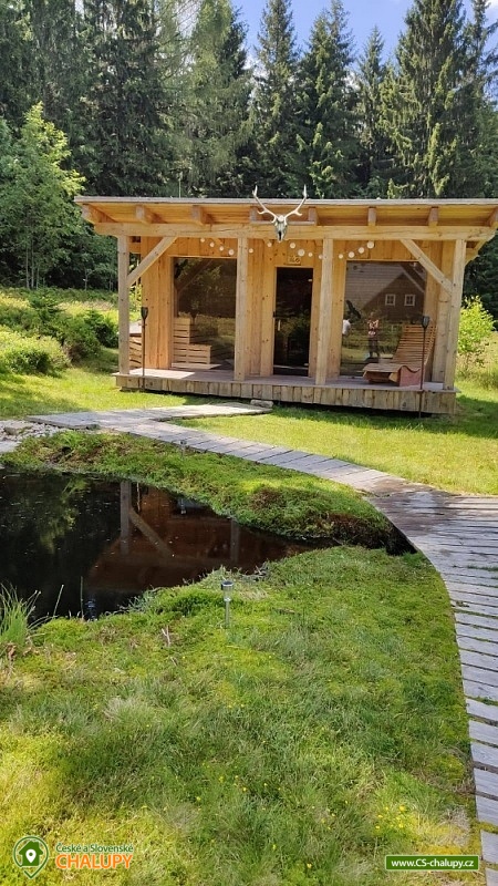 Horská roubená chata Jelení kout - Smržovka - komfortní ubytování se saunou, vířivkou a venkovním jezírkem. Chata Jelení kout je rodinný podnik s domácí atmosférou, kde je naším cílem nabídnout příjemnou rekreaci. V chatě je k dispozici plně vybavená kuchyně a 7 dvoulůžkových pokojů. Z toho 5 pokojů je s vlastním sociálním zařízením. Celkem je v objektu 6 sprchových koutů, umyvadel a toalet + jedna hydromasážní vana s chromoterapií. Vytápění zajištěno provozovatelem, hosté se o nic nemusí starat. Parkování je možné přímo u chaty. V ceně pronájmu je zahrnuta vnitřní sauna, vířivka, relaxační místnost s lehátky a zahrada s ohništěm. Možnost zapůjčení venkovního grilu a využití venkovní sauny s vlastním přírodním jezírkem. K nejbližší restauraci dojdete či dojedete lesní asfaltovou cestou, nachází se v příjemném prostředí Penzionu Berany ve vzdálenosti 800 m. Rozhledna Černá Studnice zase potěší svojí kuchyní po příjemné 2 km procházce lesem. Nelze také opomenout široký výběr jídel v Parkotelu Smržovka necelé 3 km od chaty. Vyberte se na procházku lesem spojenou se sběrem hub a lesních plodů nebo se vydejte po jedné z turistických tras k některé z rozhleden (Černá studnice, Cimrmanova rozhledna "Maják", Štěpánka, Královka, Tandvaldský Špičák, rozhledna s restaurací Petřín v Jablonci nad Nisou). V nedalekém Liberci je aquaparku Babylon a možno navštívit i zoologickou a botanickou zahradu, zejména pokud máte s sebou děti. O zimní radovánky se starají blízké lyžařské areály, nejbližší je vlek Filip. Také doporučujeme vyzkoušet Ski areál Tanvaldský Špičák (4 km) či Sportovní areál Harrachov - Rýžoviště (20 km) a Skiareál Ještěd (20 km). V blízkosti najdete také přírodní sáňkařskou dráhu, která vede od rozhledny Černá studnice až k vleku Filip.