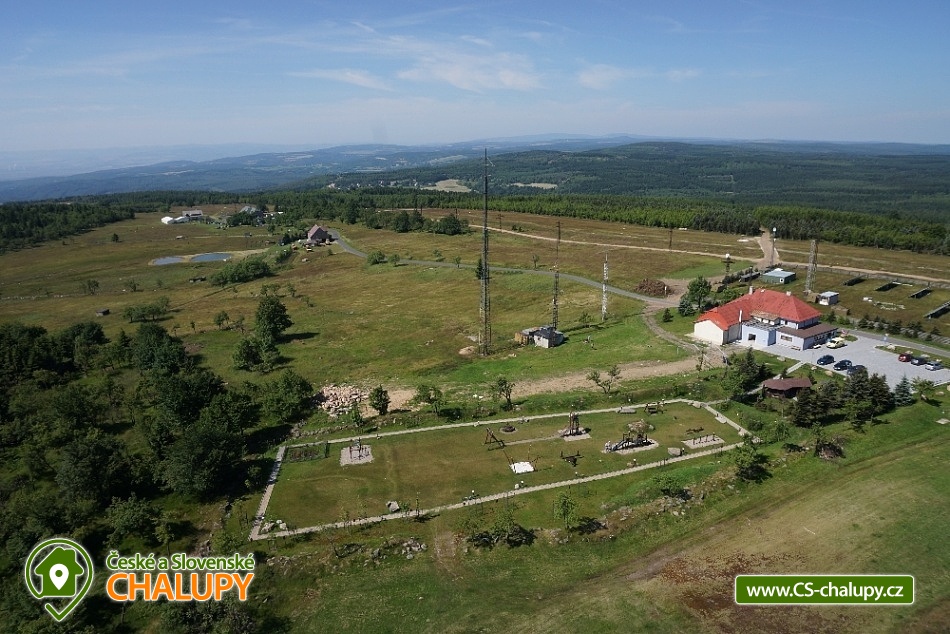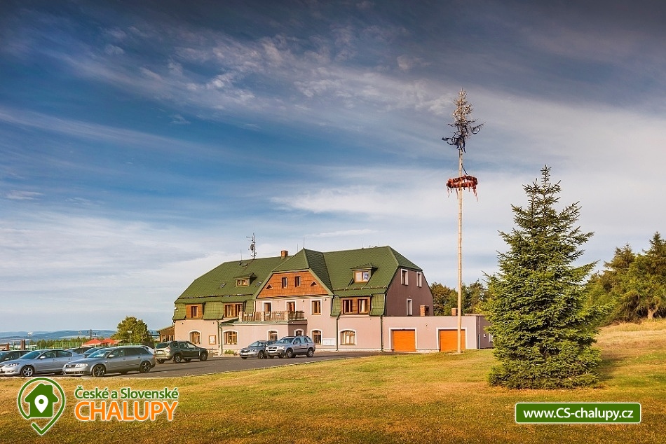 Horská chata Krušné hory - poloha nedaleko lokality Eduardova skála a Lesenská pláň. Horská chata se nachází na vrcholcích Krušných hor (6 km od státní hranice se SRN) s nádherným výhledem do krajiny v nadmořské výšce 911m. Kapacita chaty je 6 pokojů s 20 lůžky. Na některé pokoje lze přidat celkem až 6 přistýlek, čímž se rozšíří celková ubytovací kapacita na 26 lůžek. Pokoje: pokoj č. 1 (4 lůžka), pokoj č. 2 - (3 lůžka), pokoj č. 3 - (4 lůžka), pokoj č. 4 - (3 lůžka), pokoj č. 5 - (2 lůžka) a pokoj č. 6 - (4 lůžka). V celé budově jsou celkem 3 koupelny. V přízemí je sauna s masážním koutem, menší místnost, místnost s kuchyňským koutem a zejména prostorný sál, kde je možné pořádat různá firemní školení, svatby, semináře, workshopy apod. Sál je vybaven interaktivní tabulí propojenou s notebookem a dataprojektorem. Celý objekt je pokryt Wi-Fi signálem. Za budovou se nachází prostorné parkoviště, dětské hřiště, ohniště k pronájmu, geopark, arboretum, zážitková naučná stezka (průvodce je skřítek), rozcestník turistických značek, lokalita oblíbená pěšími turisty i cyklisty, v zimě počátek běžkařských stop Krušnohorské bílé stopy, půjčovna běžek (lze zajistit i instruktora). V blízkosti areálu jsou skalní útvary pro lezení (taktéž můžeme zajistit instruktora). Při svých výletech zdejší krajinou nebudete narážet na davy turistů a budete si moci vychutnat krásu přírody plnými doušky. Ve vzdálenosti 500 m se nachází Horský hotel, kde je bar s restaurací s celotýdenním provozem, možnost grilování, víceúčelové sportovní hřiště s nočním osvětlením, půjčovna sportovního náčiní. U hotelu se nachází Krušnohorské muzeum – je tvořeno třemi, pro Krušné hory, typickými stavbami – modelem 1:1 Krušnohorského lidového domu, funkční zvonicí svatého Antonína a novým objektem hrázděného domu. V Horském areálu se konají téměř každý měsíc atraktivní akce, jako jsou např. Mezinárodní závody psích spřežení, Velikonoční jarmark, Dětský den – Pohádková Lesná, Řezbářské sympozium, Šlapání zelí, Adventní neděle, Tříkrálová nadílka. Těšíme se na Vás u nás.