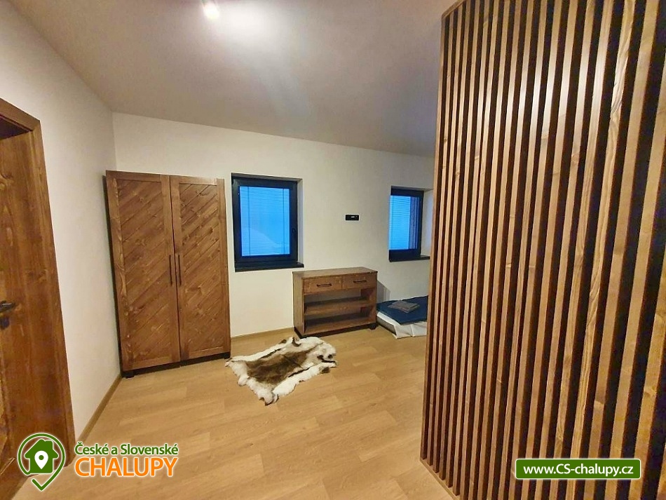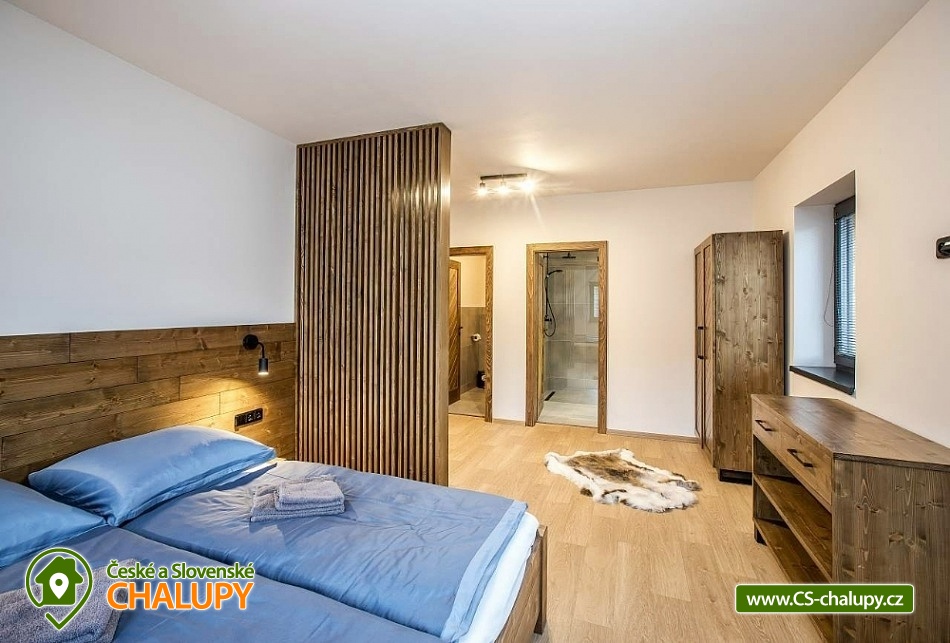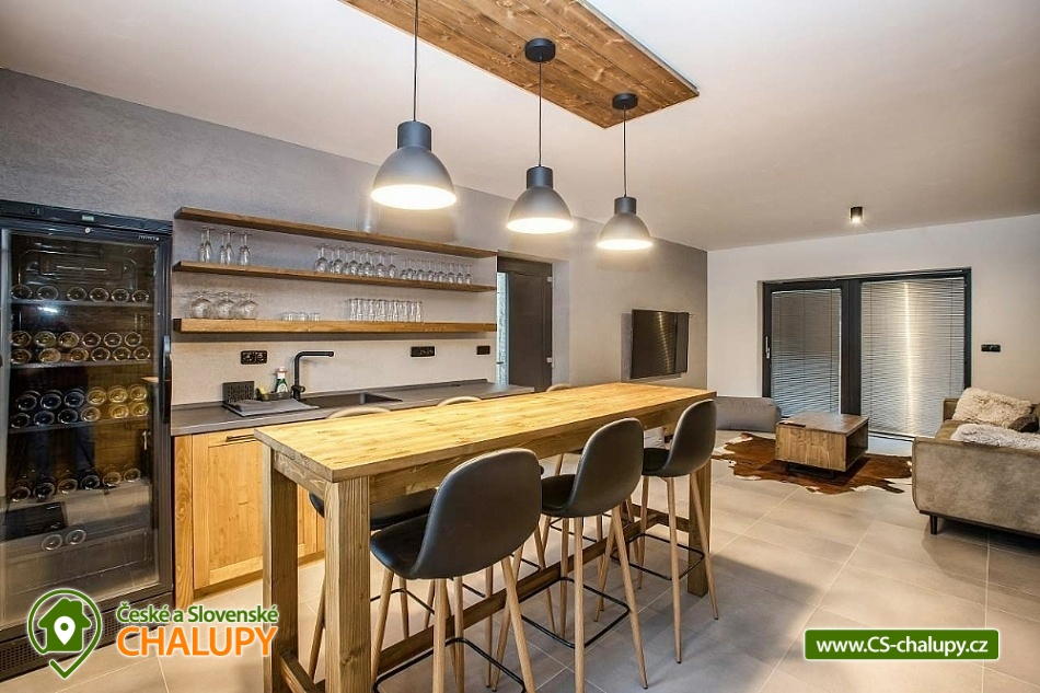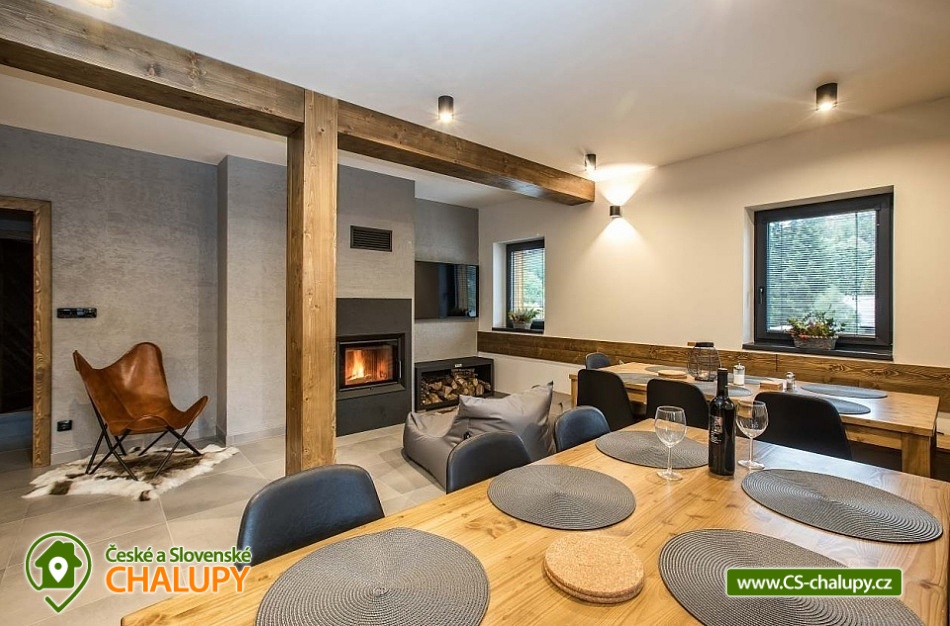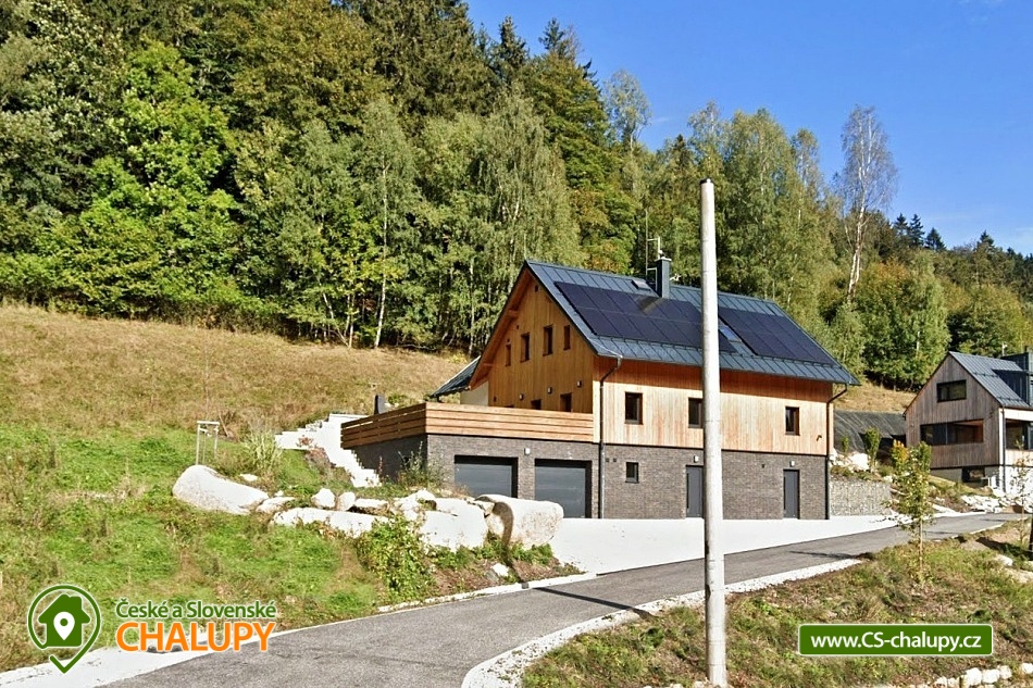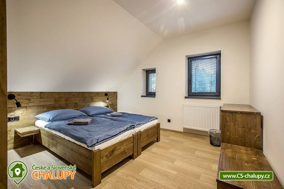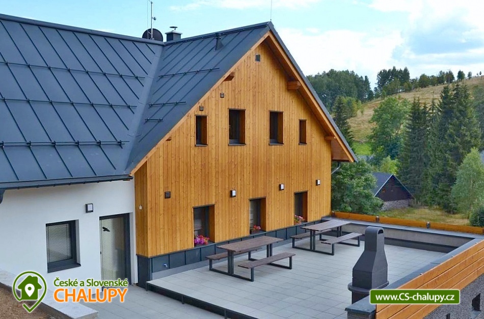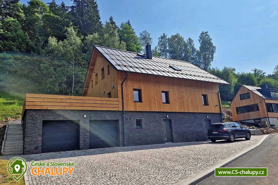 Horská chata se saunou se nachází v krásné krajině CHKO Jizerské hory u říčky Bílá Nisa nedaleko Janova nad Nisou a Bedřichova. V blízkém okolí naleznete cesty pro pěší turistiku, traily pro kola, kilometry běžkařských stop, tak i sjezdovky pro celou rodinu. Těšit se můžete na prostorný a vkusně vybavený interiér chaty s vyhřátými dubovými podlahami, na posezení u krbu, víno z místní vinotéky a relaxování v sauně. Chata poskytuje ubytování pro až 15 osob, celkem je k dispozici 6 dvoulůžkových pokojů s manželskou postelí a 3 přistýlky. Všechny postele je možné rozdělit na samostatné jednolůžka. Ubytování je tak ideální pro rodiny, skupinu přátel, „home office“ nebo také pro různá sportovní soustředění nebo menší firemní akce. Chata je plně přizpůsobena pro pobyty s dětmi, k dispozici jsou 2x dětská jídelní židlička, 2x dětská postýlka (bez povlečení), dětské příbory, dětské společenské hry, hračky, knížky a sáňky. POPIS: V přízemí se nachází hlavní vstup do objektu, kde je k dispozici velký botník a věšák na oblečení. Následuje vstup do haly odkud lze vstoupit do sauny se 2 sprchami a odpočinkovou místností a WC, nebo projít do kolárny, kde je možnost uskladnění kol/lyží s možností provádět jejich servis, zde lze také třídit odpad (papír/plast/sklo). V prvním patře je umístěný apartmán s dvoulůžkem a možností 1 přistýlky. Součástí apartmánu je koupelna se sprchovým koutem a samostatným WC. Na chodbě v patře je dále společná toaleta (WC + pisoár). V patře pro společné chvíle slouží velká společenská místnost s krbem, dvěma stoly a místem k sezení pro až 15 osob a 55“ TV. Součástí místnosti je plně vybavená kuchyň (indukční varná deska, elektrická trouba, mikrovlnná trouba, kávovar na zrnkovou kávu, 2x chladnička s mrazákem, myčka nádobí, toustovač, topinkovač a ponorný mixér). Dále je k dispozici menší společenská místnost s malou kuchyňkou s chladící vitrínou, myčkou a barovým pultem, 65“ TV a gaučem a s možností vstupu na dvě venkovní terasy. V druhém patře jsou k dispozici 3 apartmány. První apartmán se skládá ze dvou propojených dvoulůžkových pokojů. Součástí druhého apartmánu jsou 2 samostatné dvoulůžkové pokoje a možnost dalších dvou přistýlek. Ve třetím apartmánu se nachází jeden dvoulůžkový pokoj. Všechny apartmány jsou vybavené koupelnou se sprchovým koutem a WC. V celém objektu je k dispozici WIFI připojení na internet. Vytápění je řešeno tepelným čerpadlem a možností zatopit si v krbových kamnech. Venku lze trávit společné chvíle na prostorné terase s 2x venkovním posezením, grilem na dřevěné uhlí (nutno mít vlastní) nebo u ohniště. Dále po domluvě možnost za příplatek zapůjčení výčepního zařízení. Parkovat lze přímo u objektu, V okolí možnost turistiky, cykloturistiky, singltrek, koupání, houbaření, rybaření, běžkování a lyžování. V blízkosti je hřiště, jízdárna, tenisové kurty, lanový park, bobová dráha bowling a golfové hřiště. Mezi možnosti koupání patří např.: přehrada Mšeno, koupaliště Dolina, přehrada Bedřichov, koupaliště Lučany nad Nisou, Lesní koupaliště Liberec, přírodní koupaliště Josefův Důl, přehrada Harcov, plavecký bazén Liberec, aquapark Centrum Babylon - Liberec, atd. V zimním období blízká lyžařská střediska: Bedřichov - U Vodárny, Bedřichov, Severák, Bedřichov u Doliny, Lucifer - Josefův Důl, U PILY - Lučany nad Nisou, Bukovka - Josefův Důl, Selský dvůr - Albrechtice, Nová Ves nad Nisou a další. K výletům v okolí láká Liberec (ZOO, Botanická zahrada, Dinopark, IQlandia, a další), Muzeum skla a bižuterie Jablonec nad Nisou, lázně Libverda nebo rozhledny Královka, Černá studnice, Maják Járy Cimrmana či Slovanka. Těšíme se na Vás u nás.
